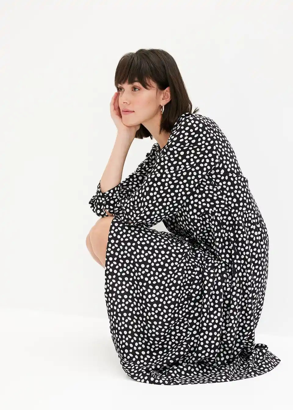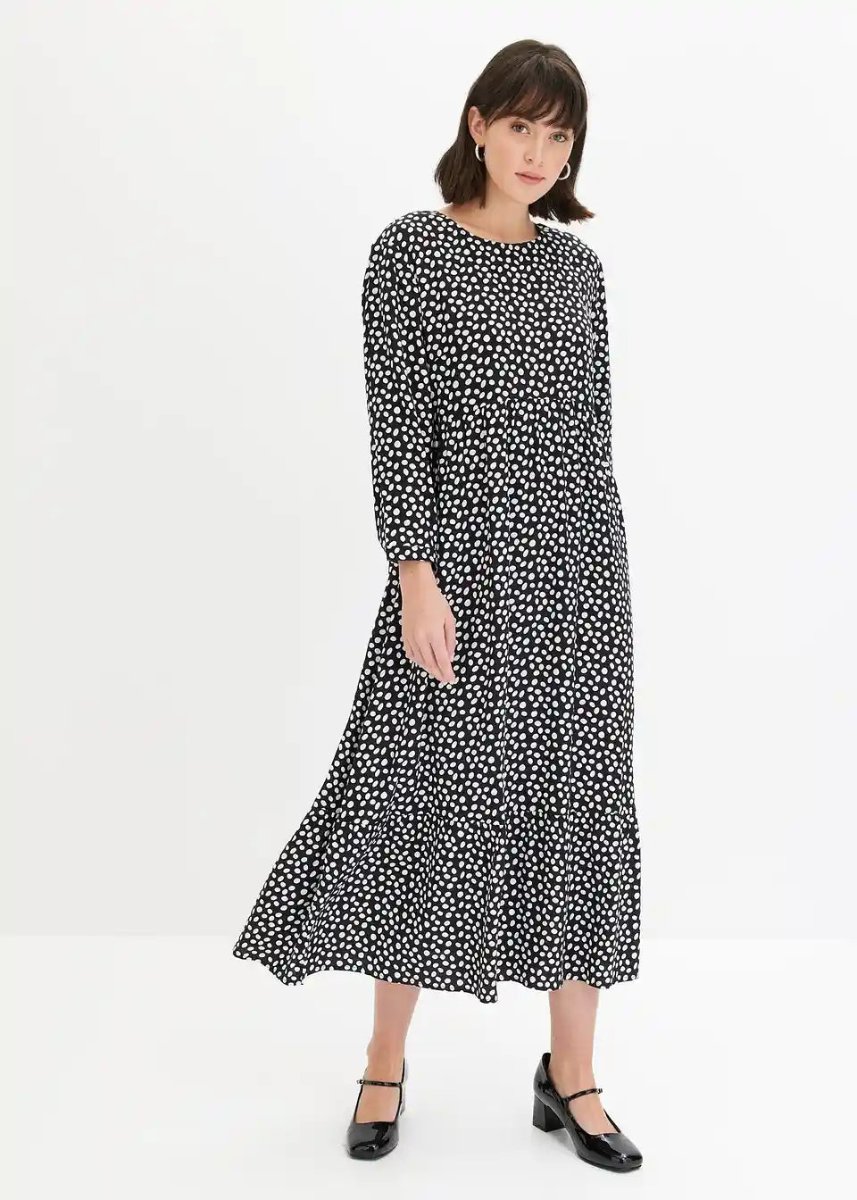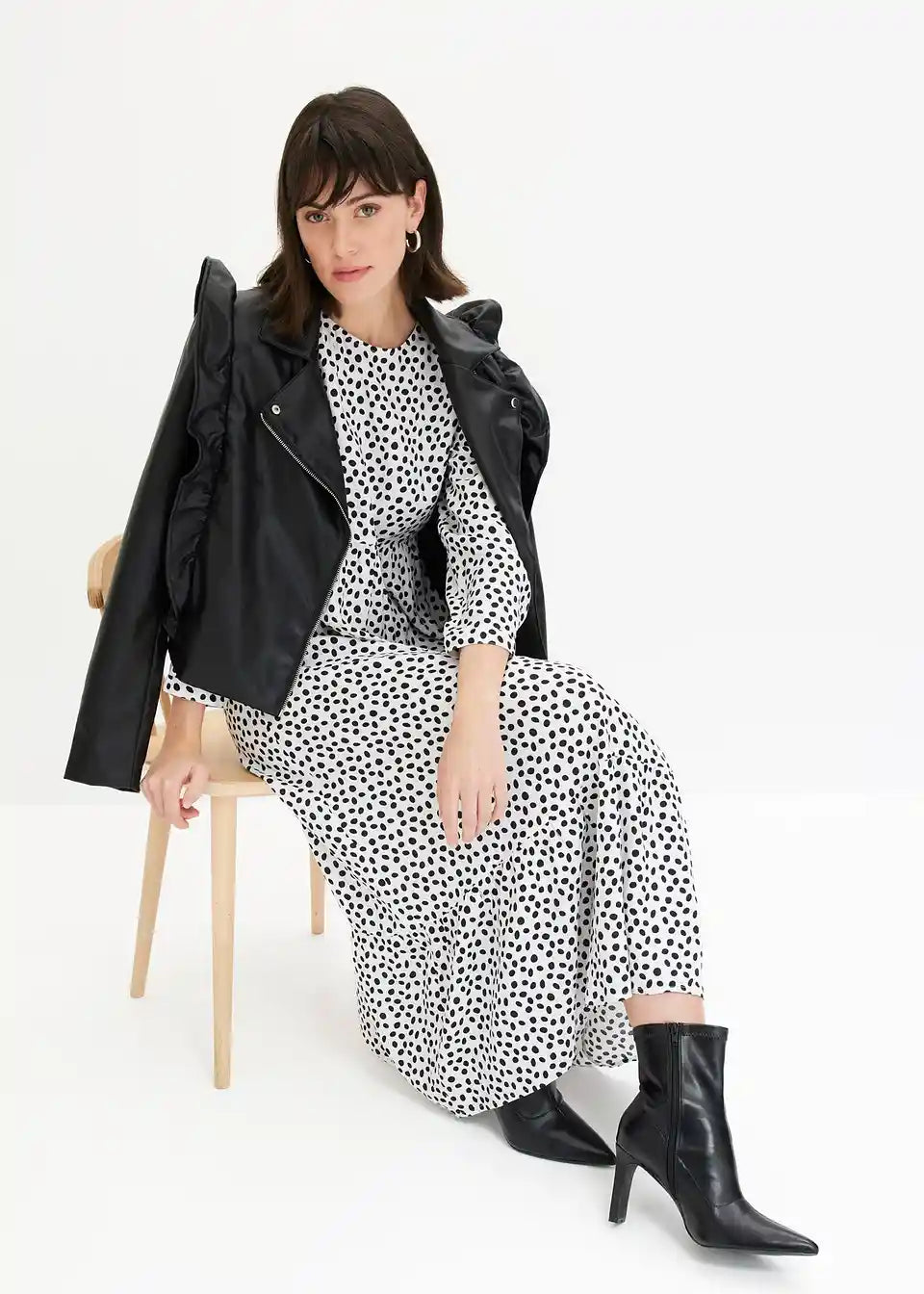 Midikleid z modnim pikčastim vzorcem
