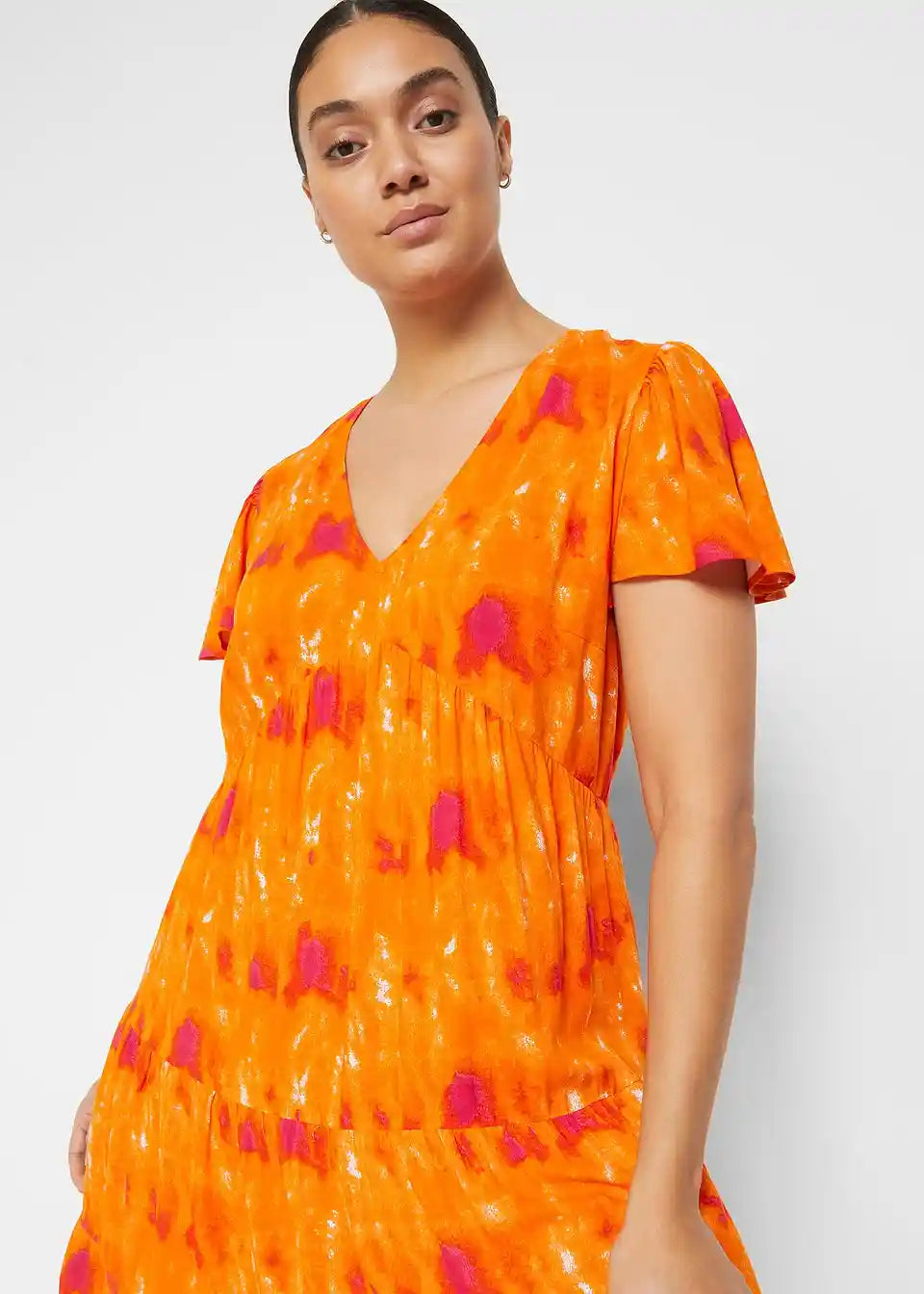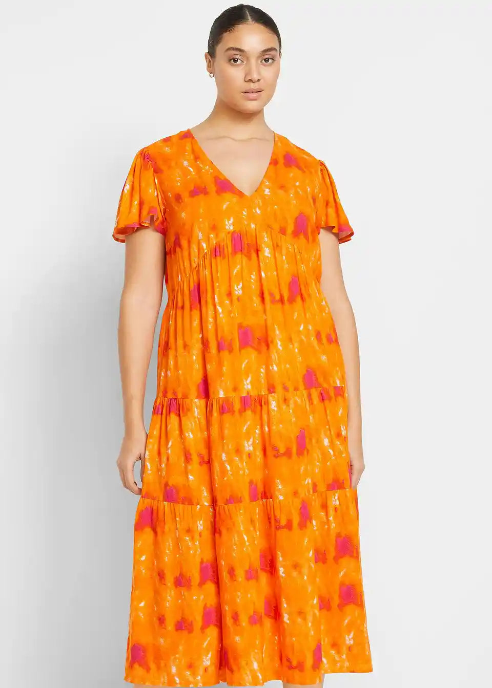 Gladko padajoča obleka z V-izrezom, ki se prilega vsaki postavi