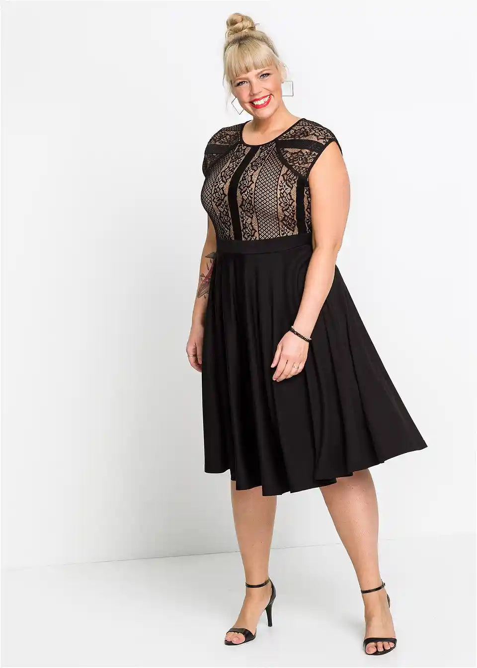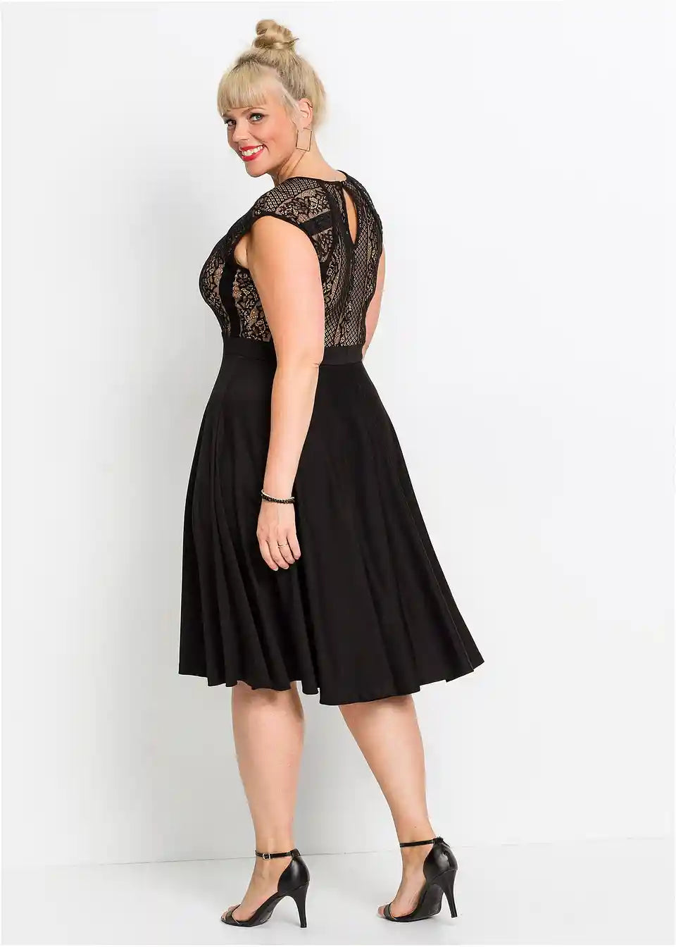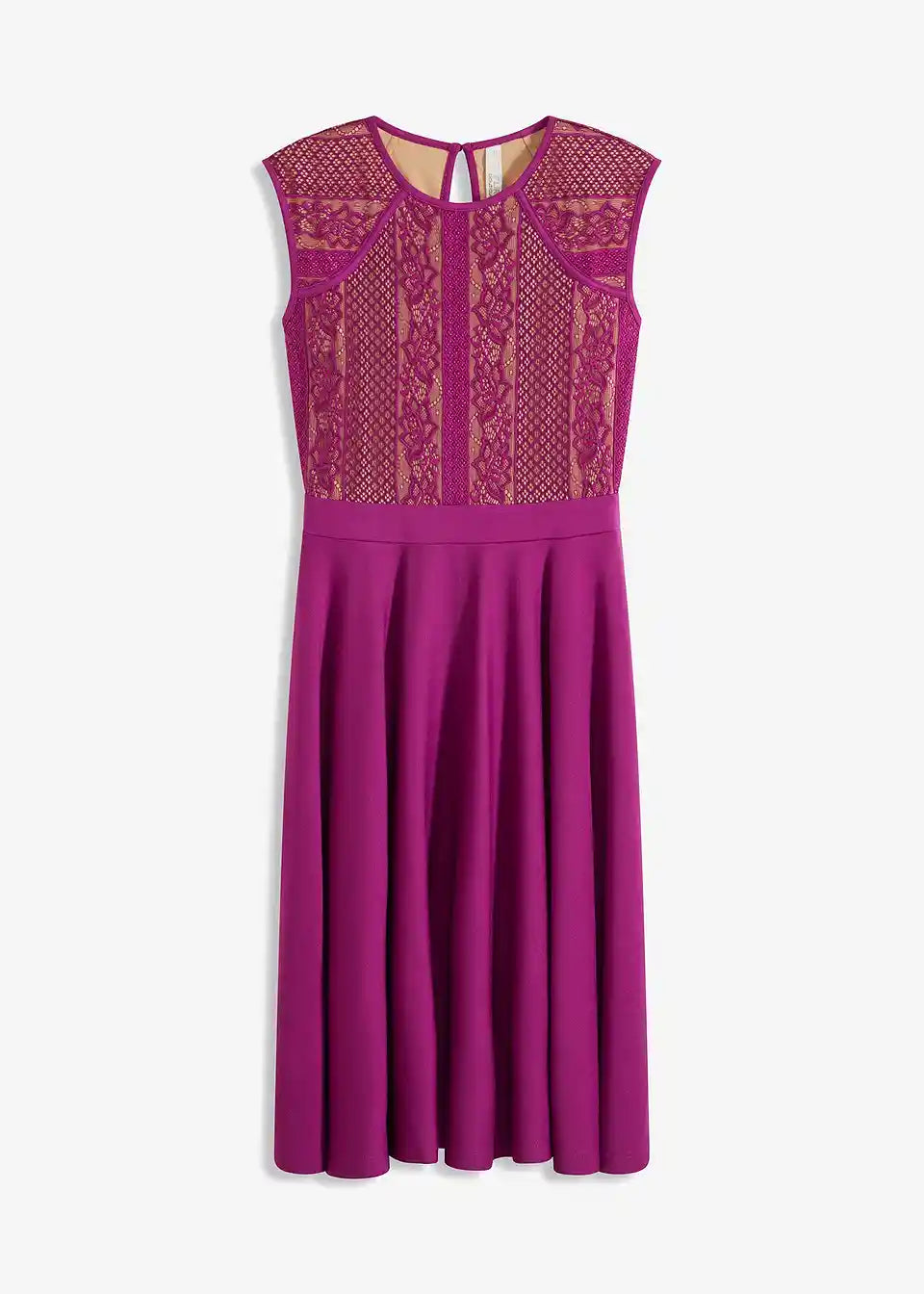 Romantično in ženstveno: Midikleid s krilom iz materiala Punto di Roma in čipko na zgornjem delu.