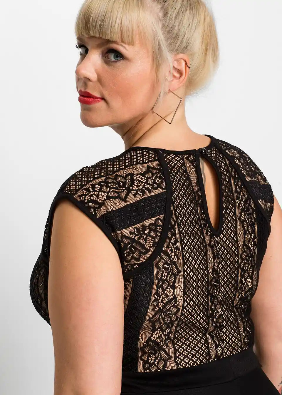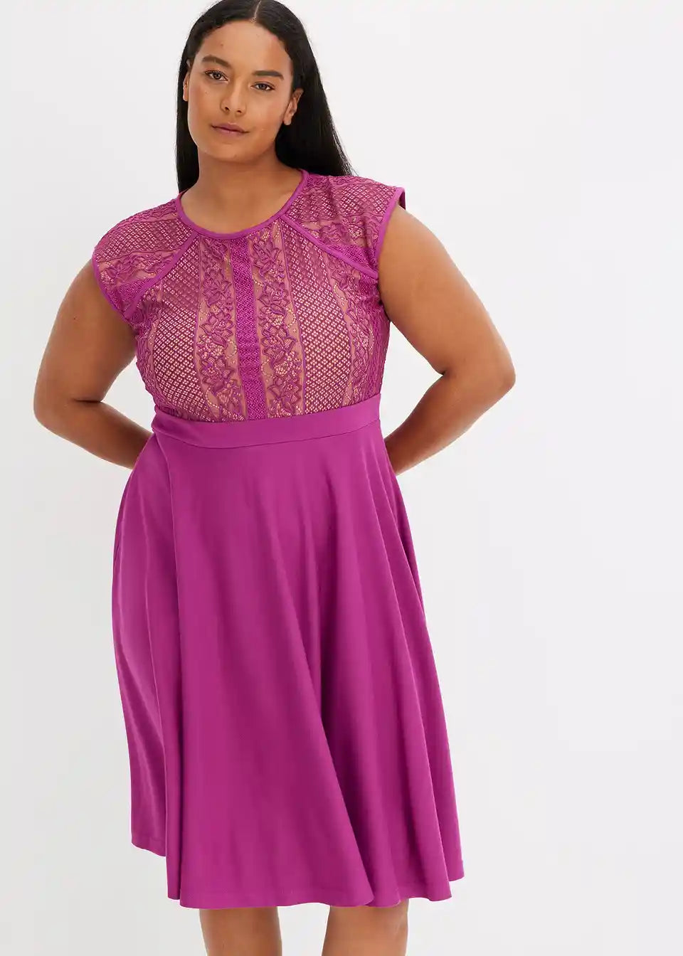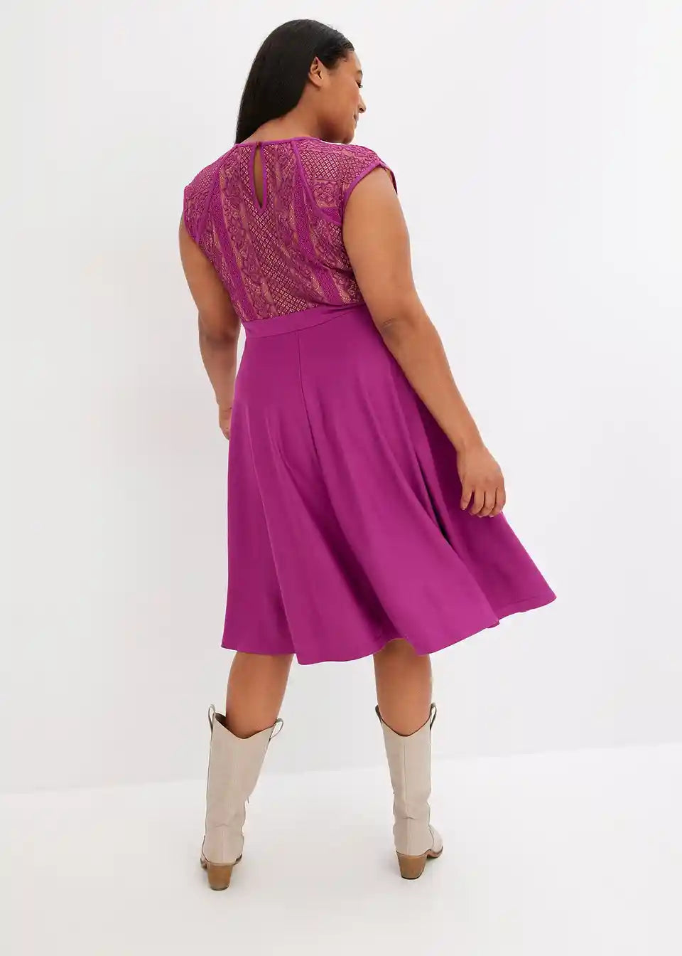 Romantično in ženstveno: Midikleid s krilom iz materiala Punto di Roma in čipko na zgornjem delu.