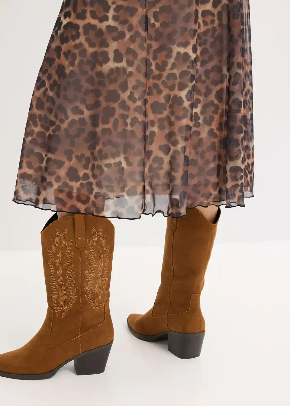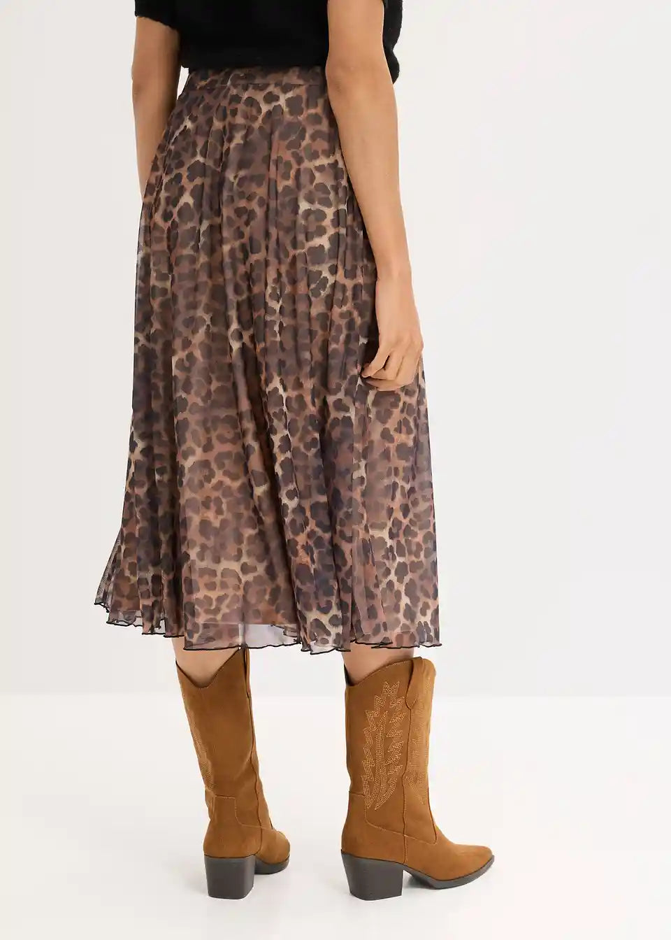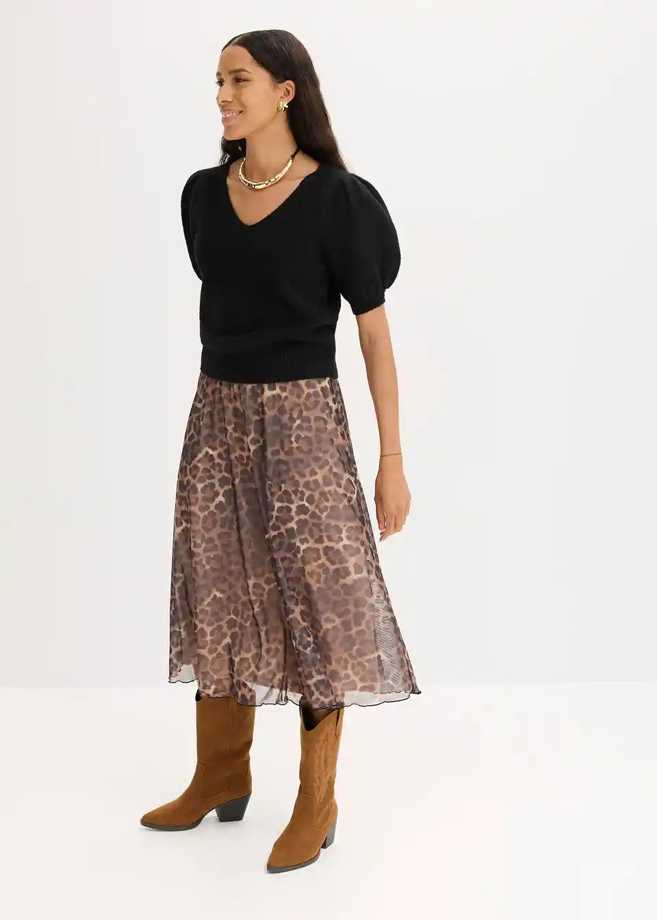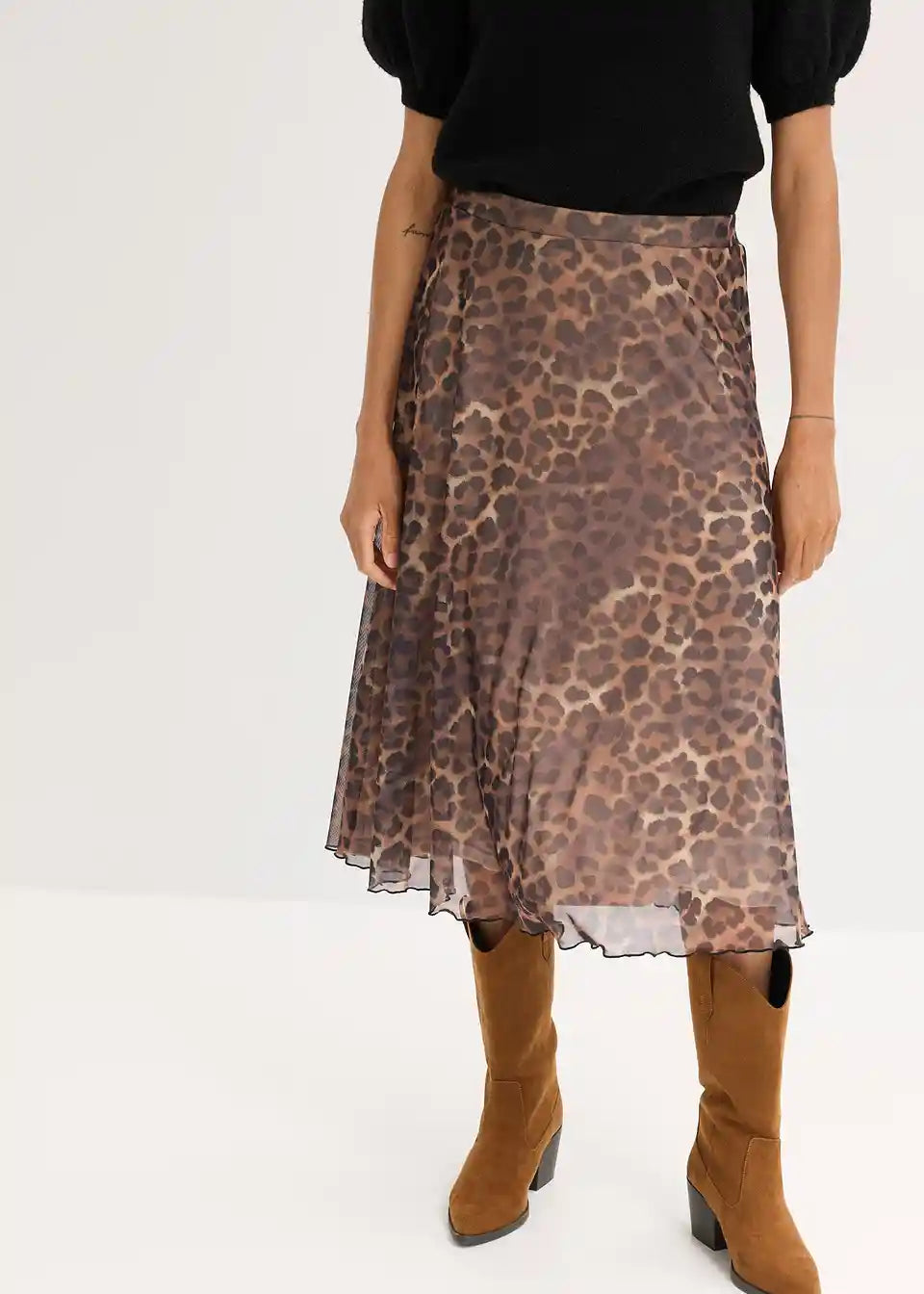 modno potiskano midikrilo iz mehkega mrežastega materiala z elastičnim pasom