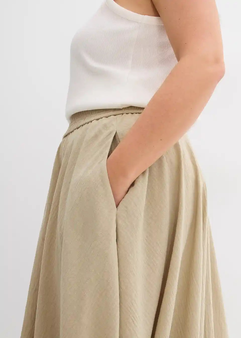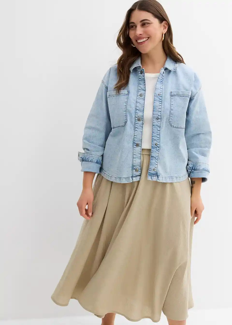 Posebnosti kroja:za veliko udobja pri nošenju, z elastičnimi všitki za večjo svobodo pri gibanju, za zakriti trebušček, zadnjico in boke ter udobje na stegnih