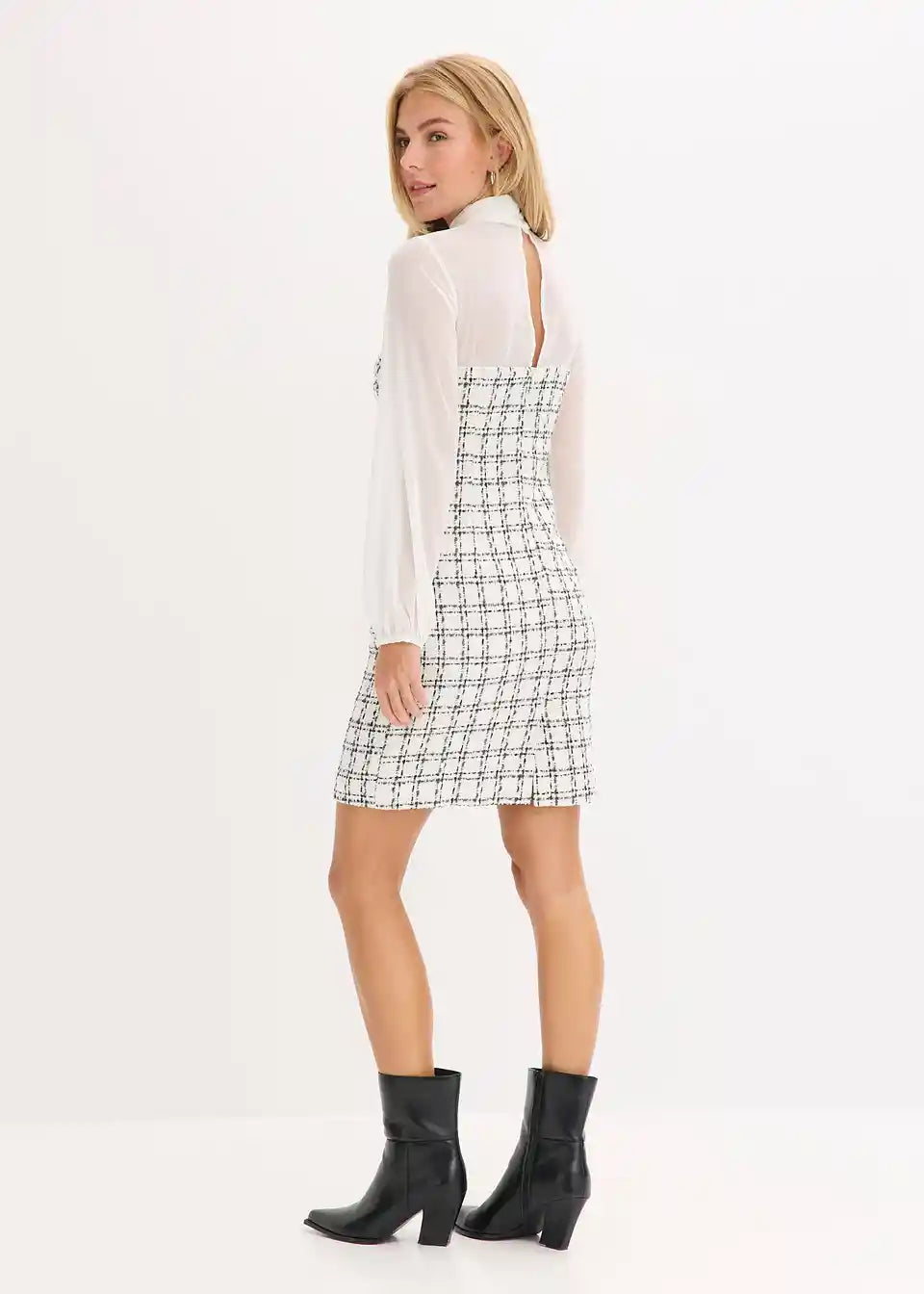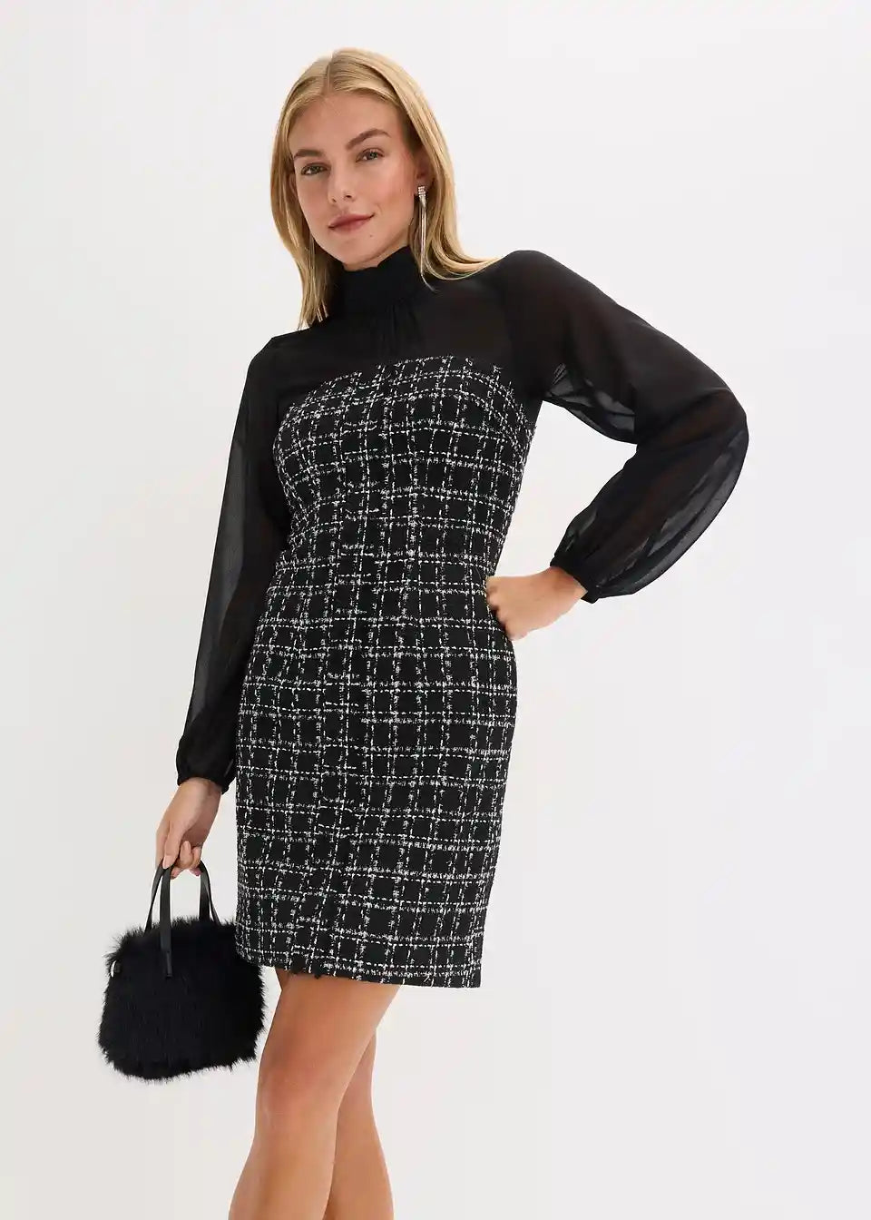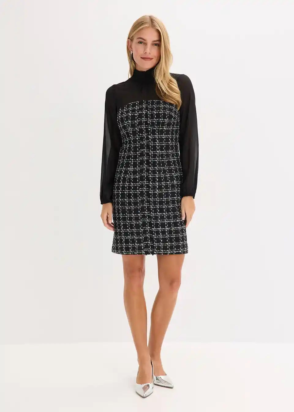 Mini obleka iz bukleja z rokavi iz šifona