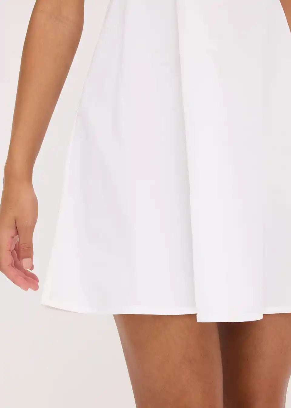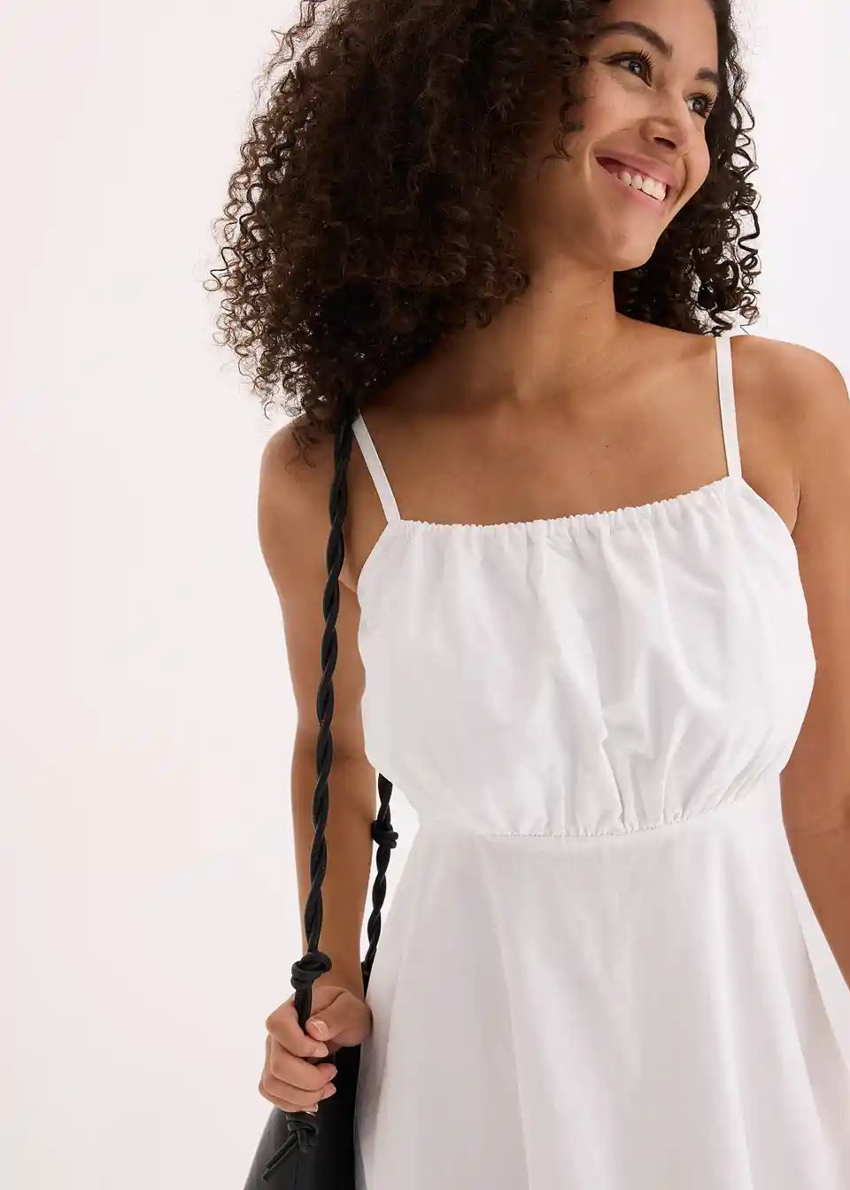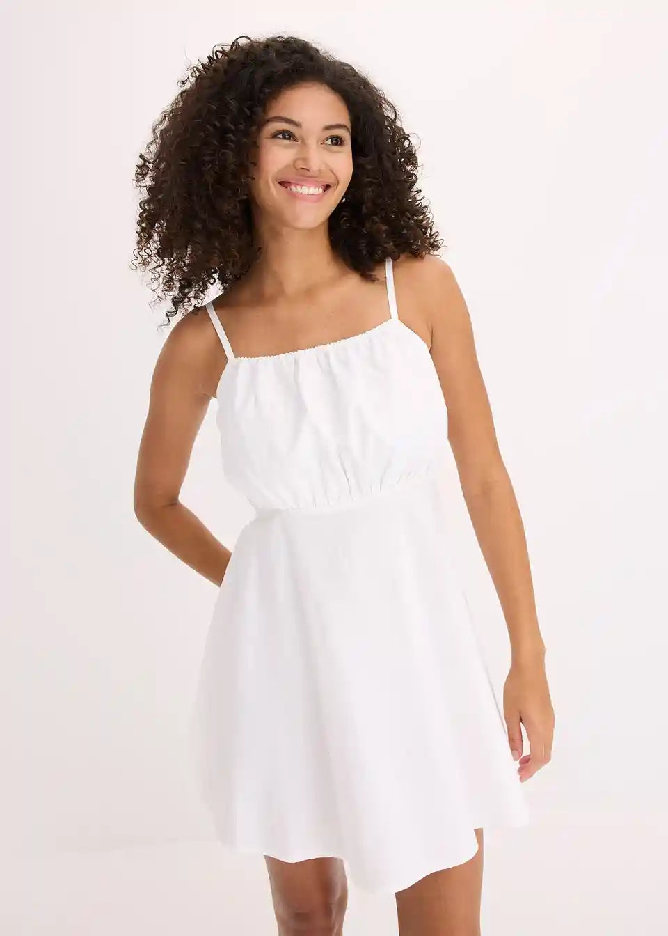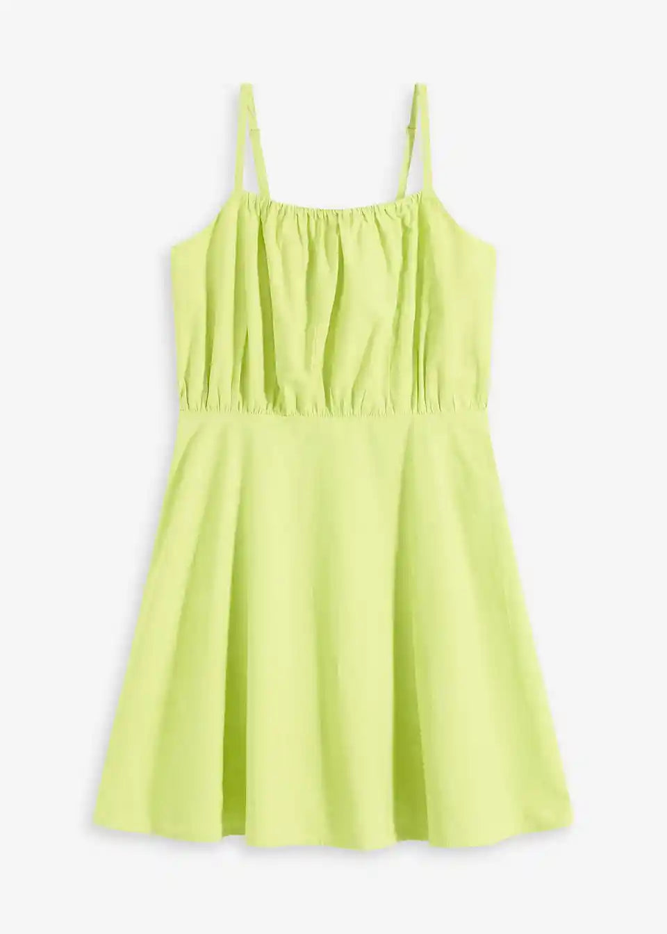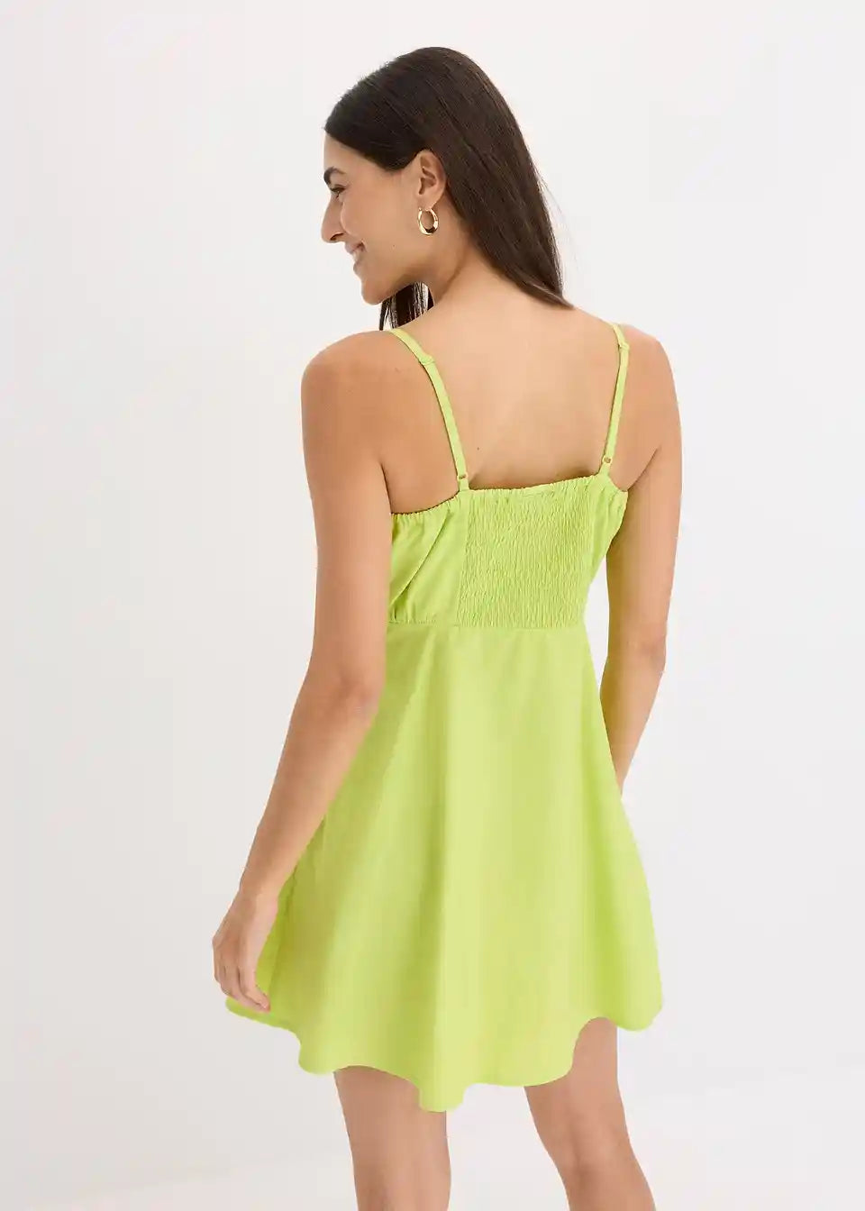 Kratka obleka s spaghetti naramnicami in nabranim hrbtnim delom