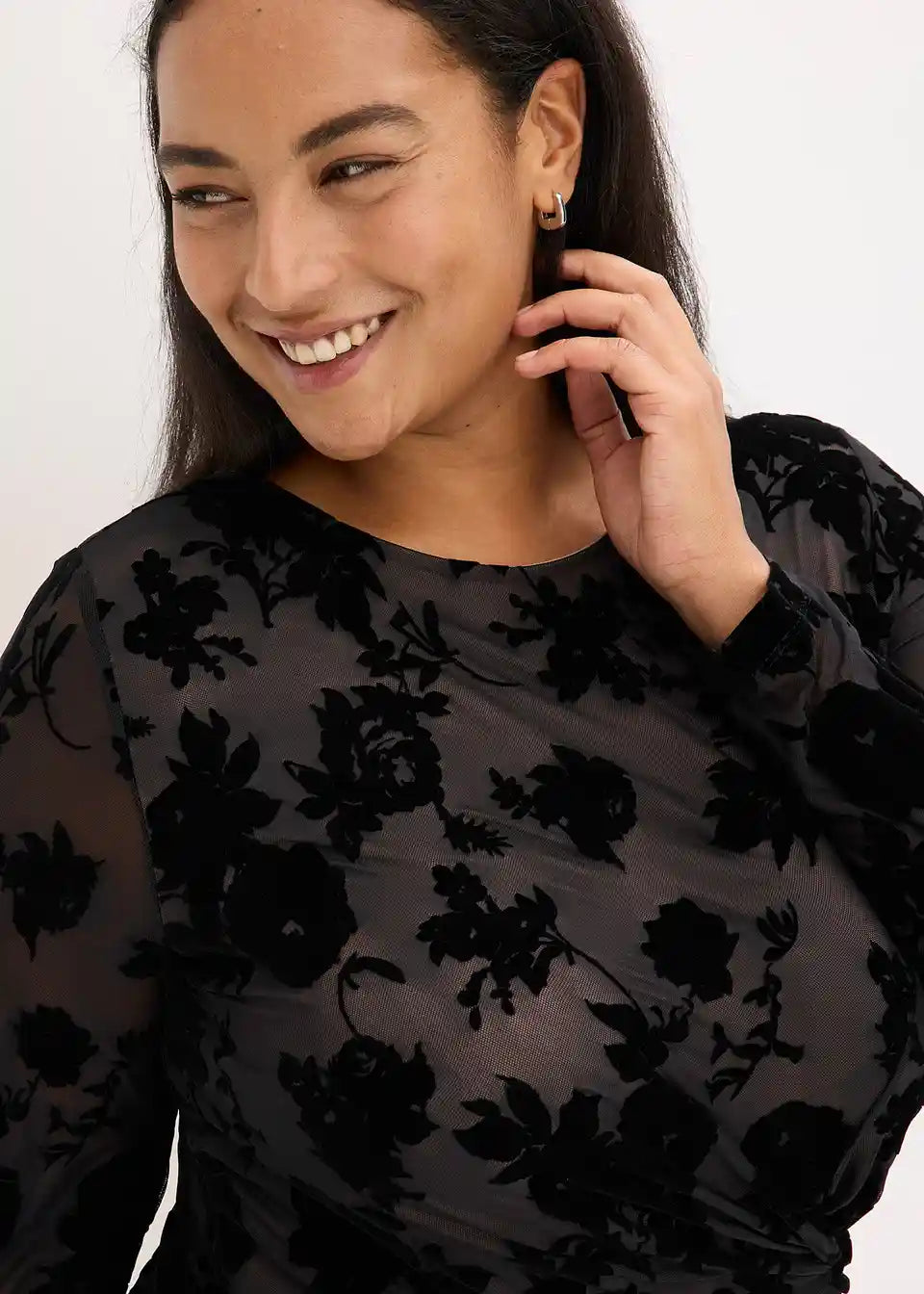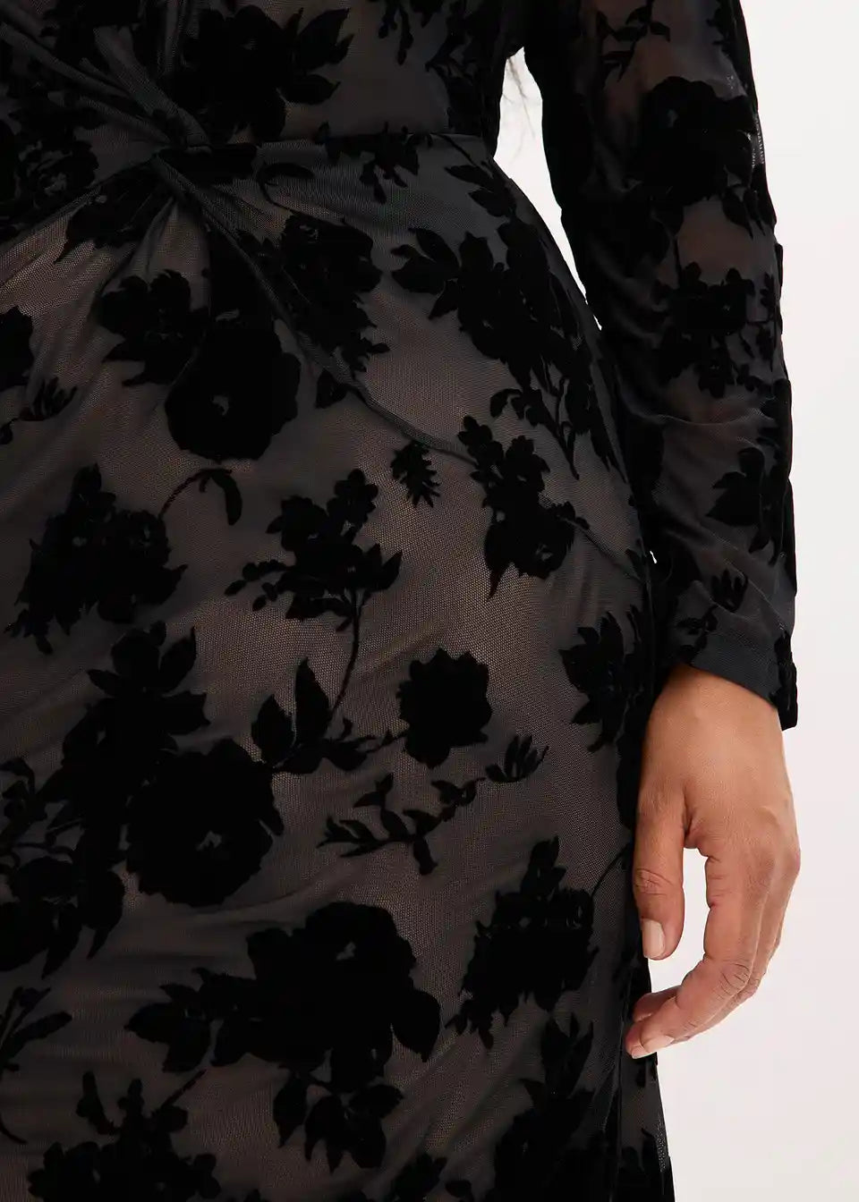 Mini obleka iz fine mreže s kosmatenim potiskom