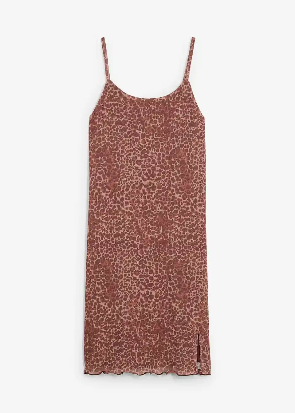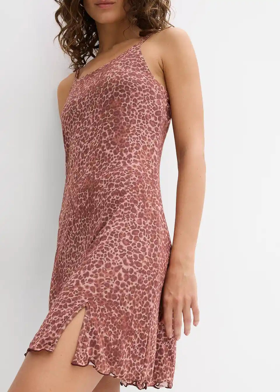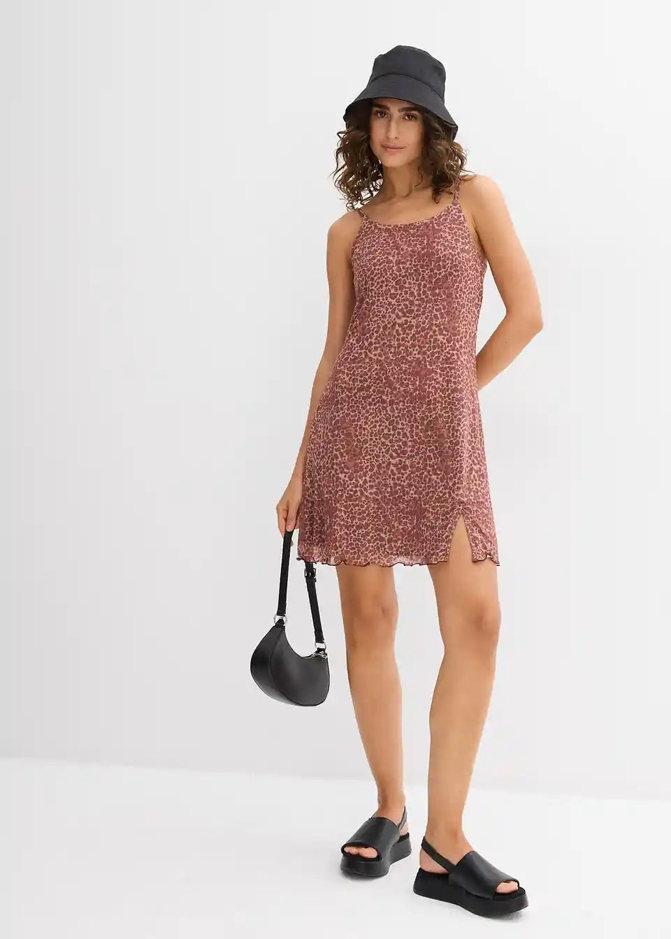 Mini obleka iz mrežaste tkanine s tankimi naramnicami