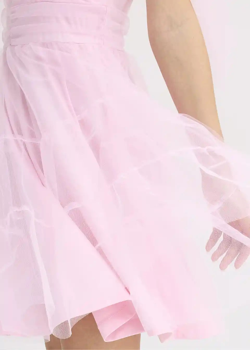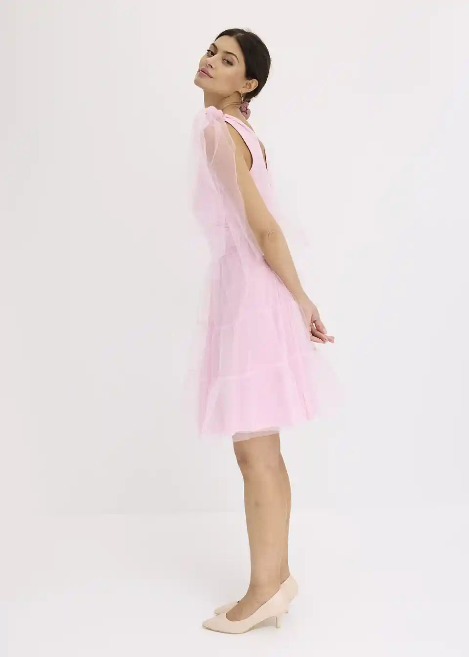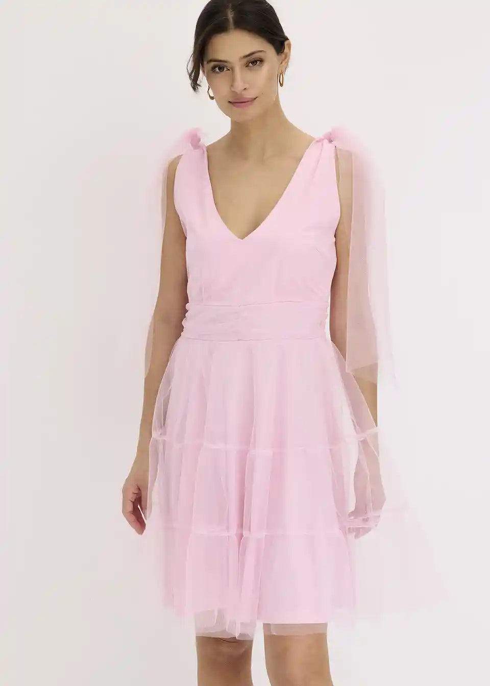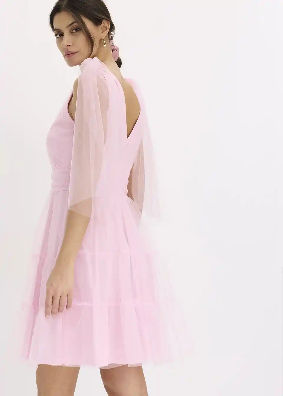 Mini obleka iz nežnega tila z detajli pentelj