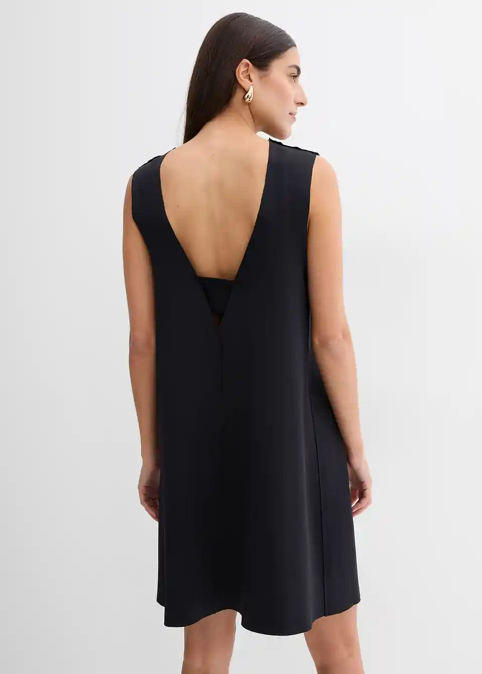 Kratka razširjena obleka z globokim izrezom na hrbtu