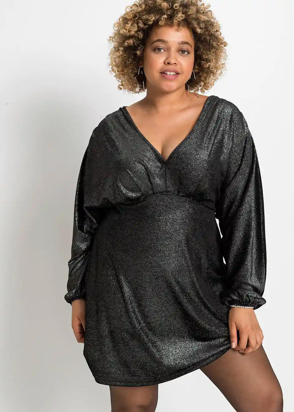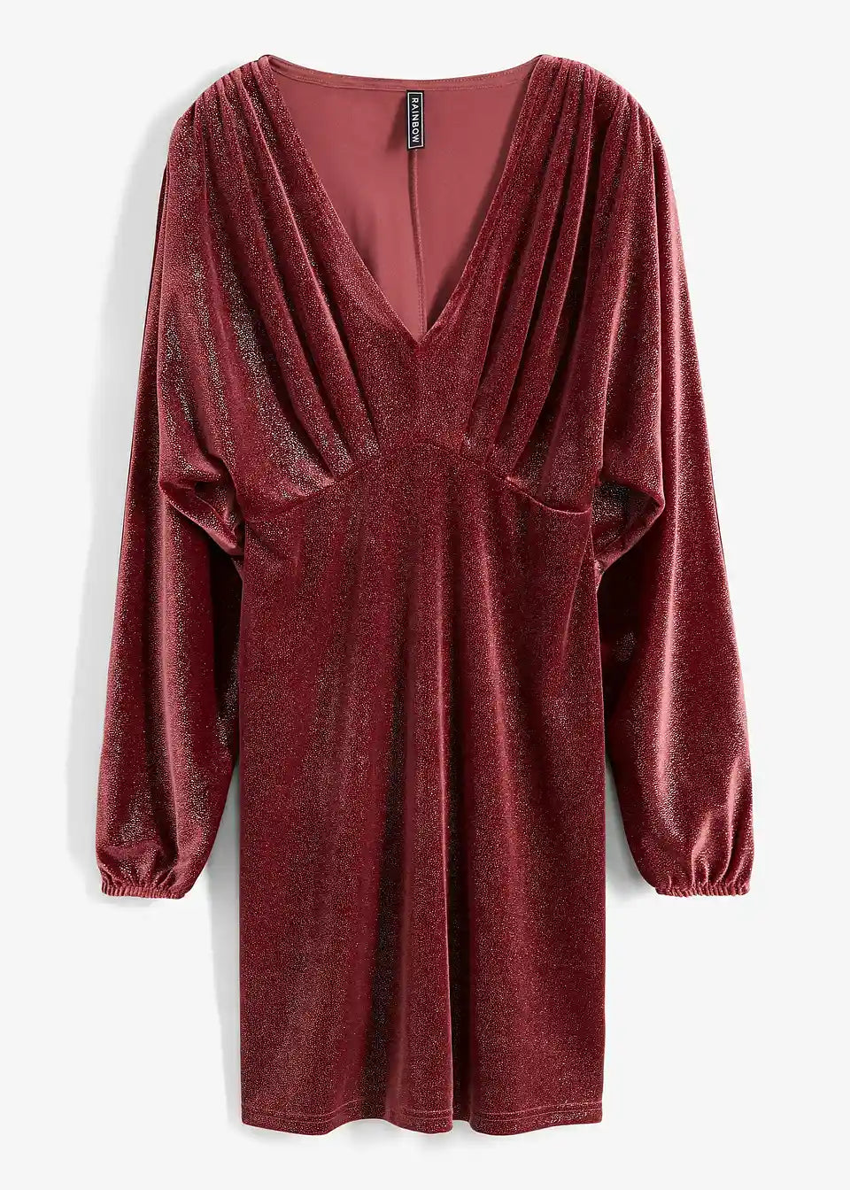 Žametna obleka z bleščicami in dolgimi rokavi - popolna izbira za praznična slavja