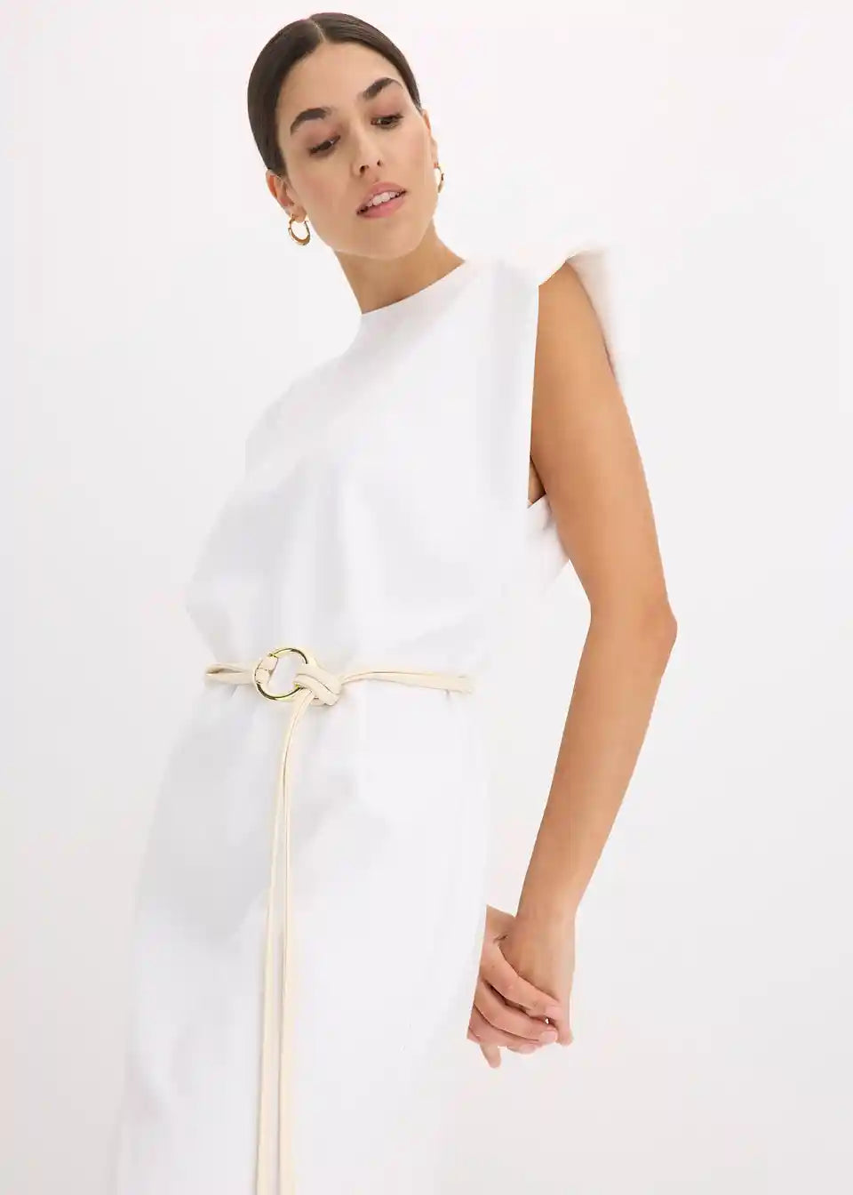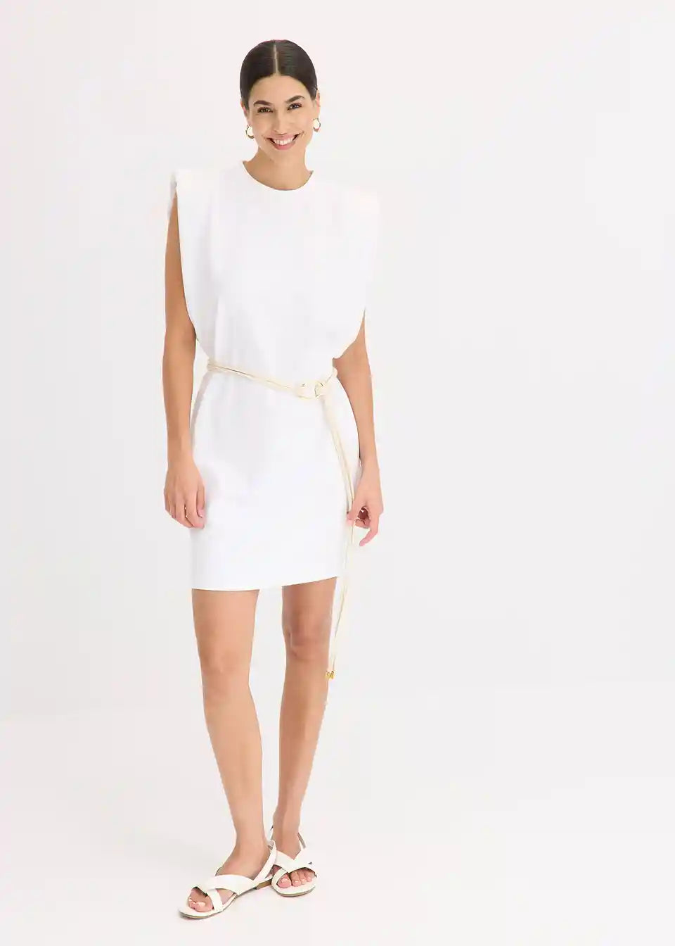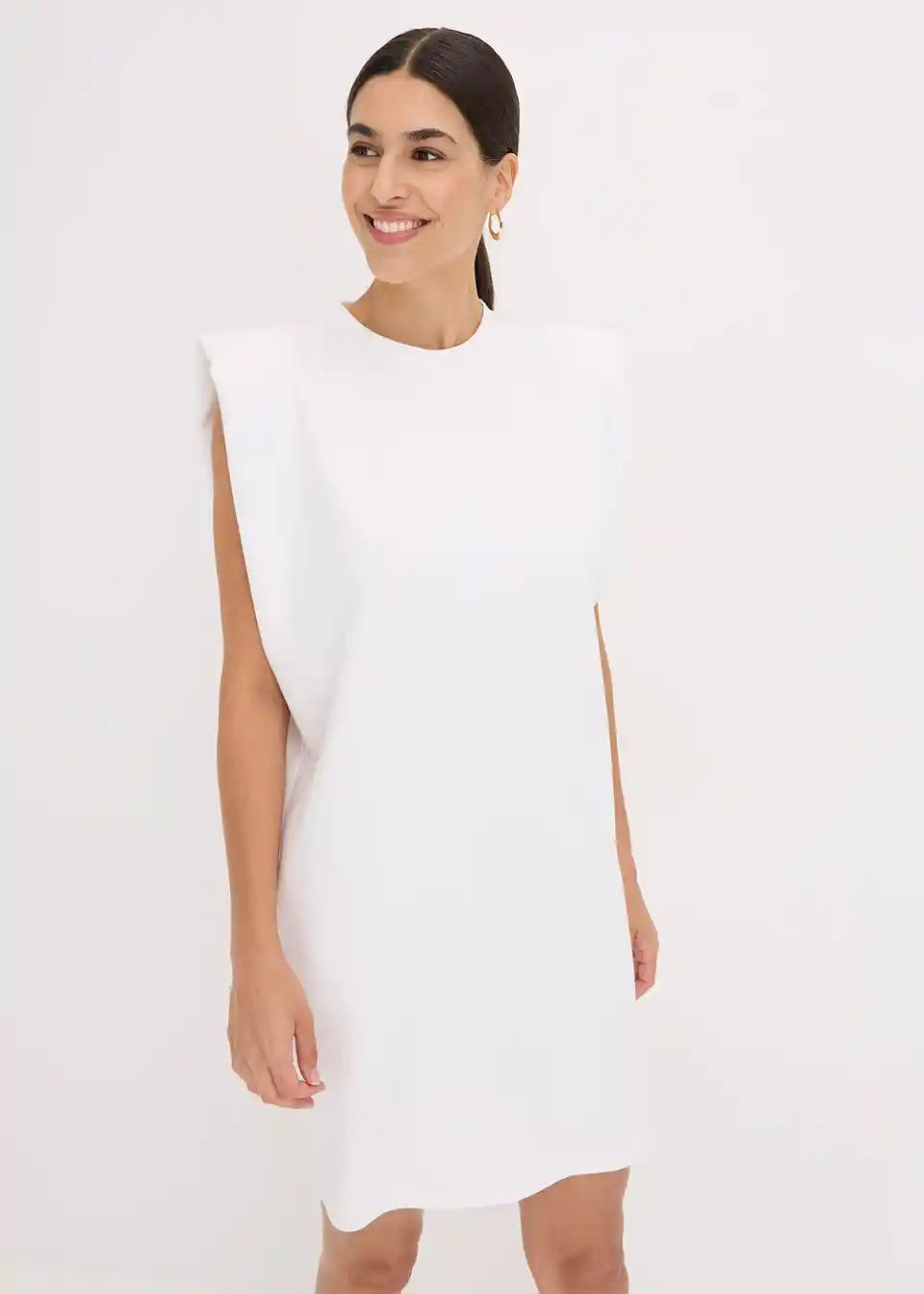 Kratka sproščena obleka s poudarkom na ramenih