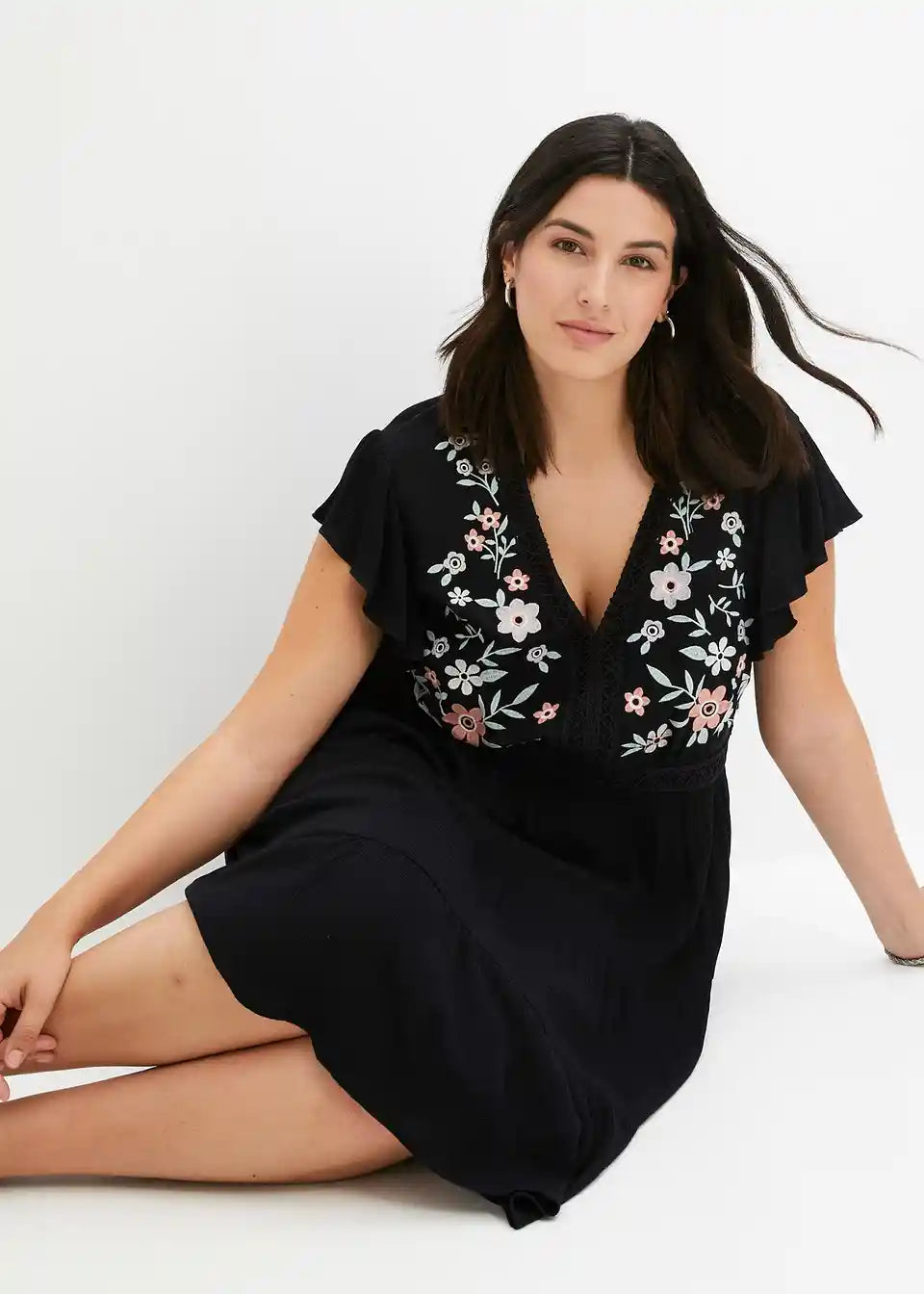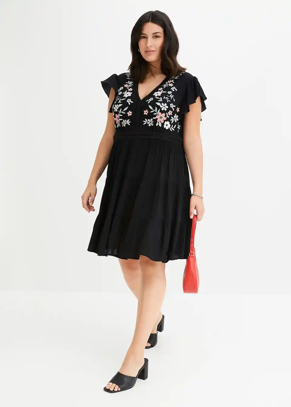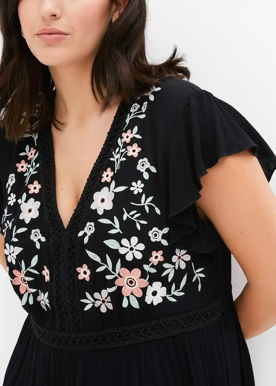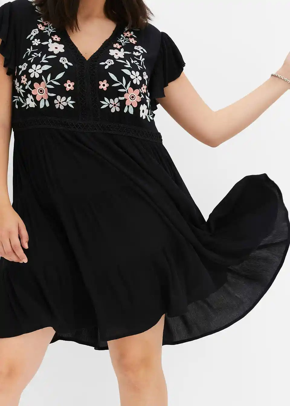 Poletna obleka z vezenino na zgornjem delu.