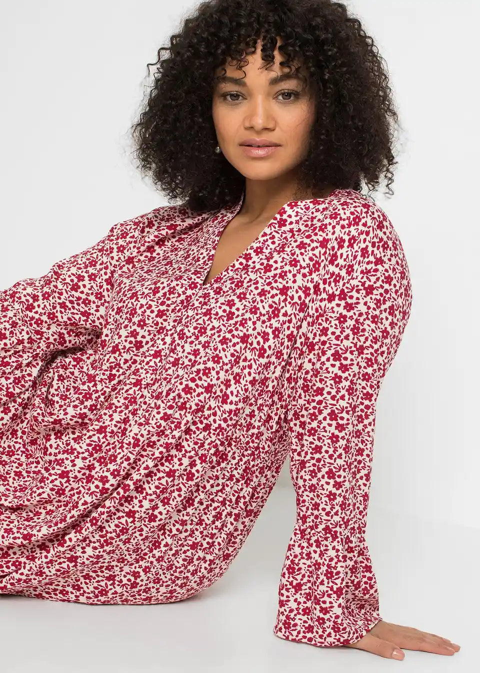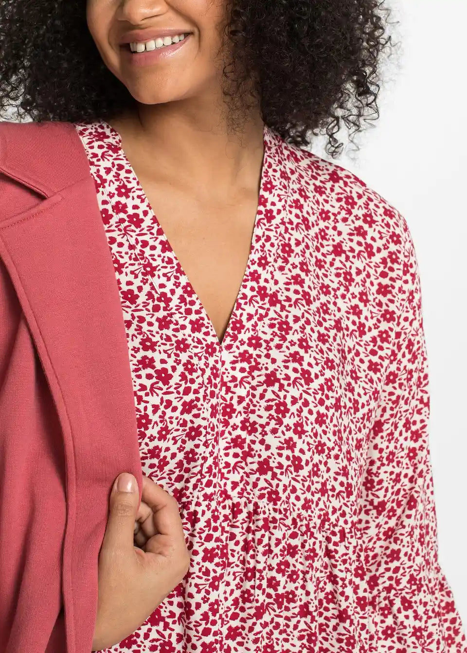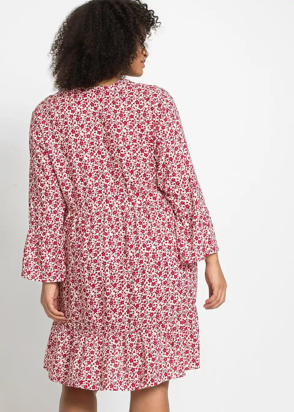 Kratka obleka z V-izrezom in 3/4 rokavi