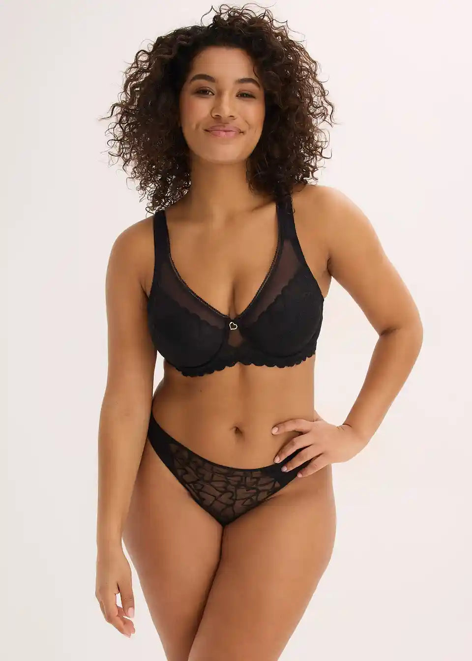 Mini string s čipko z motivom srčkov