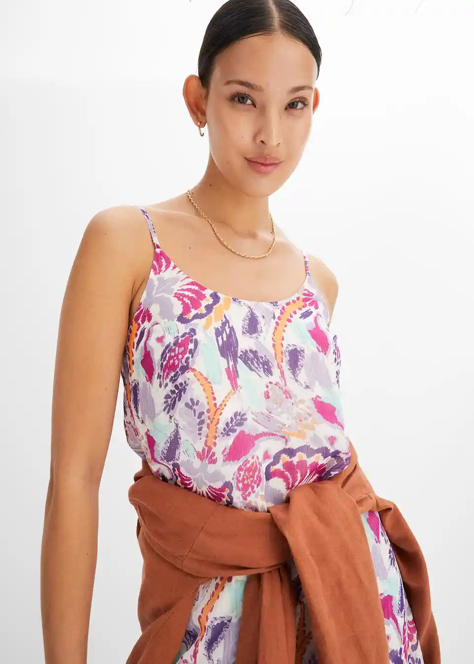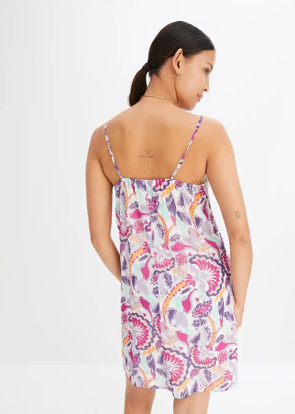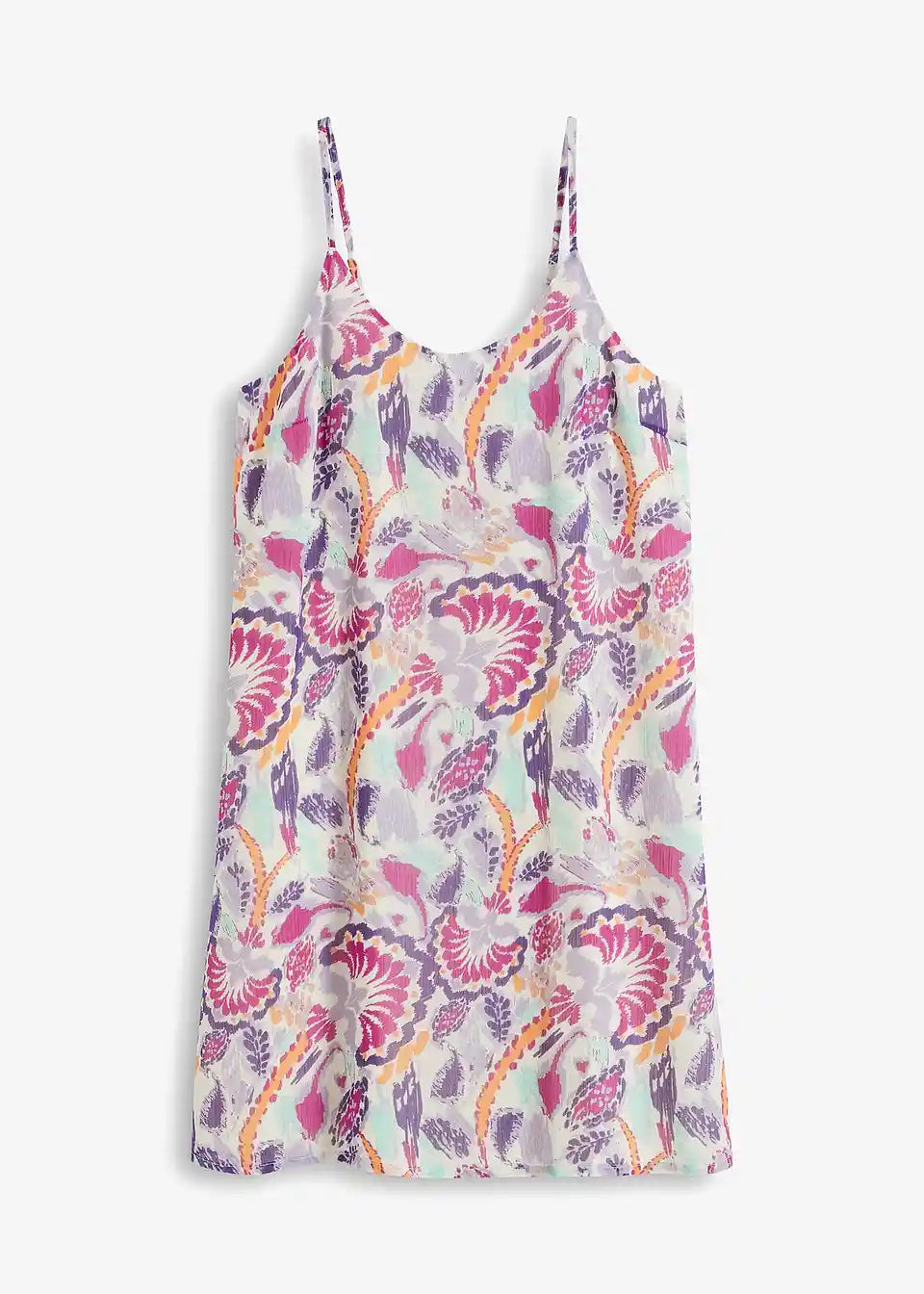 Barvita mini tkaninska obleka s tankimi naramnicami