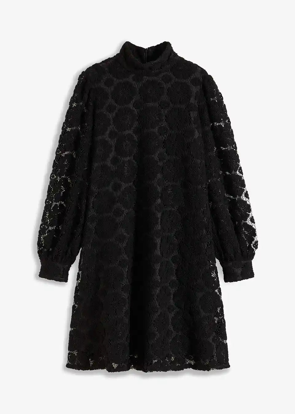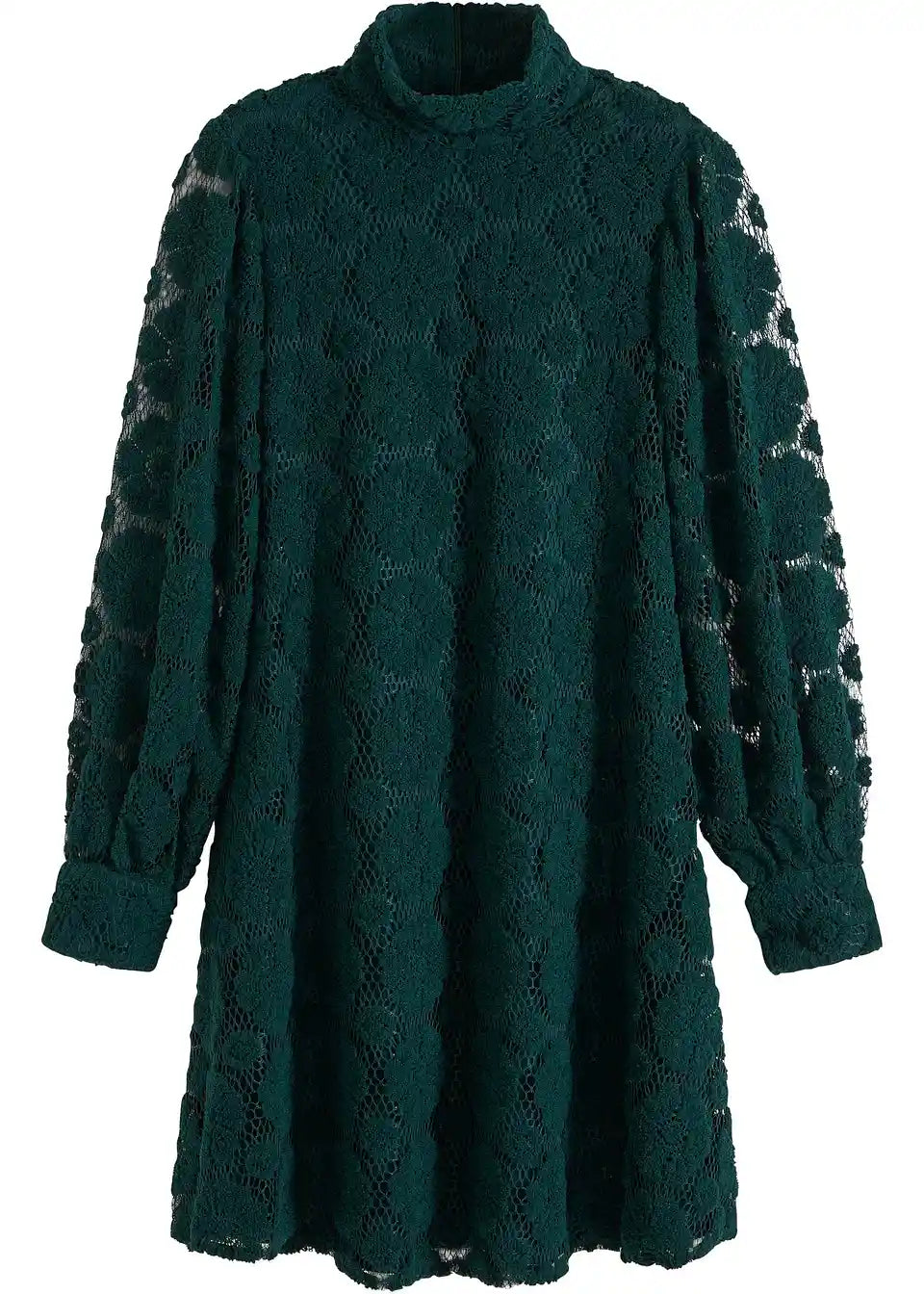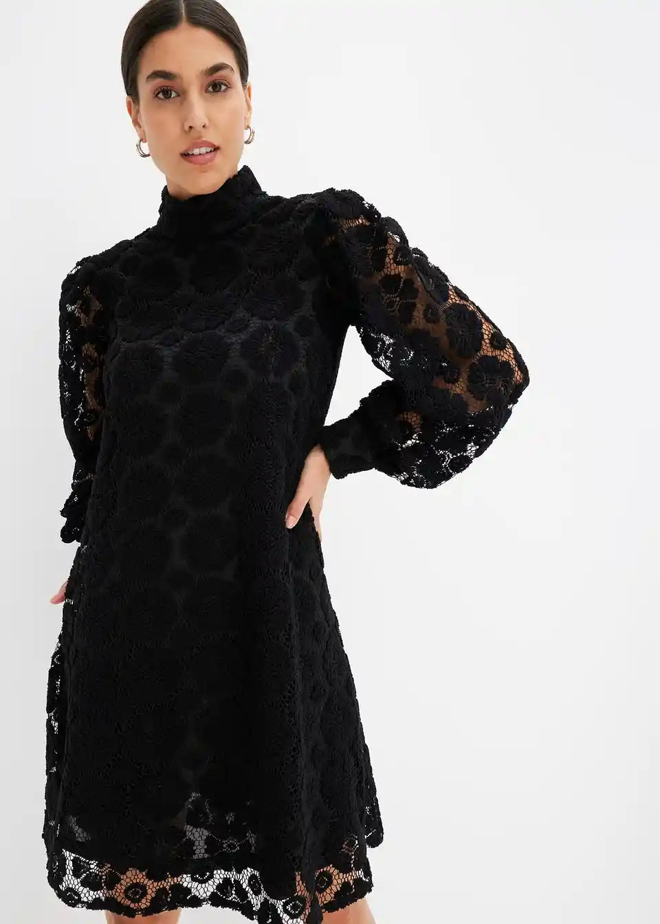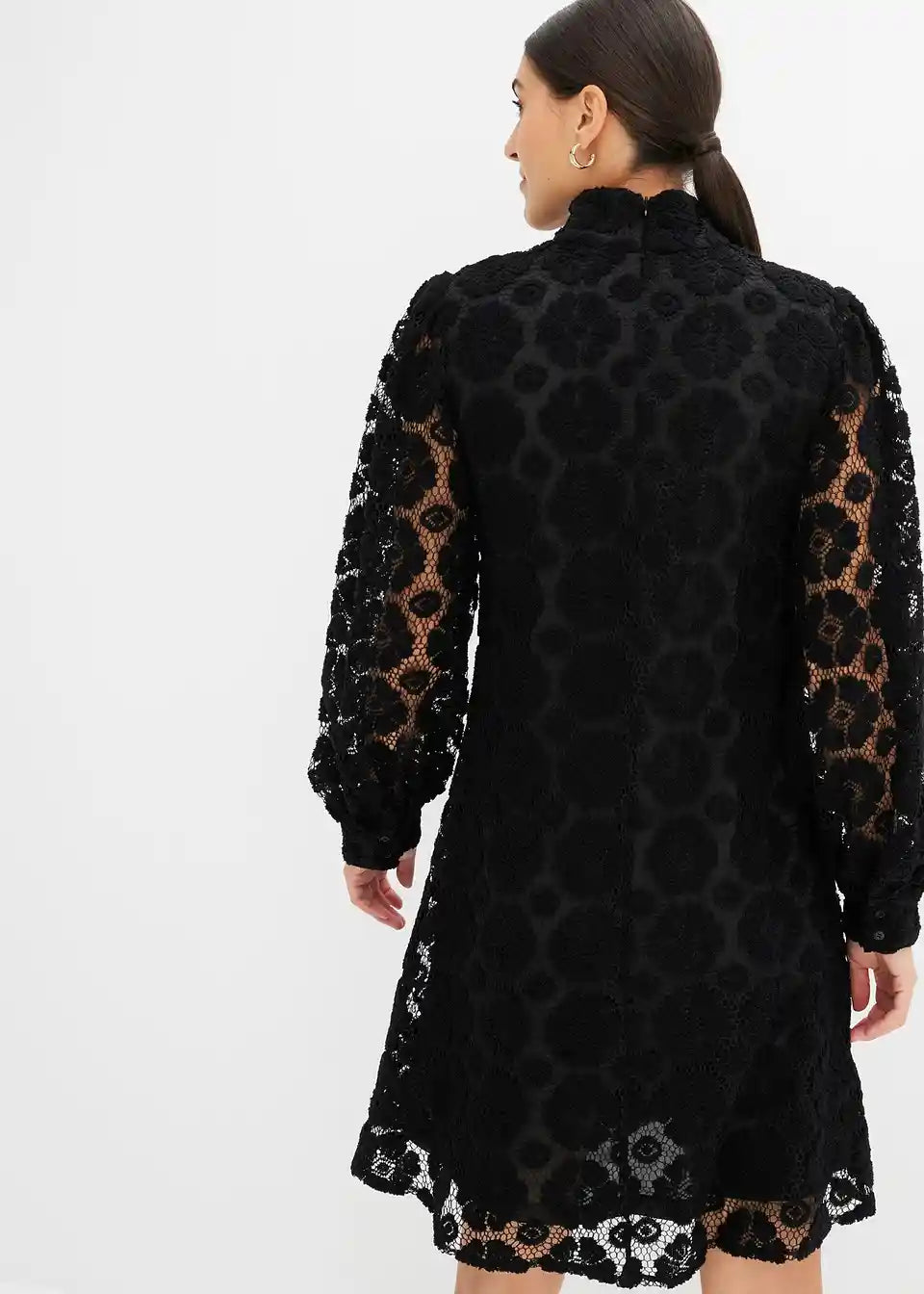 Trendovsko, visoko zaprto minikleid iz čipke z dolgimi rokavi