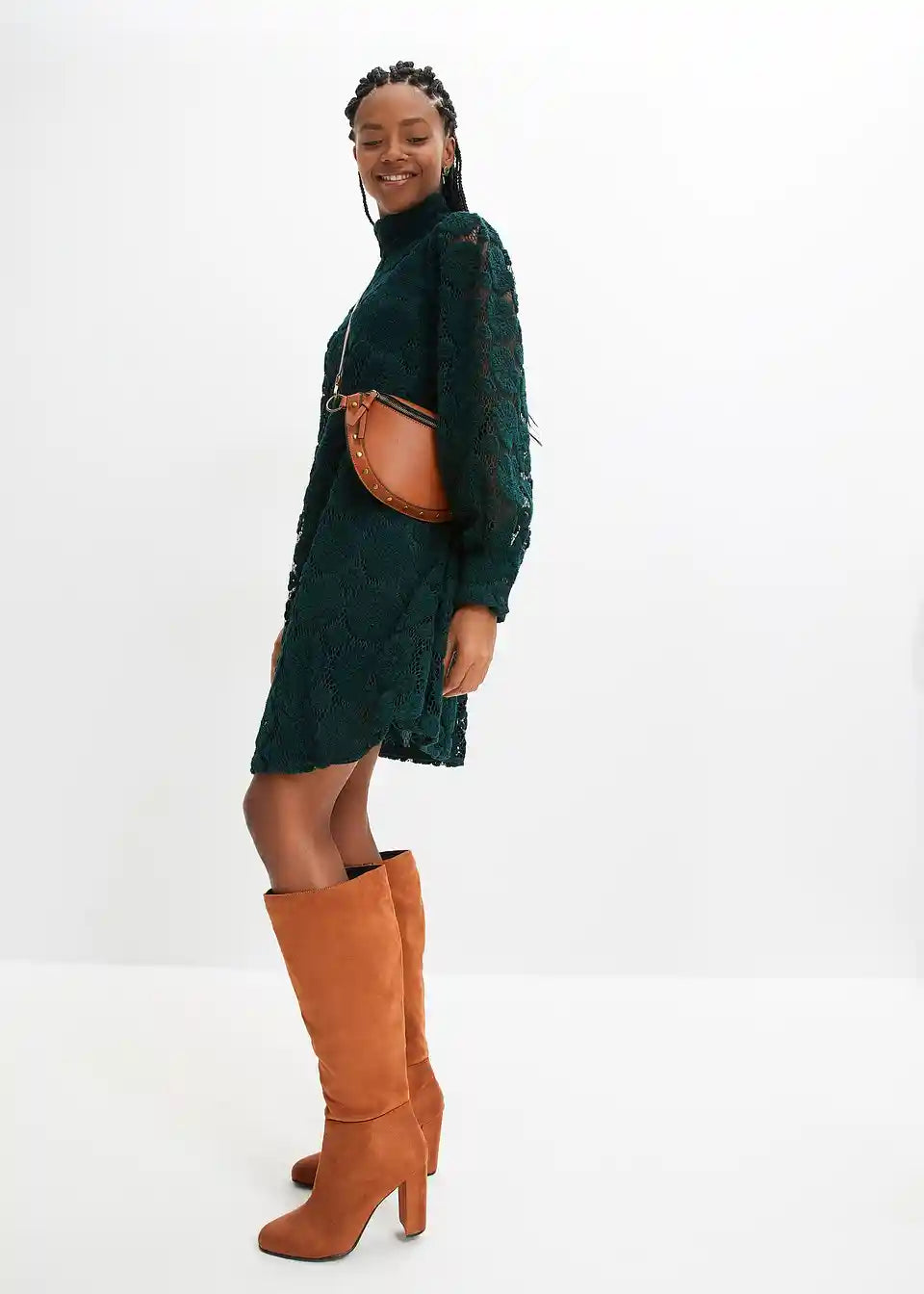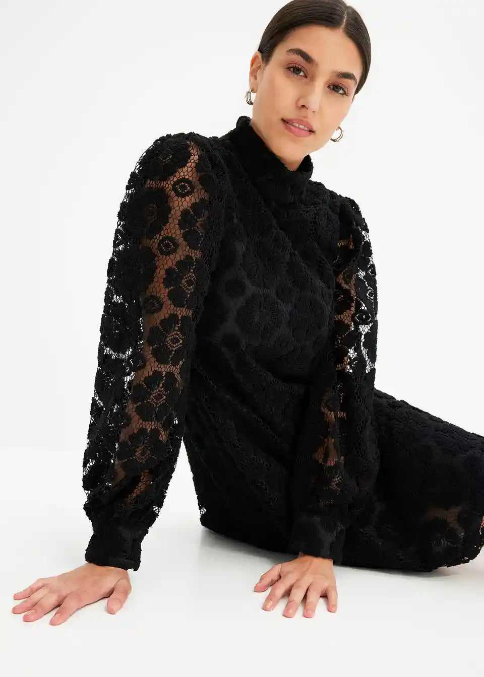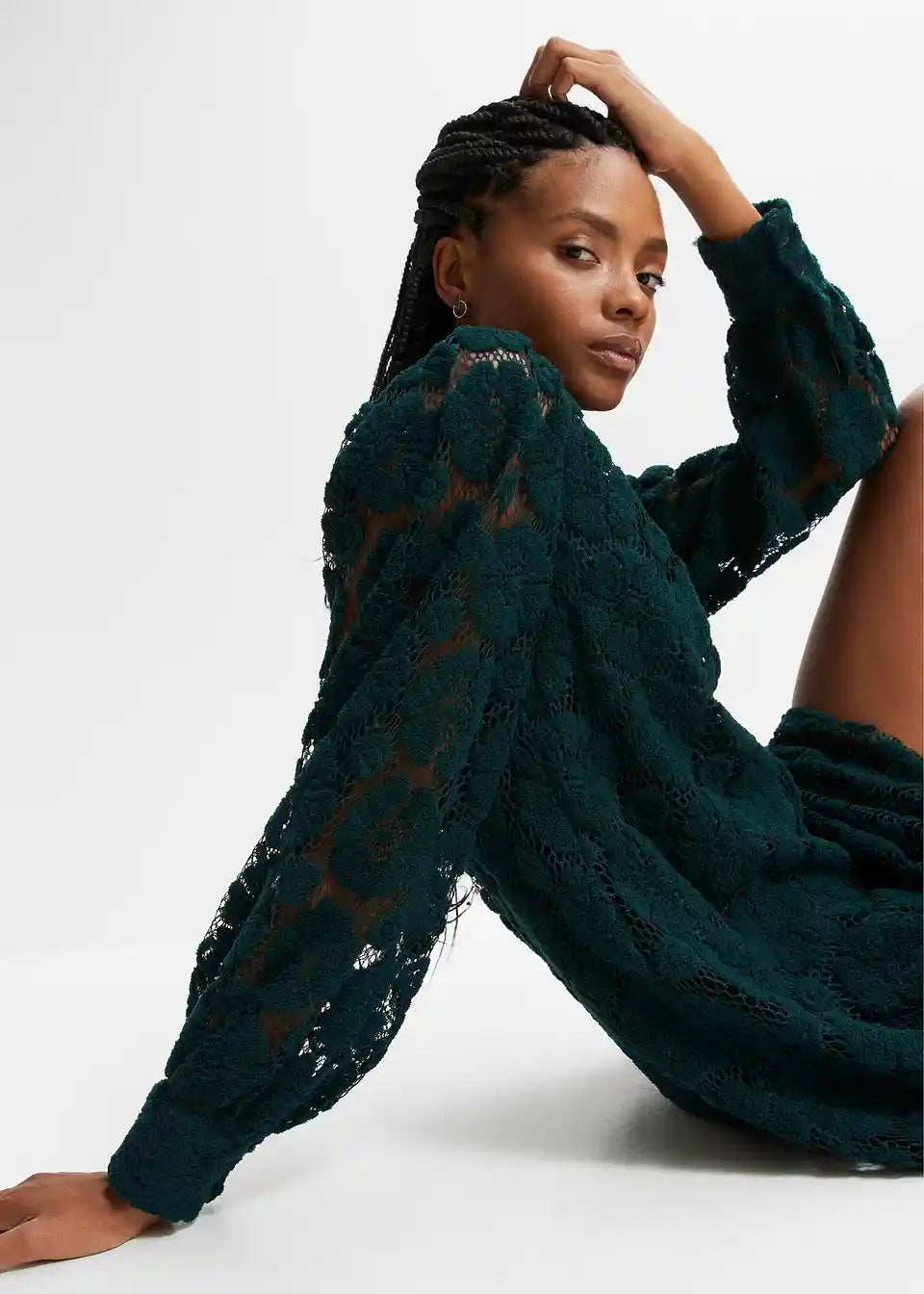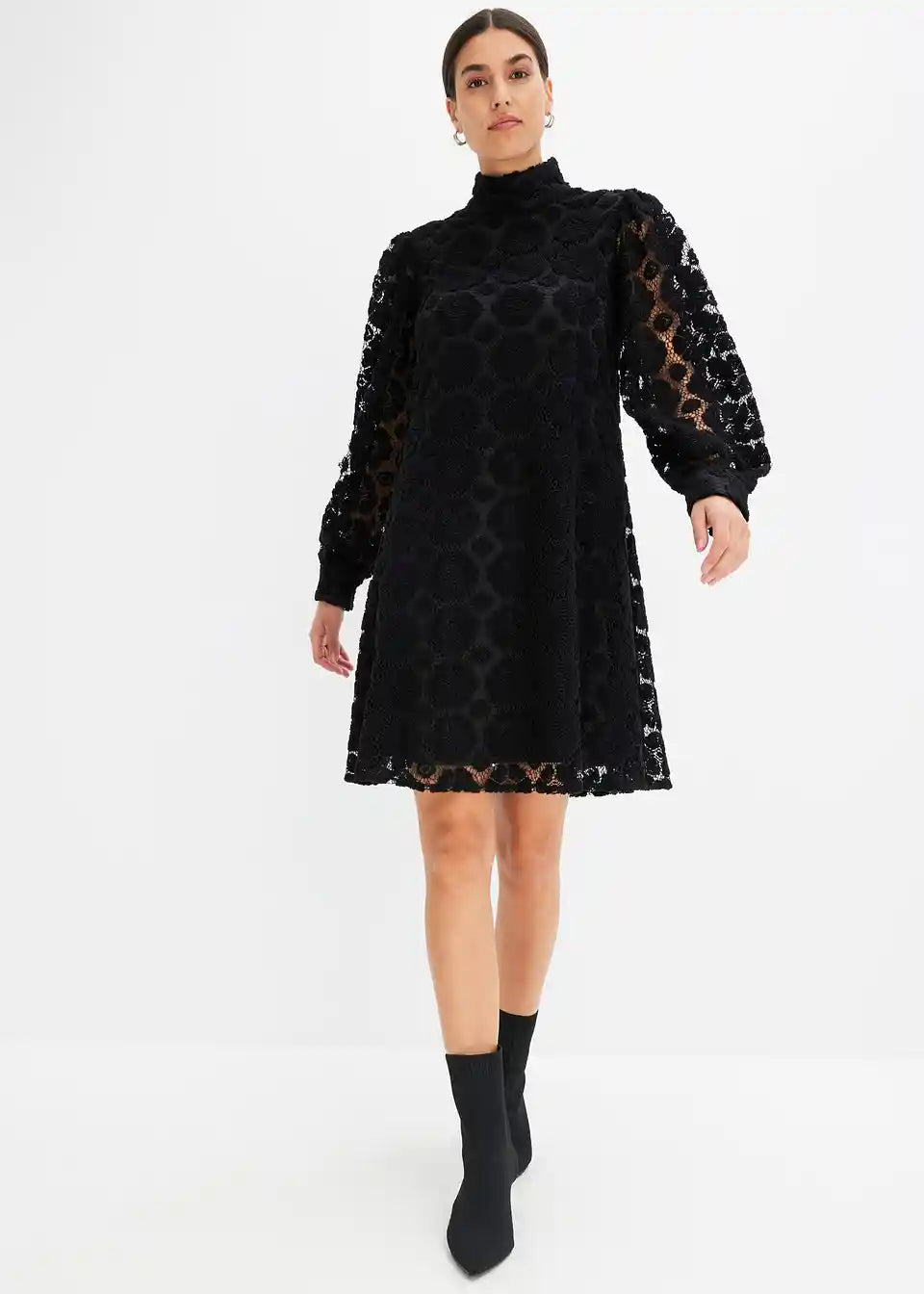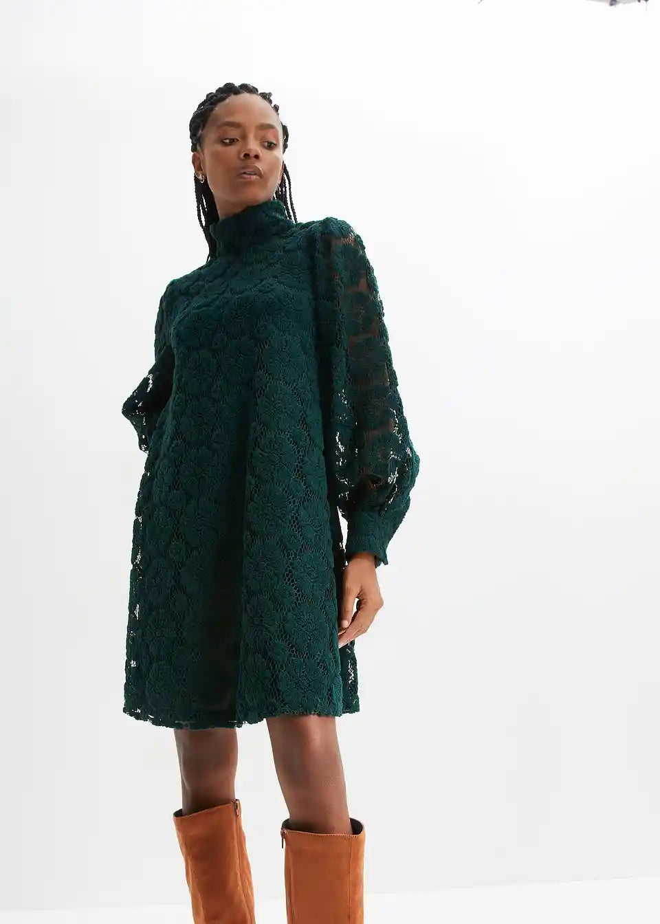 Trendovsko, visoko zaprto minikleid iz čipke z dolgimi rokavi
