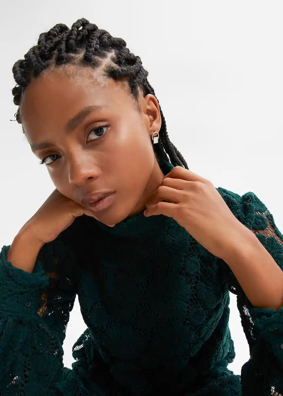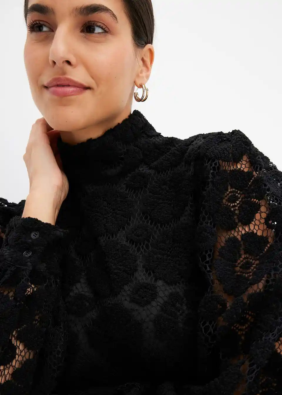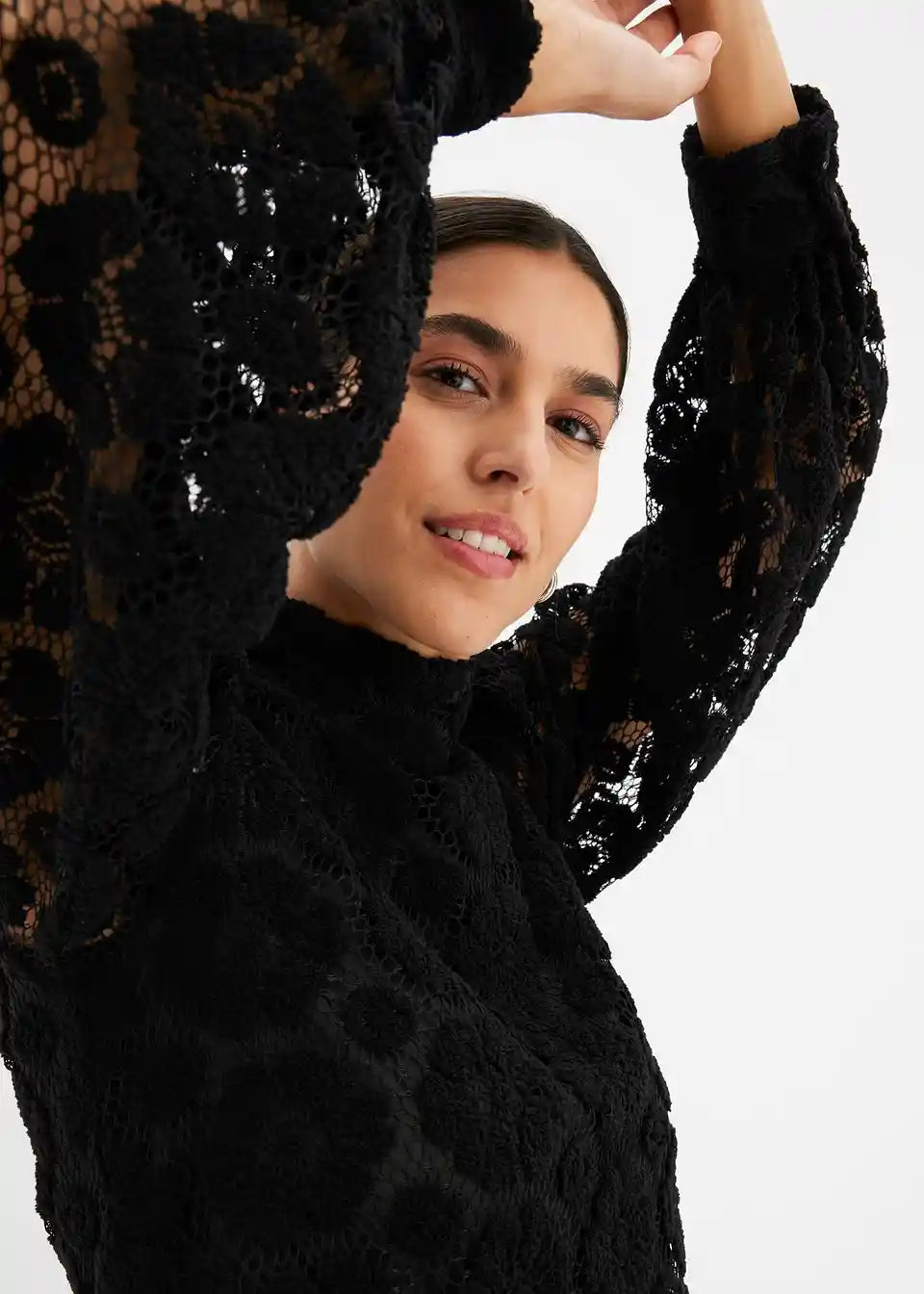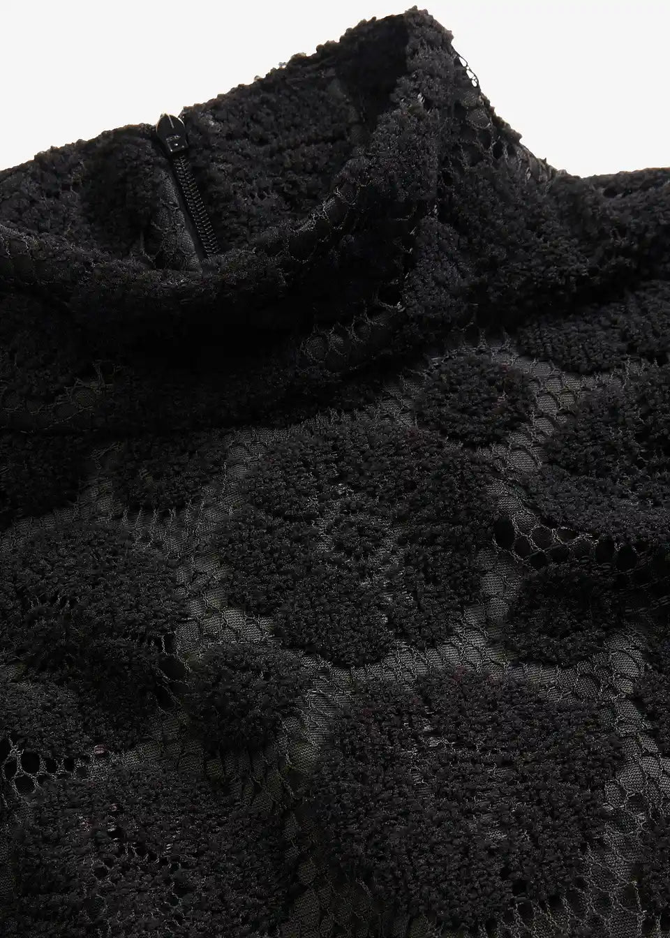 Trendovsko, visoko zaprto minikleid iz čipke z dolgimi rokavi