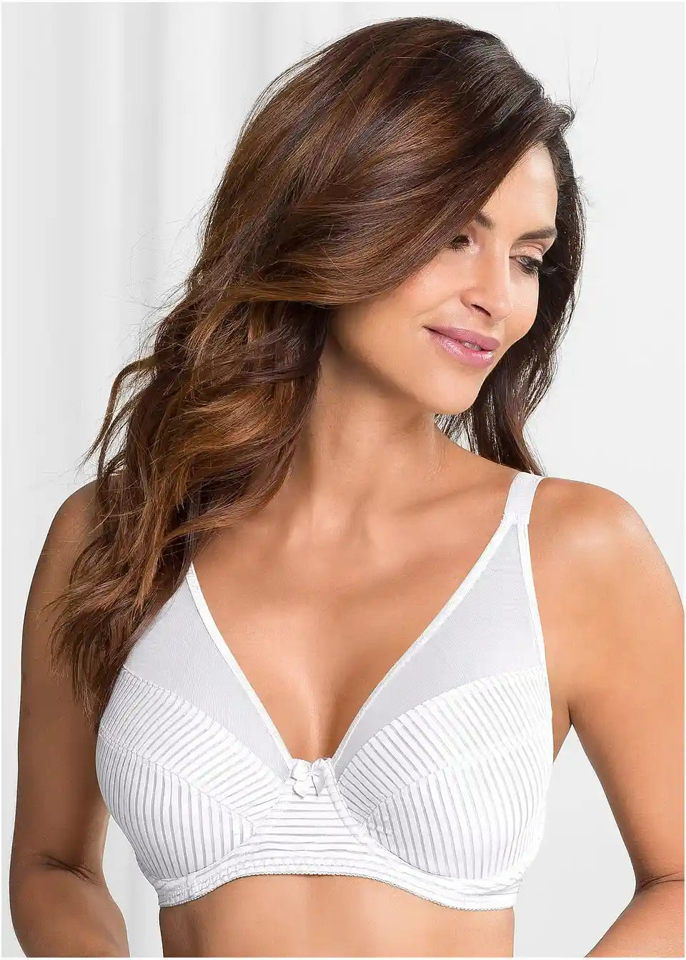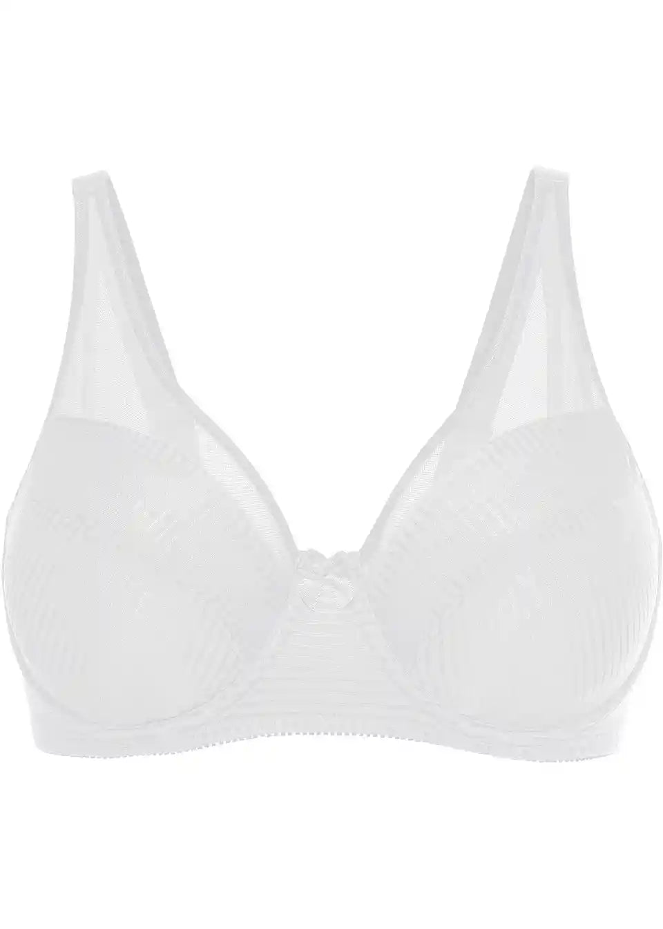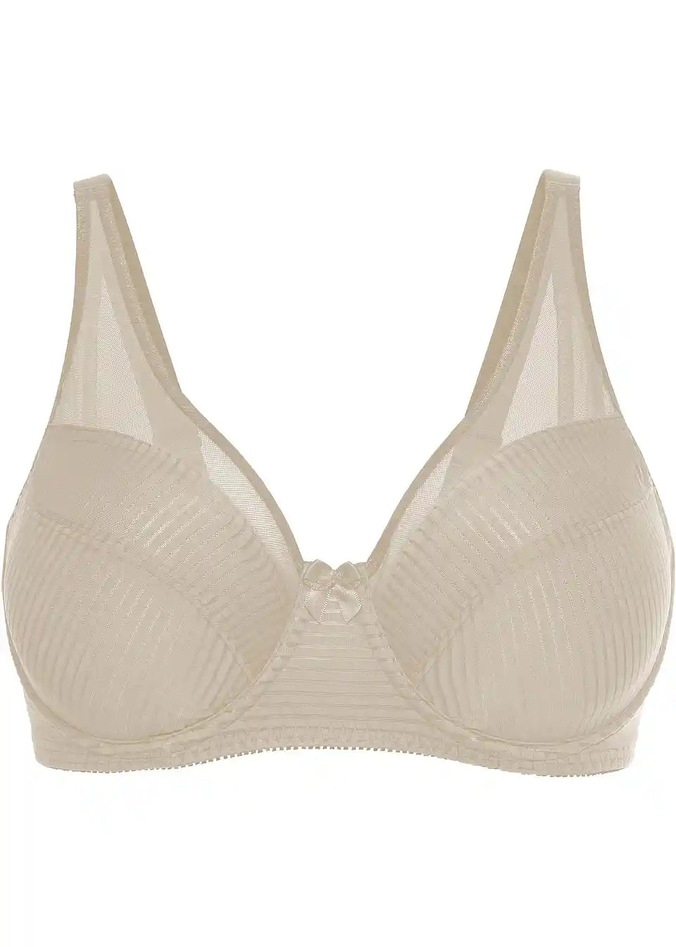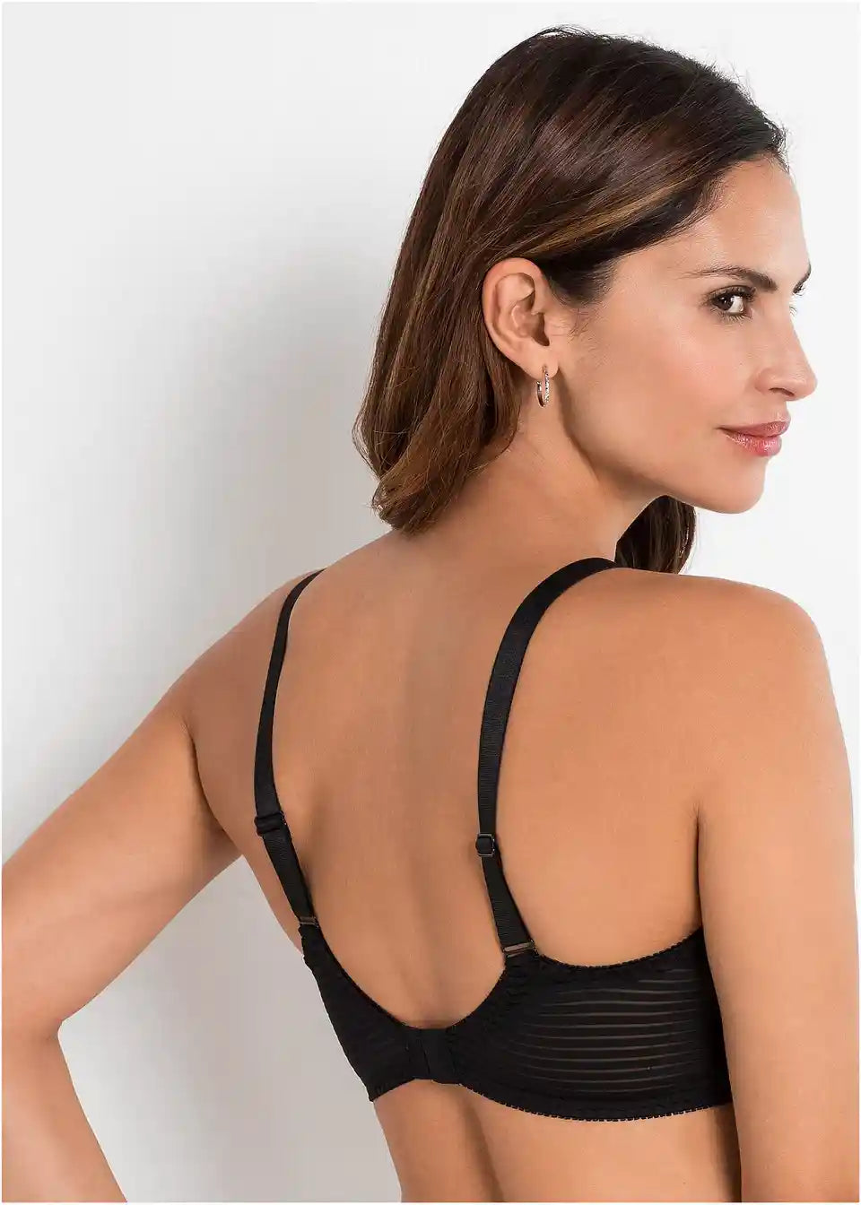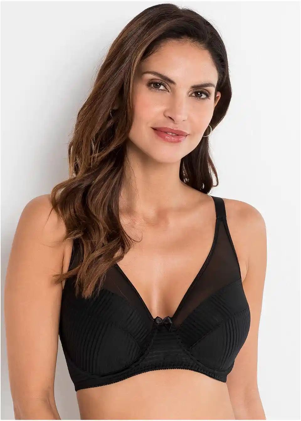 Prefinjeno & brezčasno lep: Klasično oblikovan nedrček z oporo z zmanjševajočim učinkom je popolna izbira za ženske z močnejšim oprsjem. Minimizer dizajn, nežni vložki za dekolte v prosojnem videzu in optimalna elastičnost ga naredijo za nov najljubši kos spodnjega perila. Naramnici in kaveljčki z zapenjanjem – oboje nastavljivo – so pri večjih košaricah širši. Za poseben poudarek na detajlih poskrbijo valovit okrasni rob pod prsmi ter prišita dekorativna pentlja na mostičku. S tem nepodloženim nedrčkom pridobi vsaka garderoba nepogrešljiv najljubši kos.