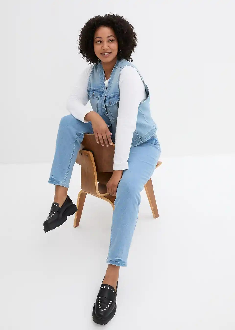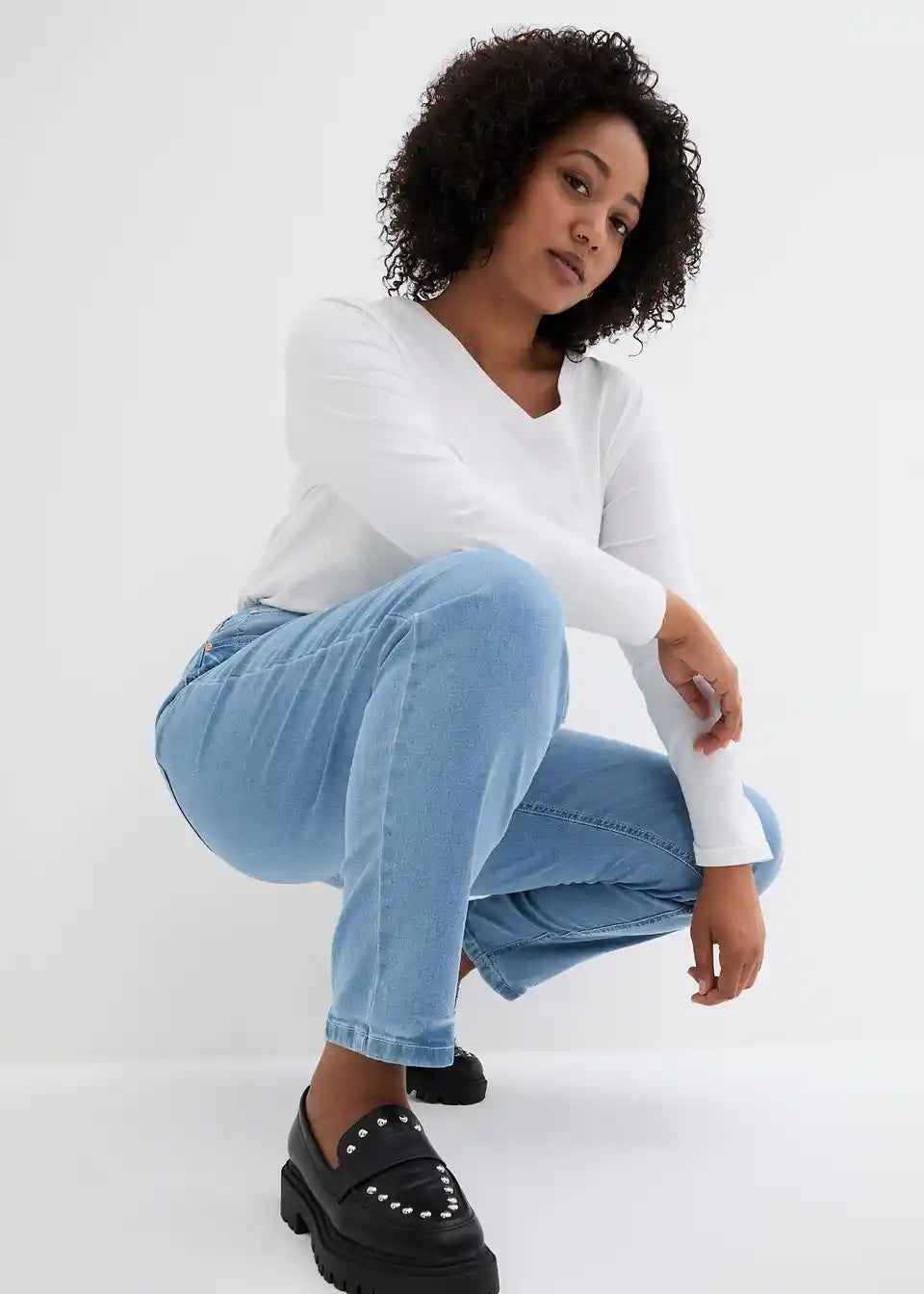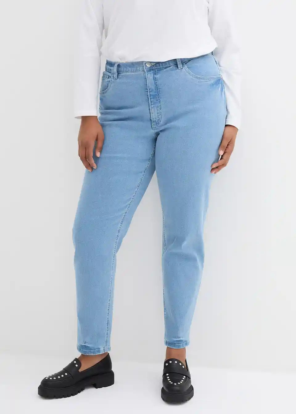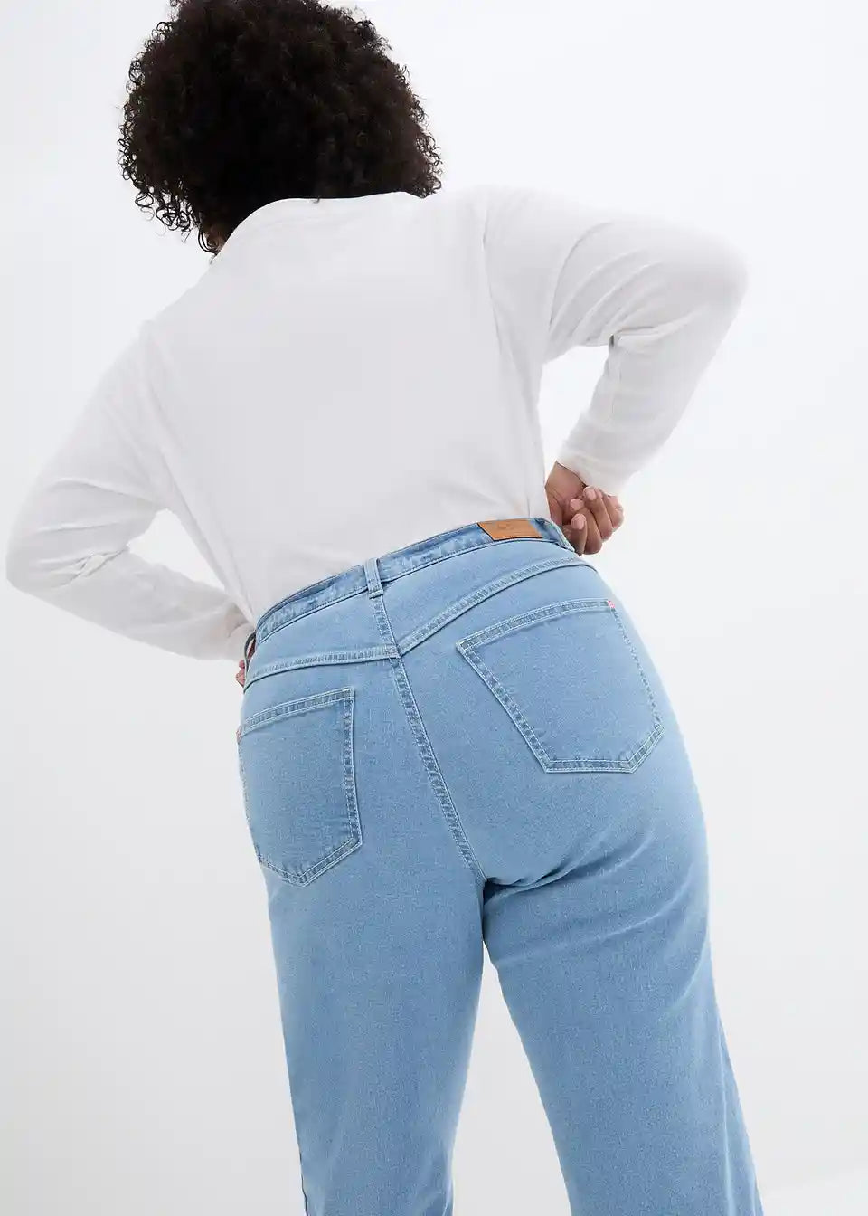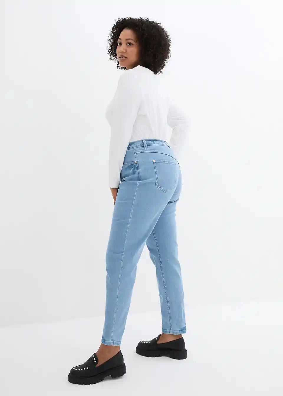 Mom kavbojke z zelo visokim pasom in stretch materialom