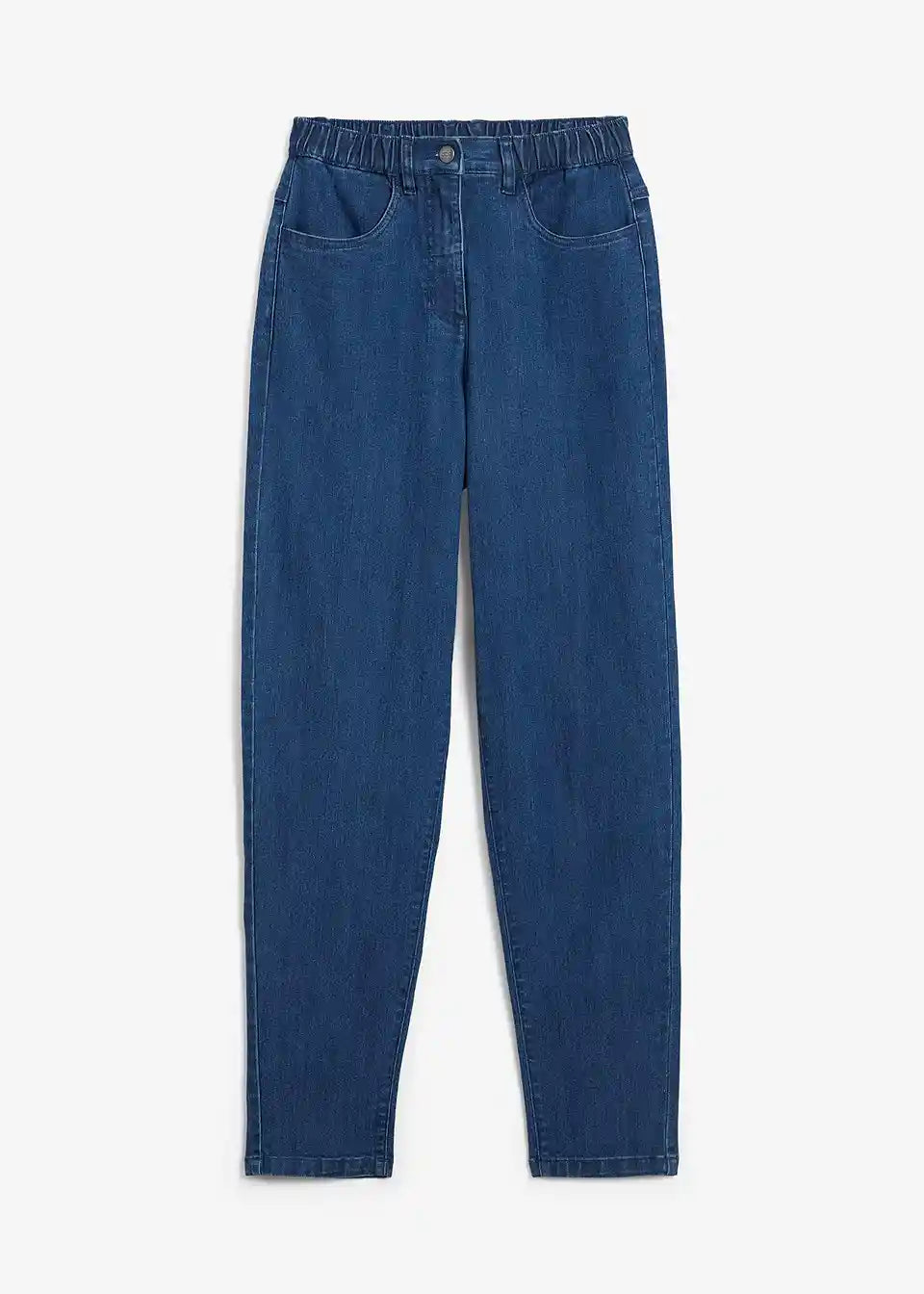 Mom kavbojke z zelo visokim udobnim pasom in stretch materialom