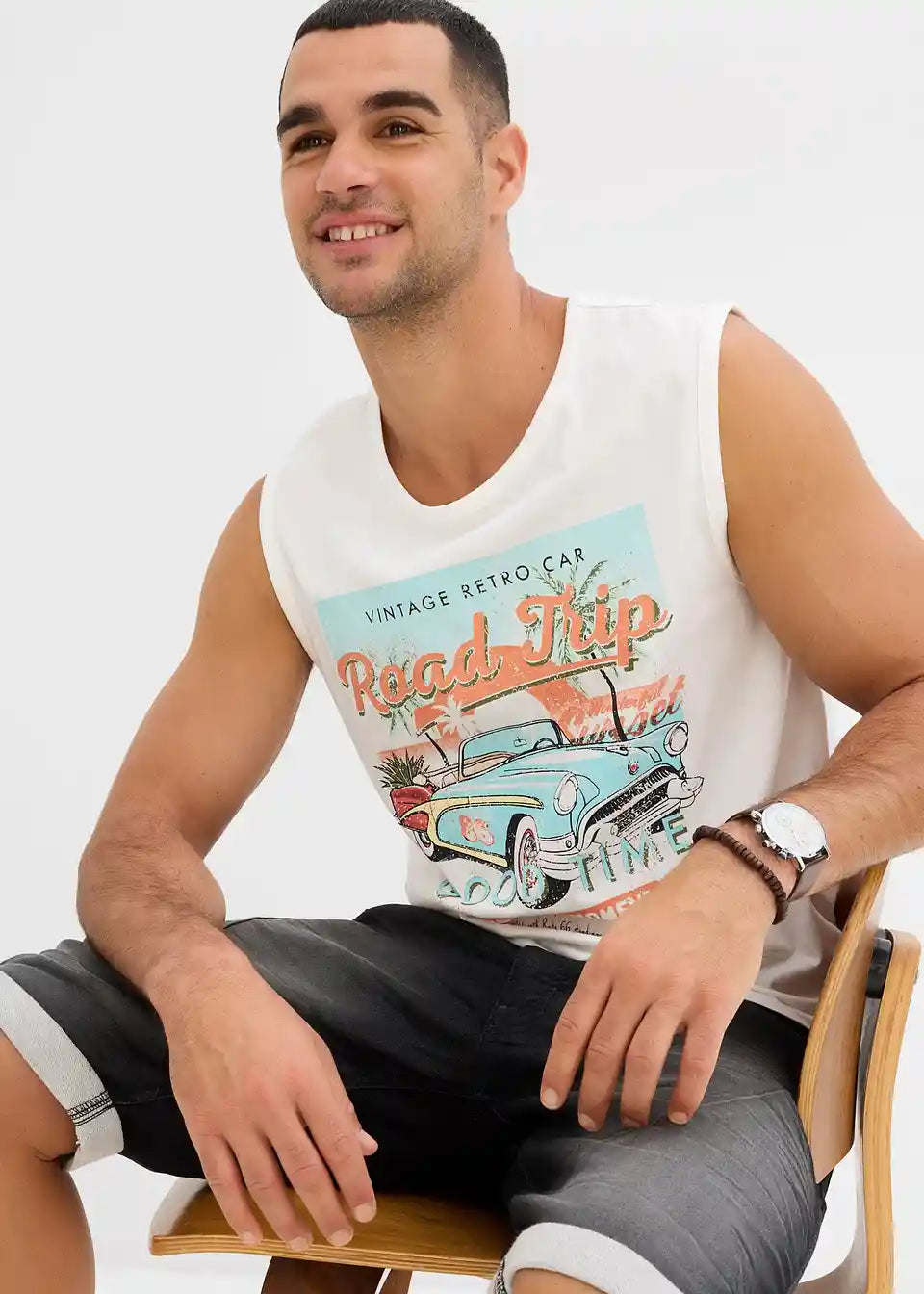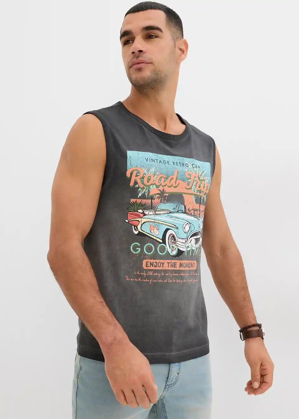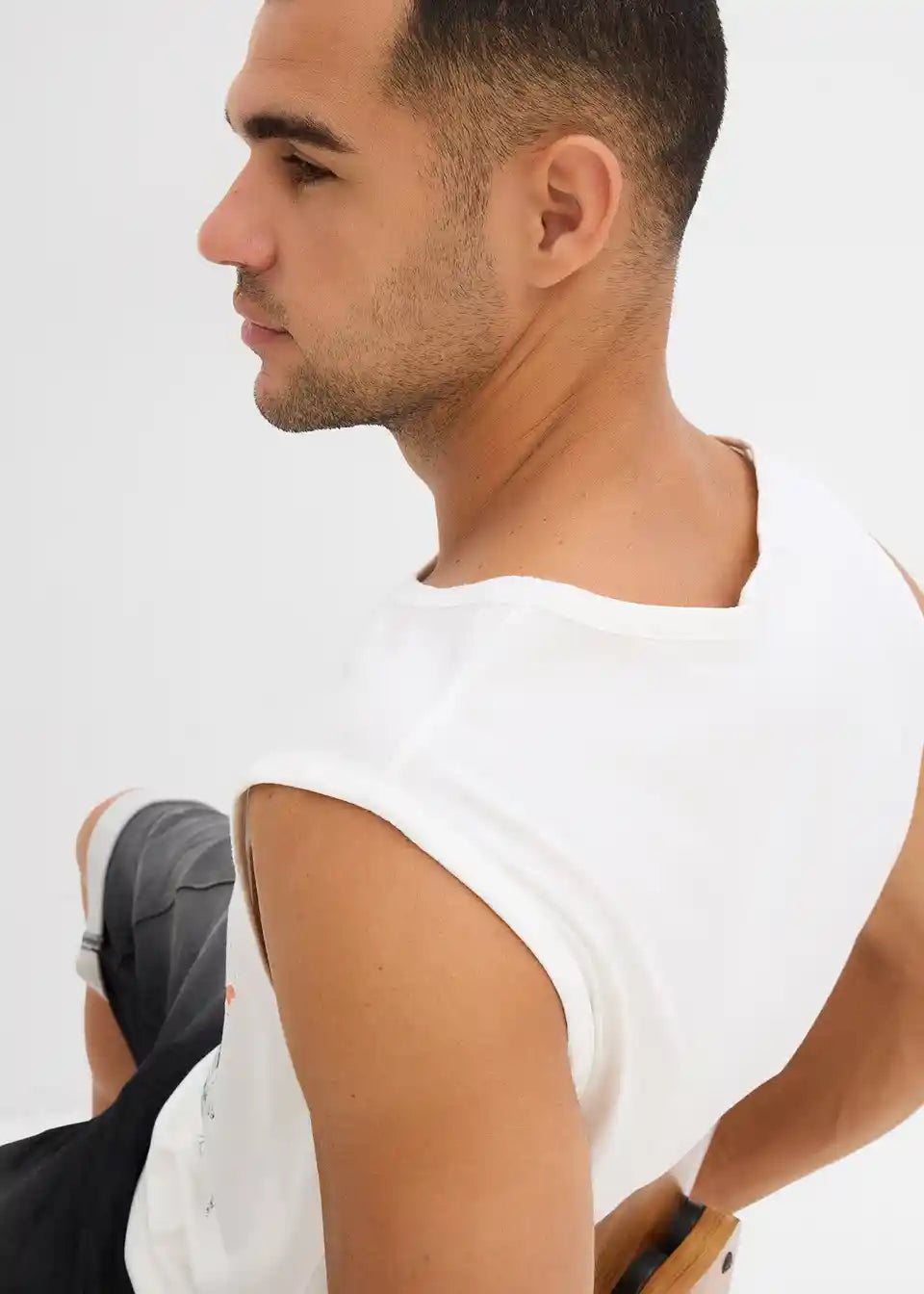Modna muskel majica iz čiste bombažne tkanine s spranim videzom