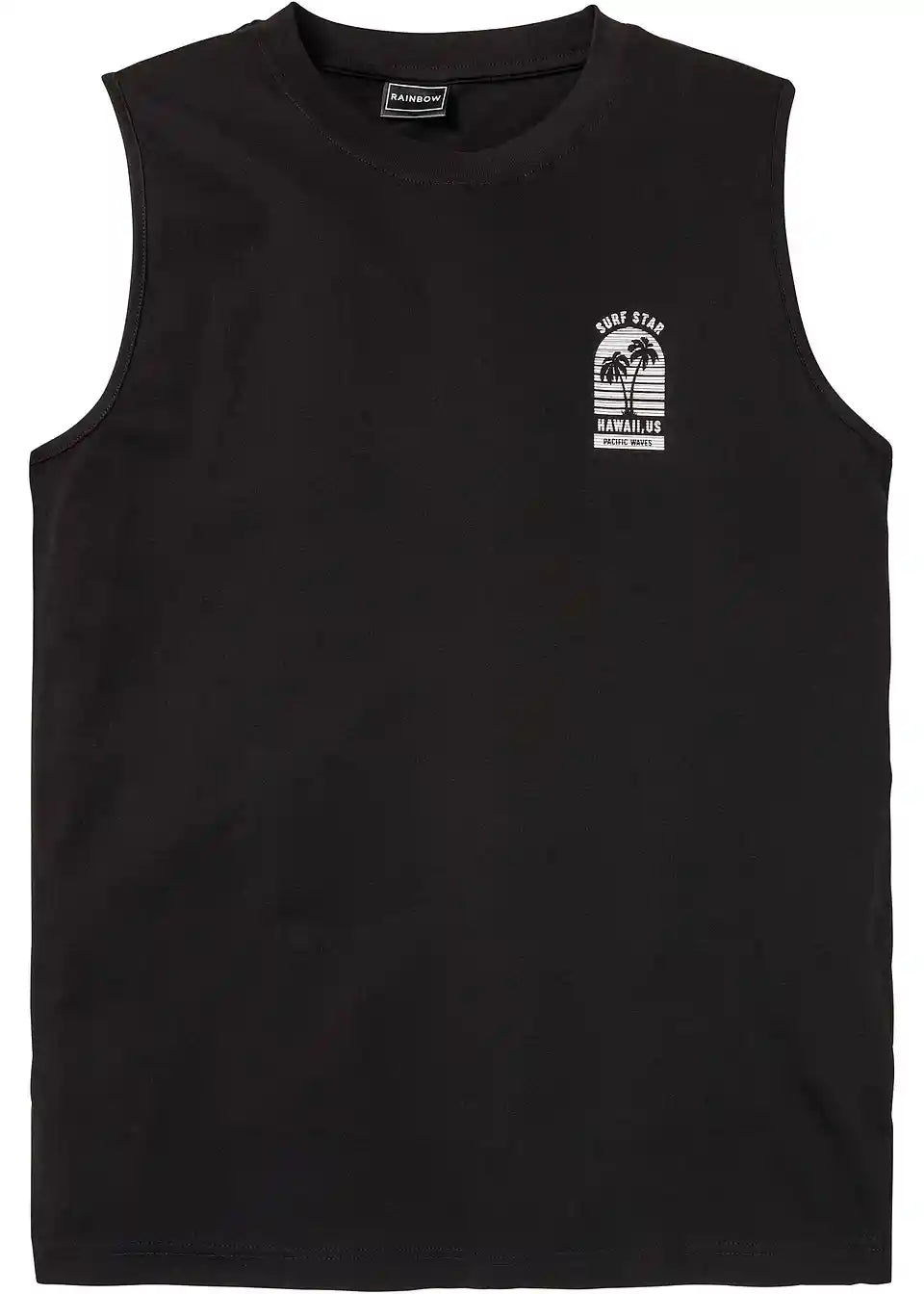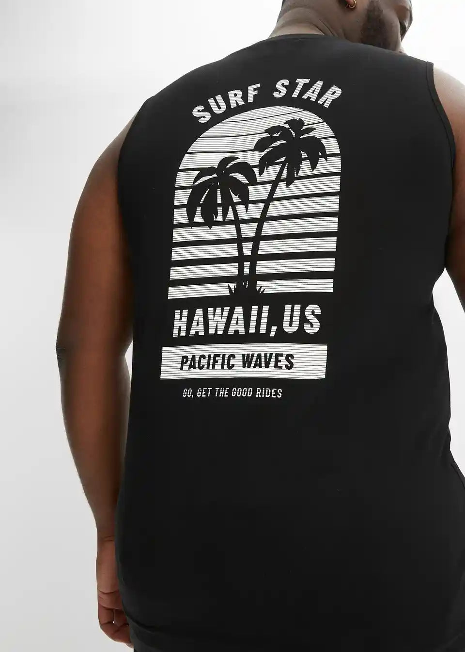 moderna mišična majica z velikim tiskom na hrbtu in majhnim sprednjim tiskom