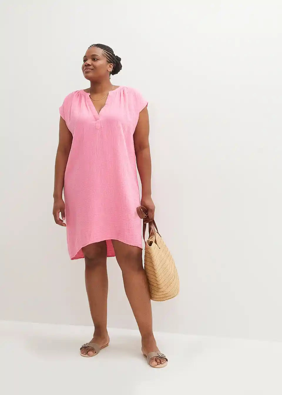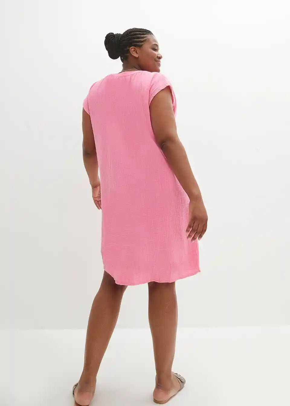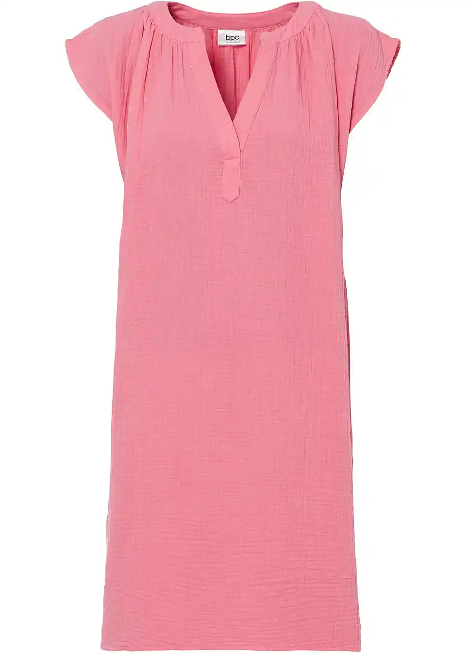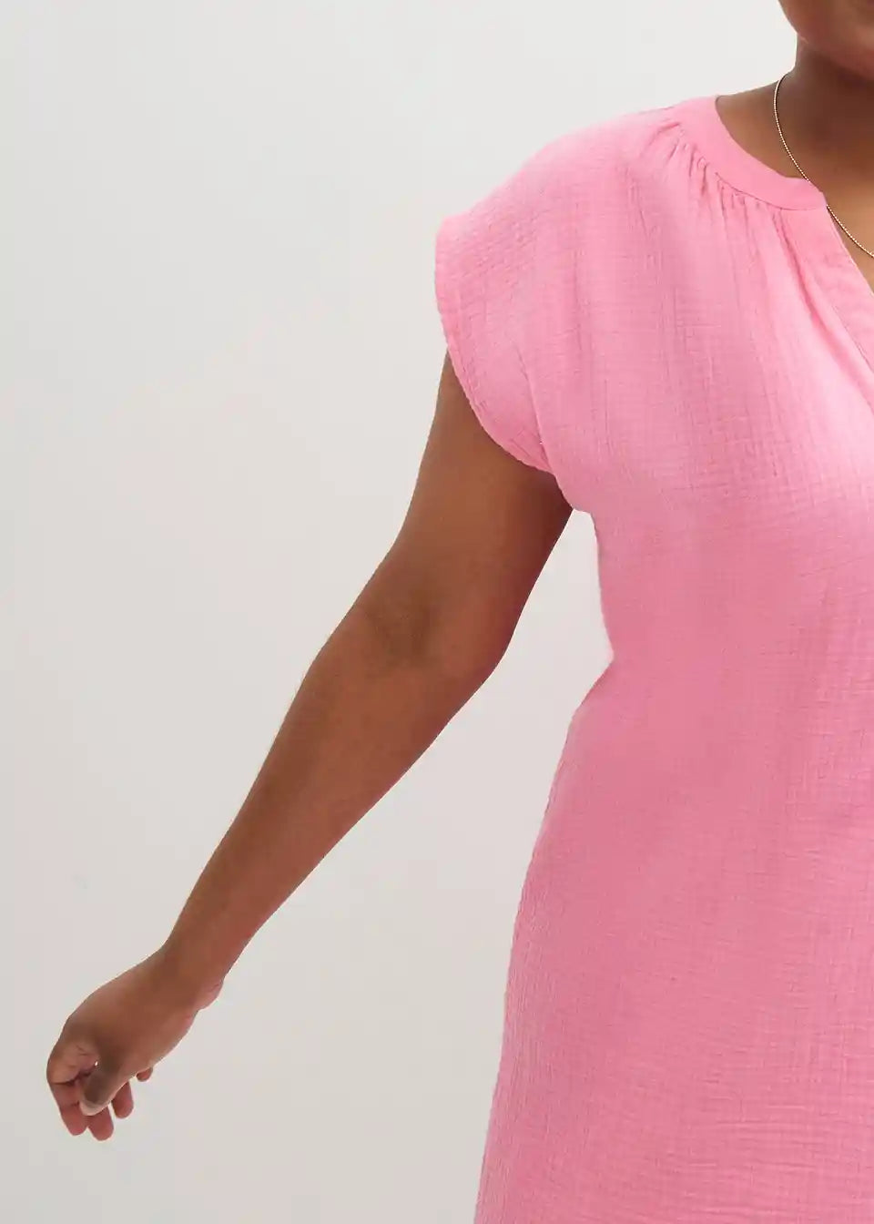 Ohlapna muslin obleka z V-izrezom
