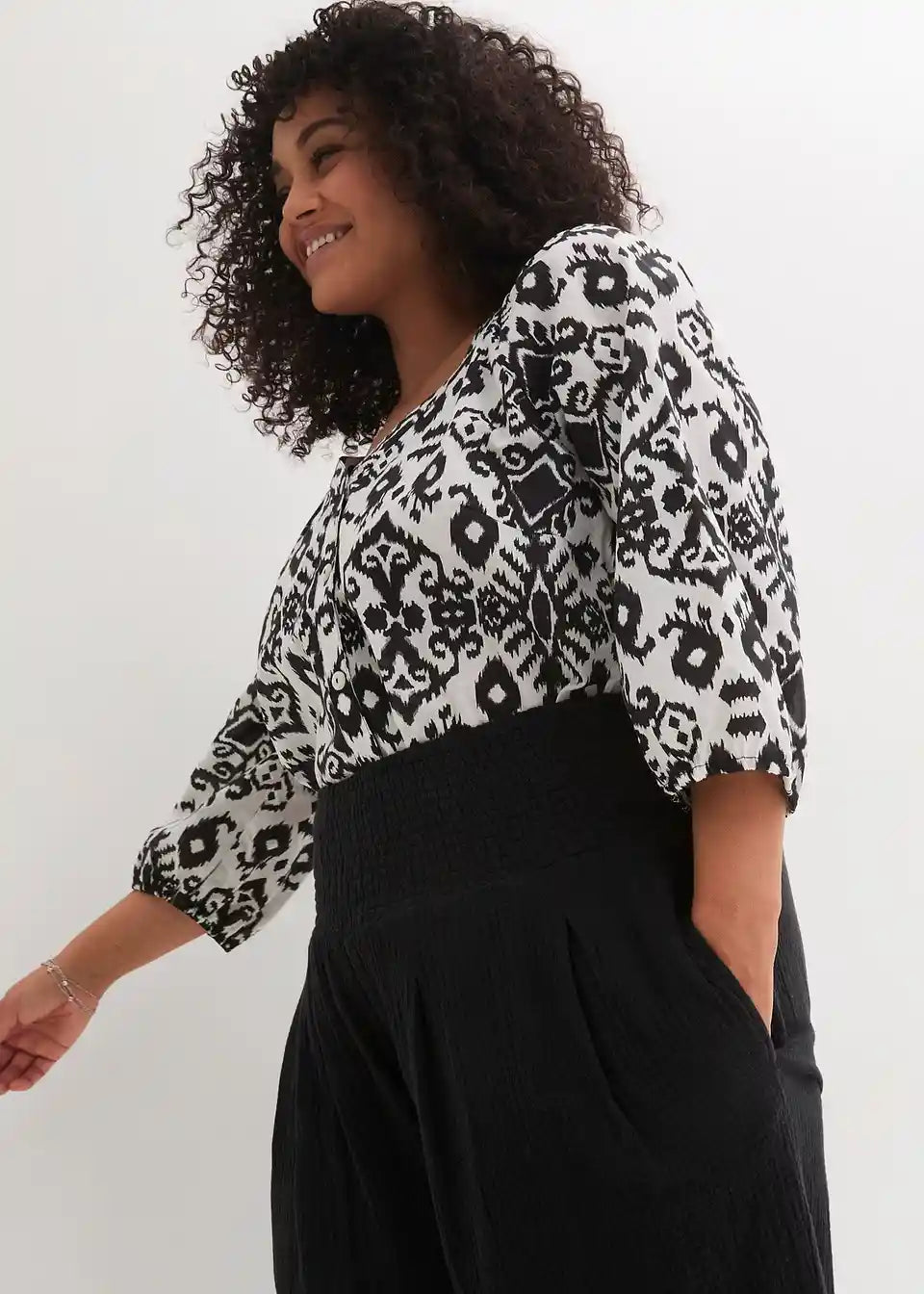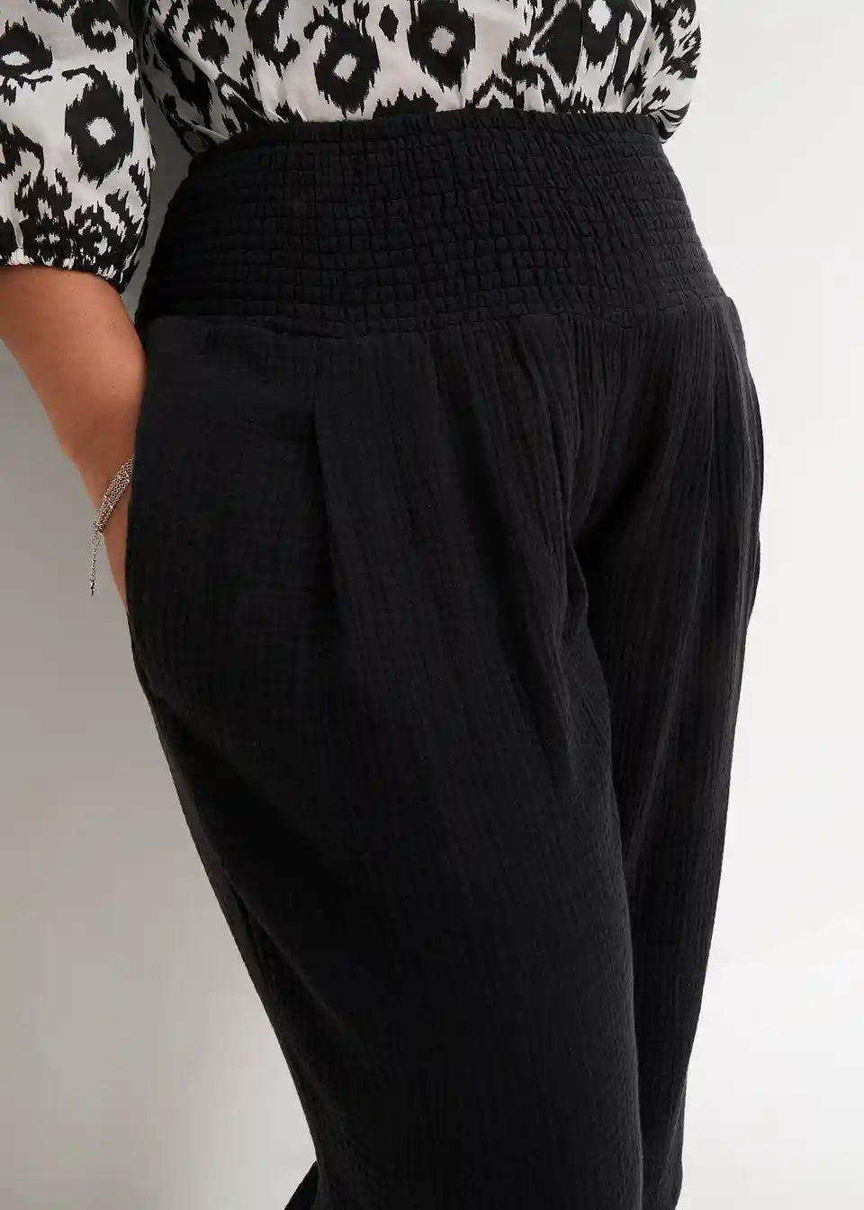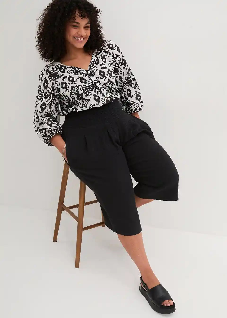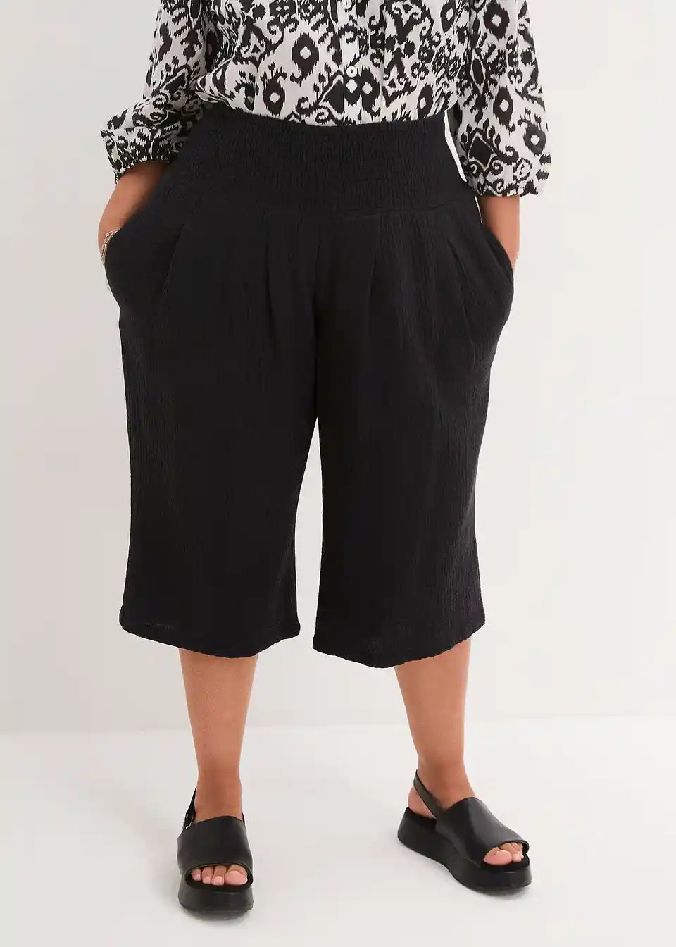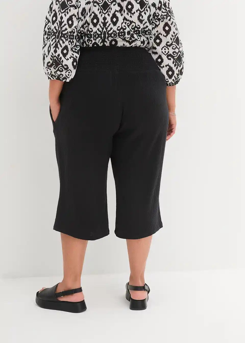 Udobne Capri hlače s širokim elastičnim pasom in žepi iz čistega bombaža