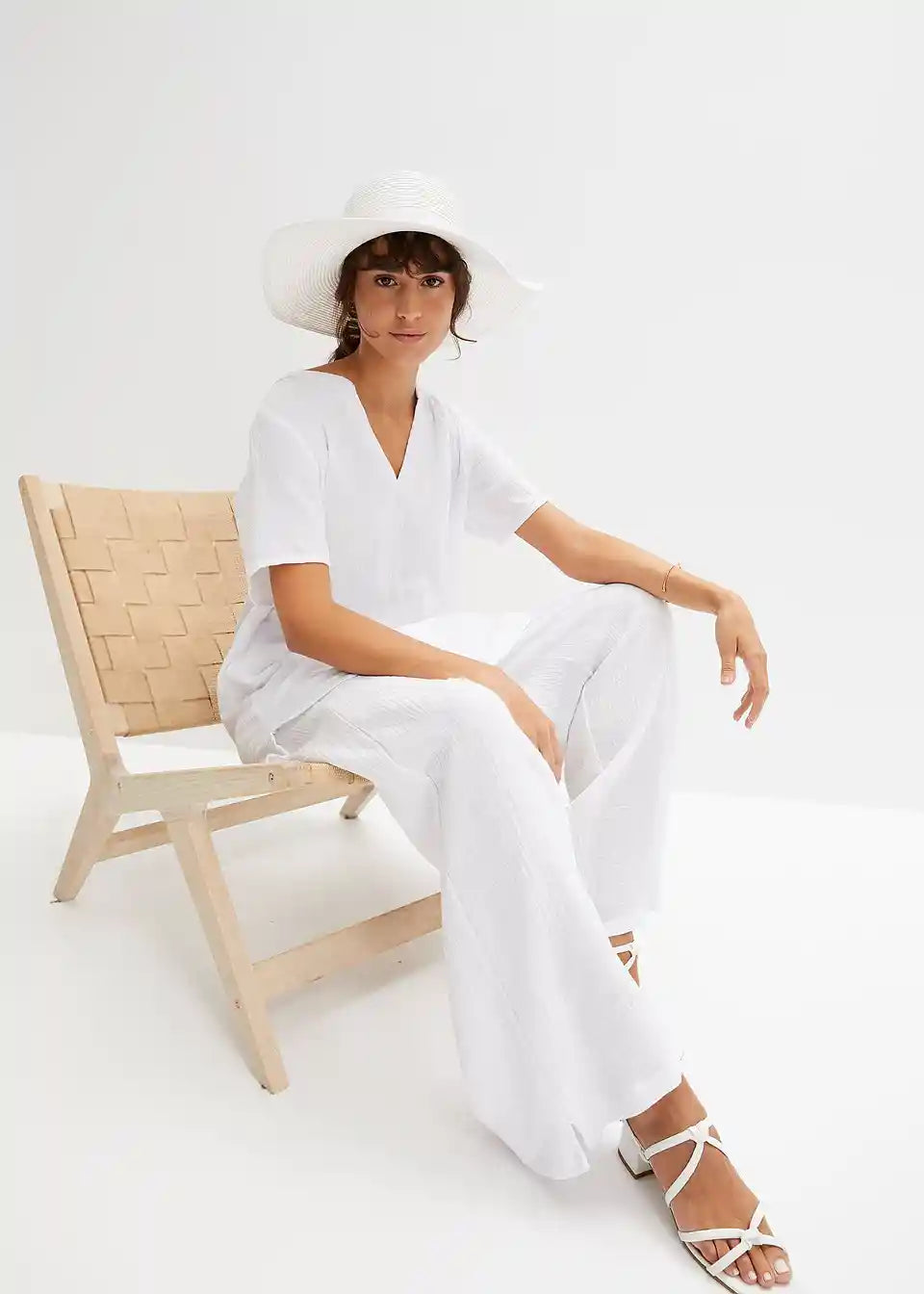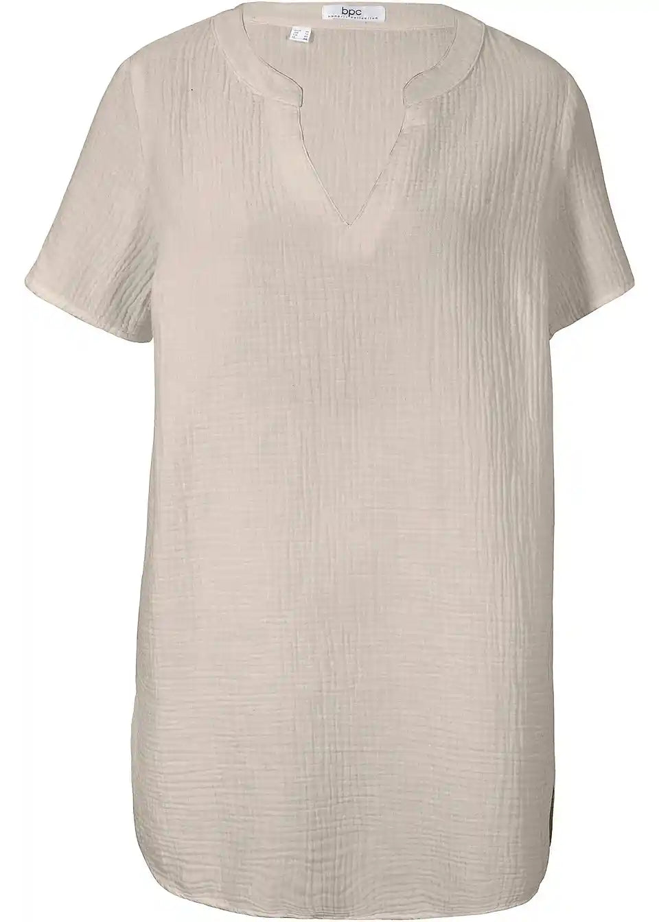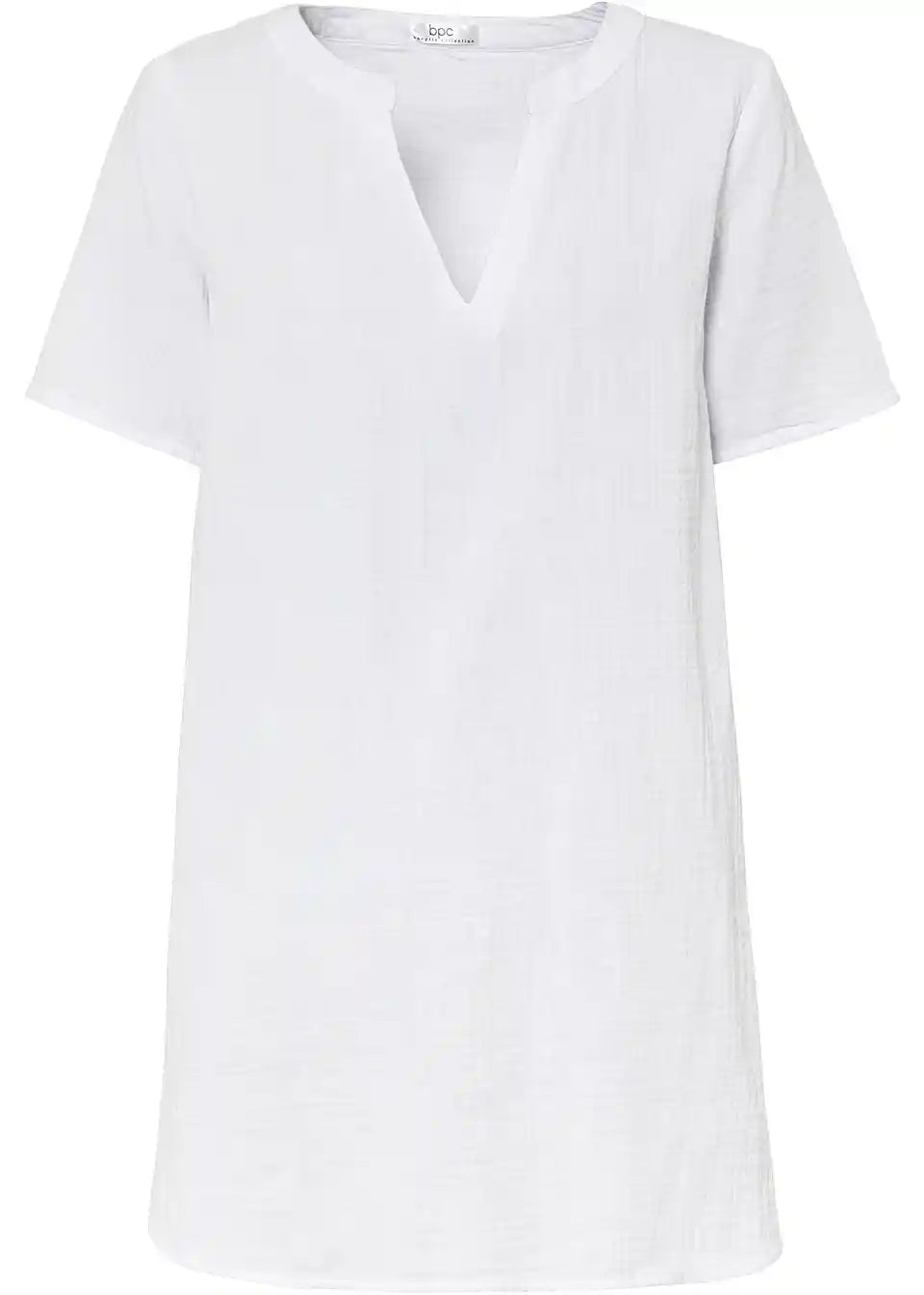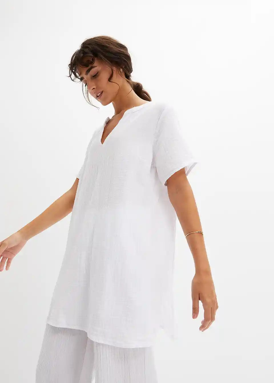 Dolga tunika s kratkimi rokavi in stranskimi razporki iz muslina