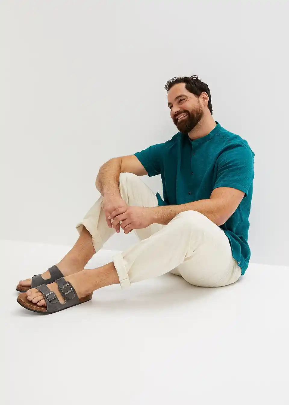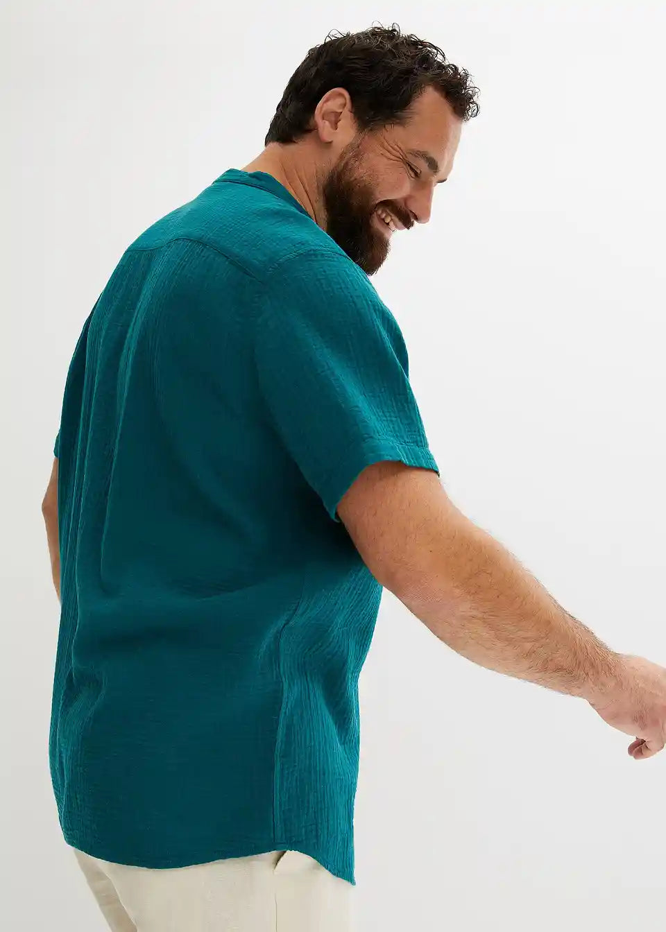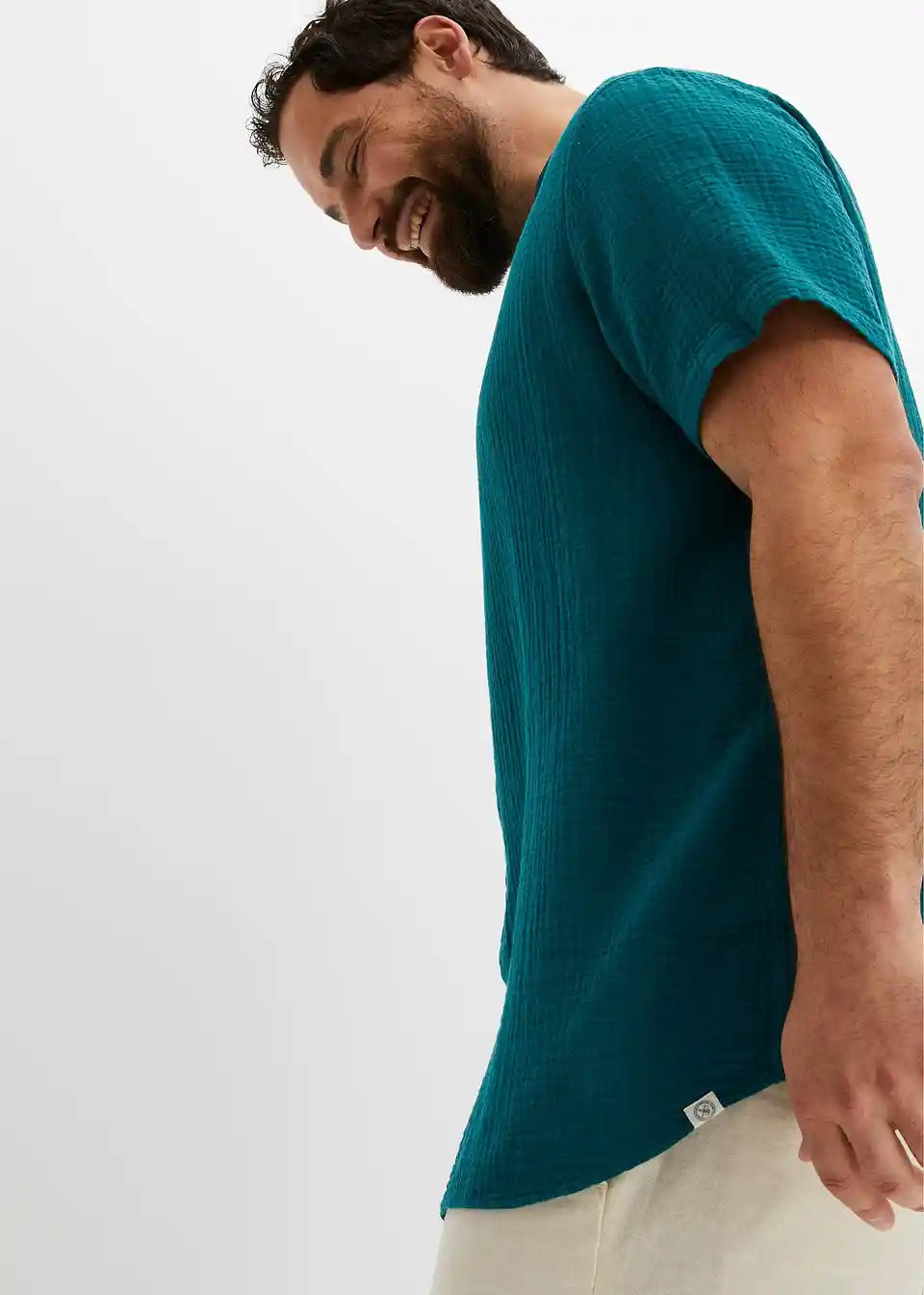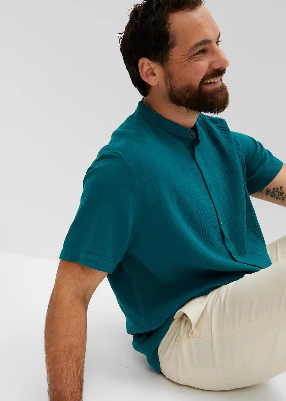 Modna Musselin-Kratka Rokav Srajca z Stoječim Ovratnikom