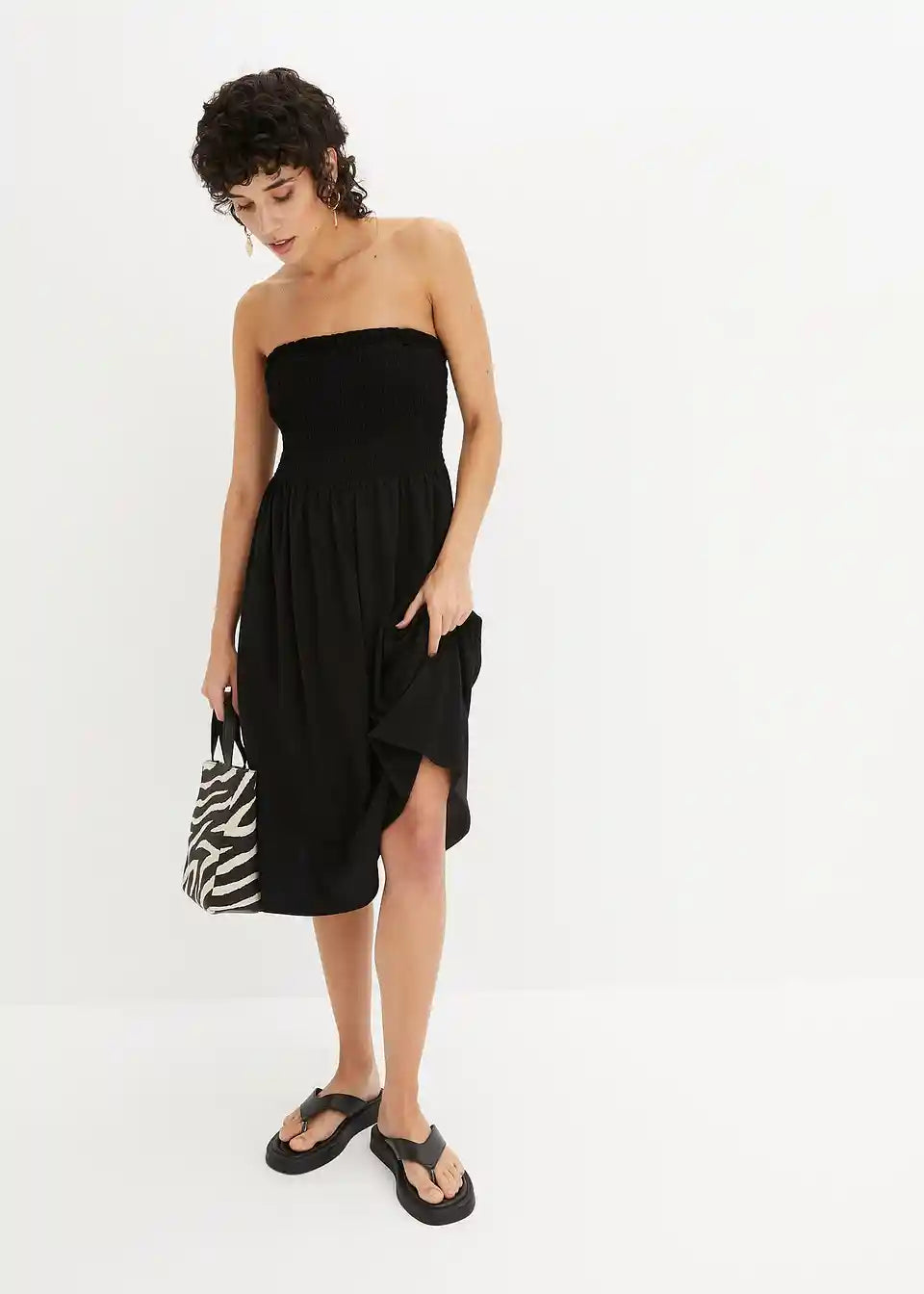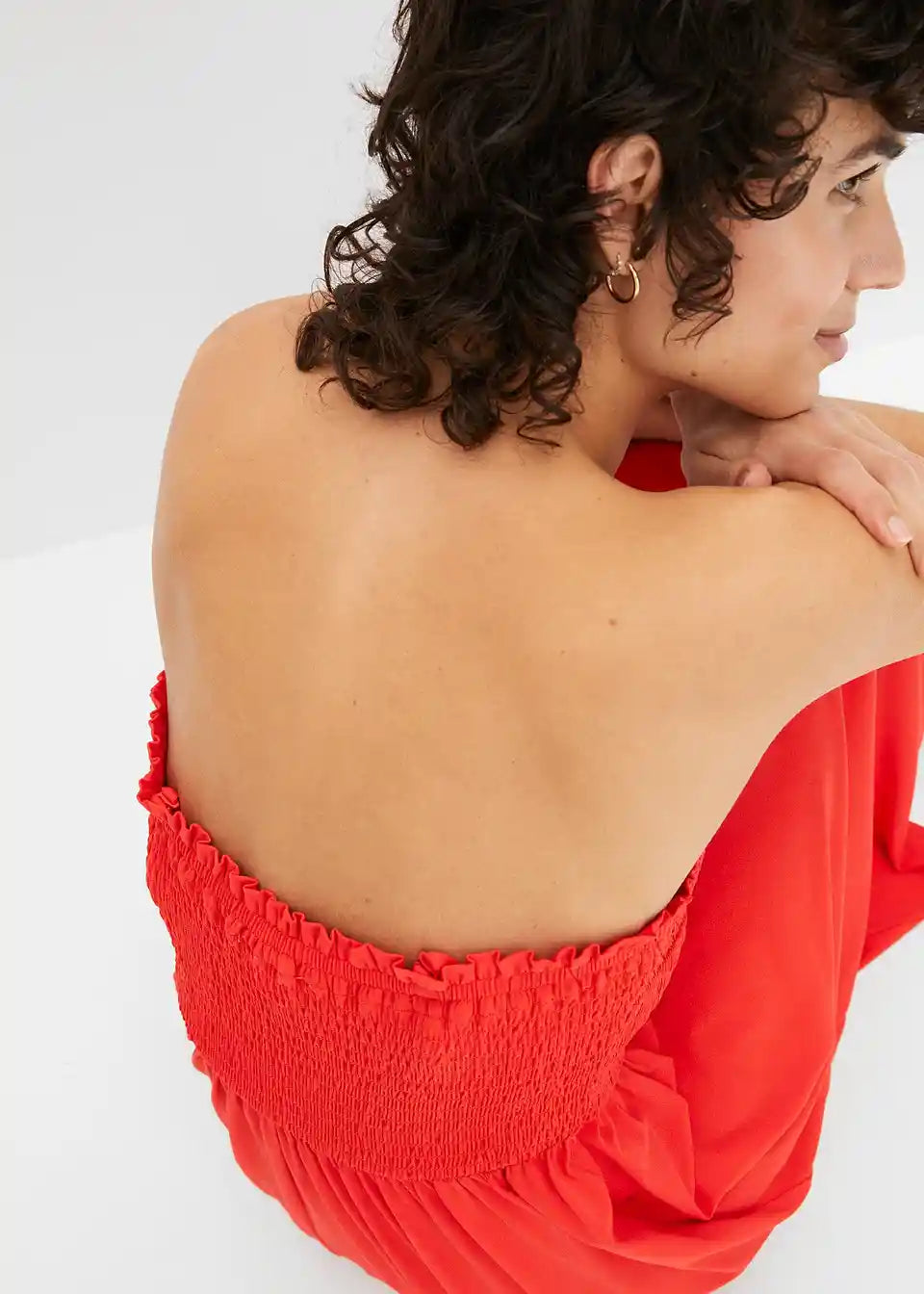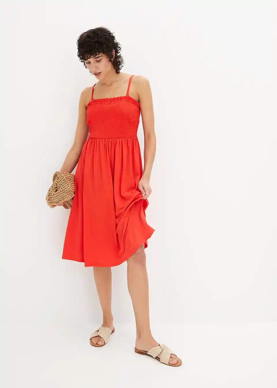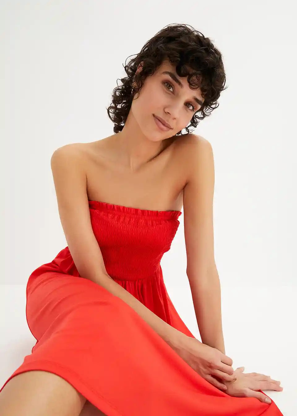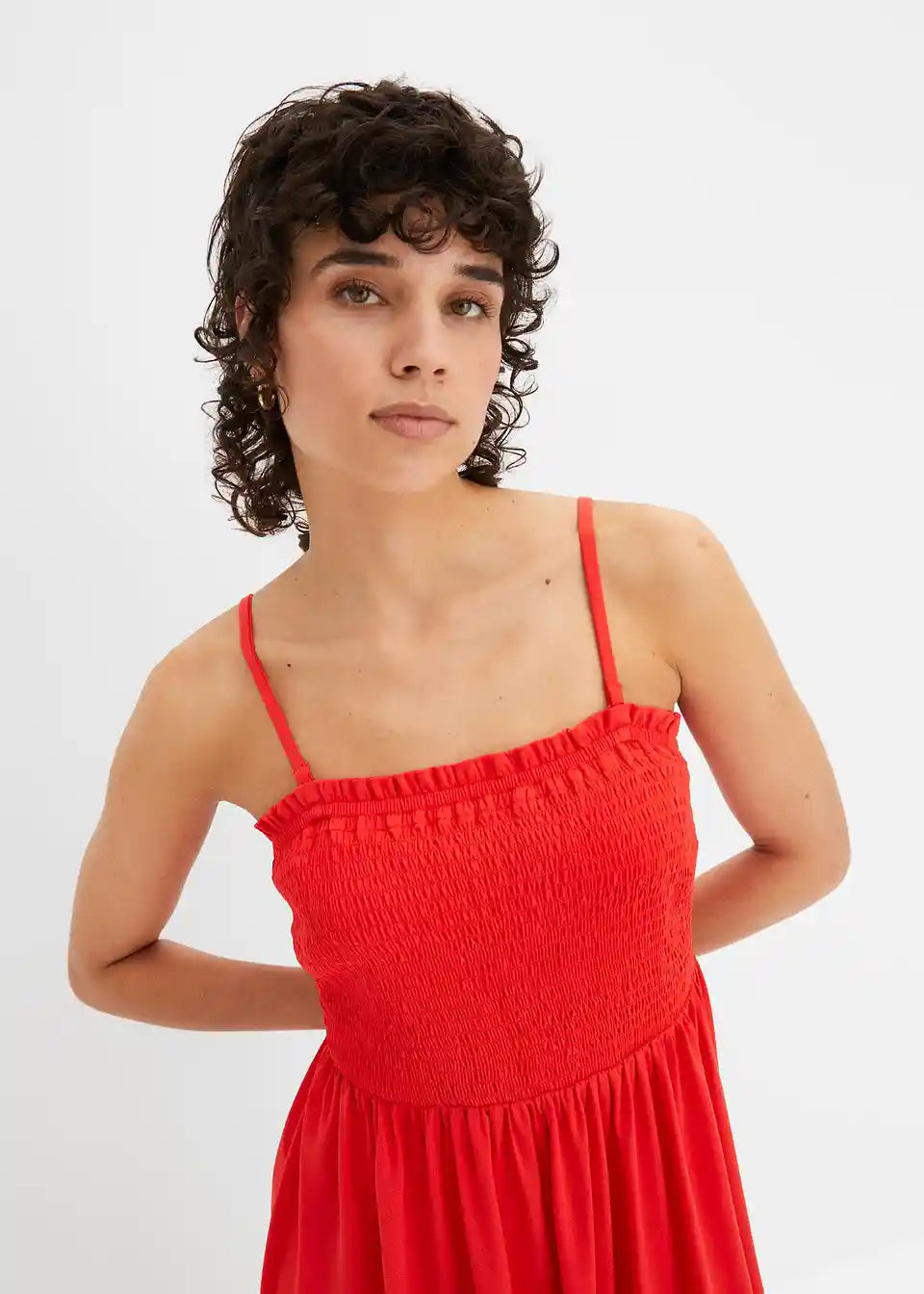 Gosto nabrana obleka z naramnicami iz lahkega krepa