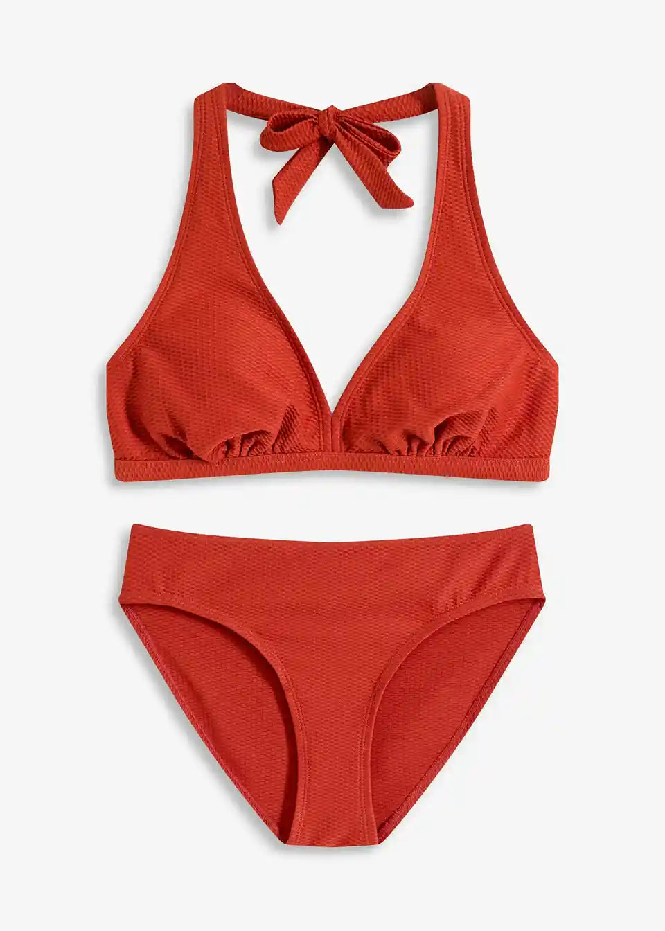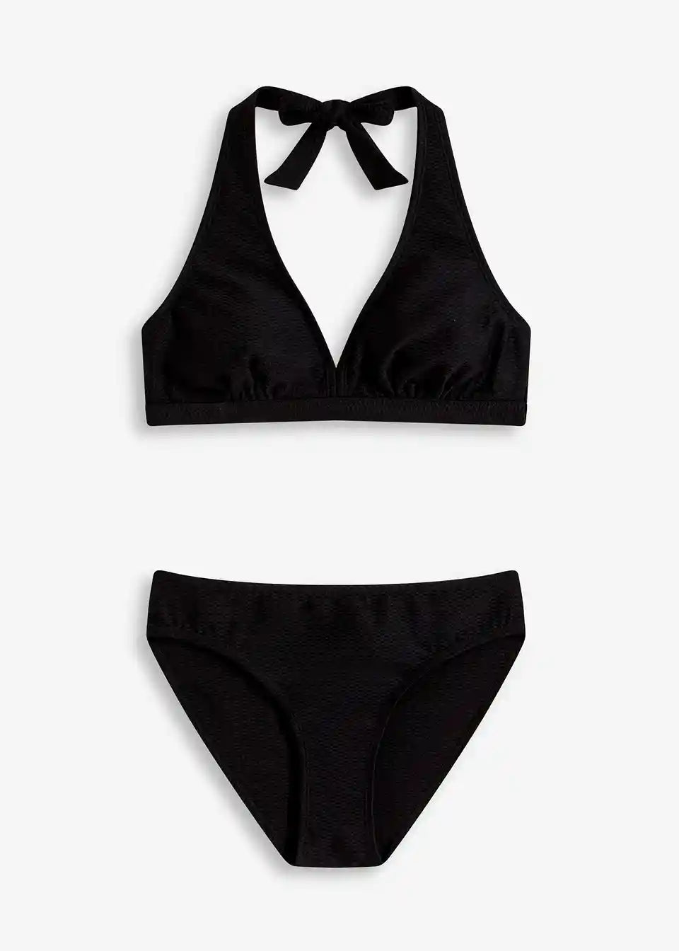 Dvodelne bikini kopalke z naramnicami na zatilju iz strukturiranega materiala