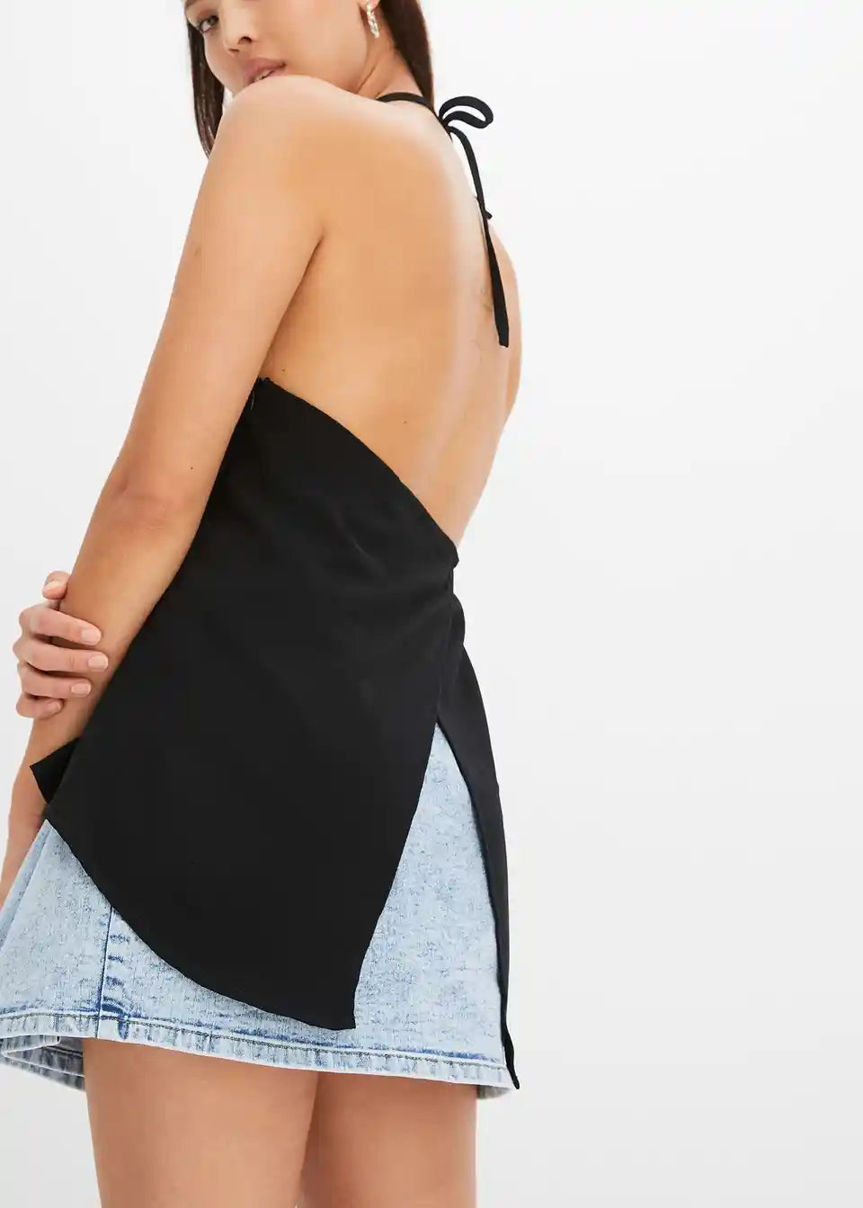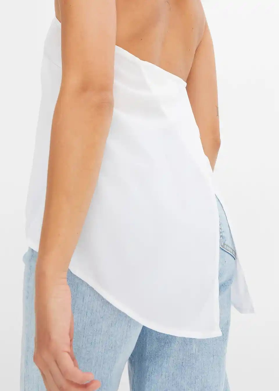 Trendovski bluzni top z asimetričnim robom v rahlo strukturirani kakovosti