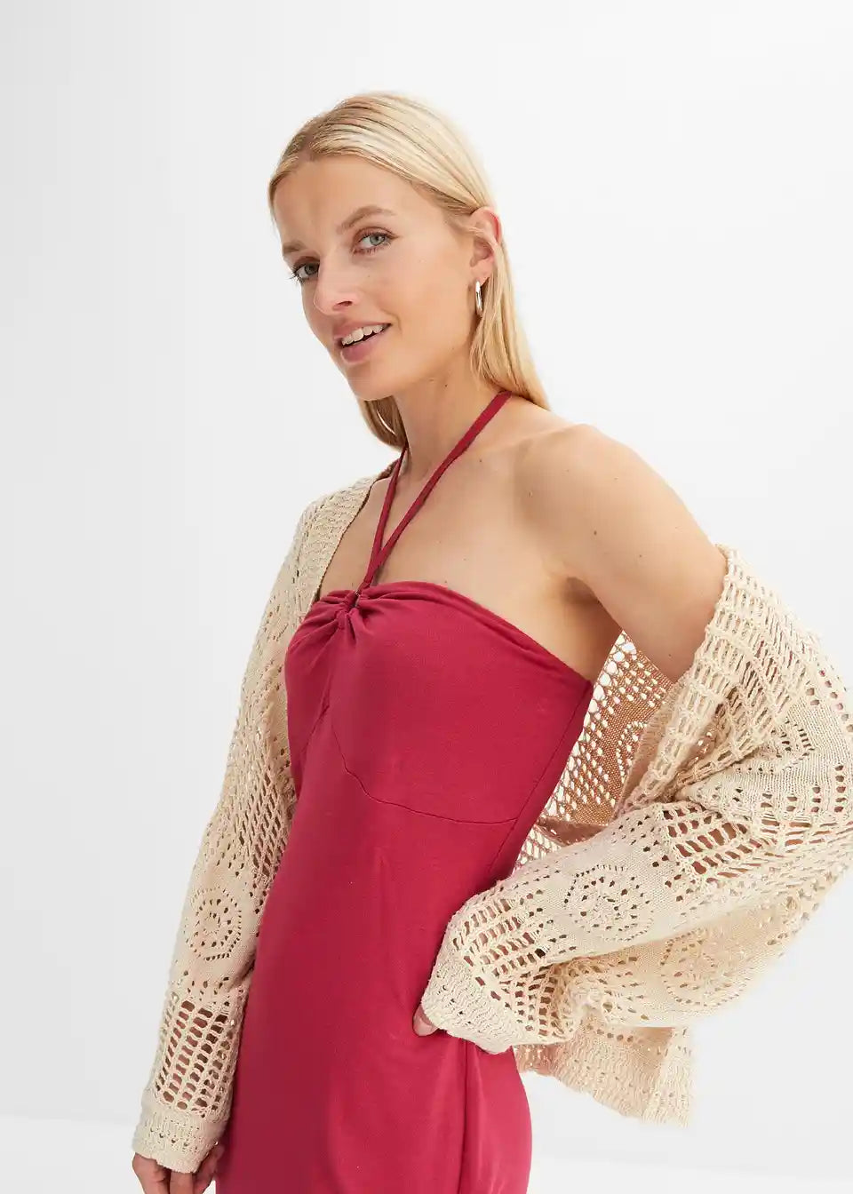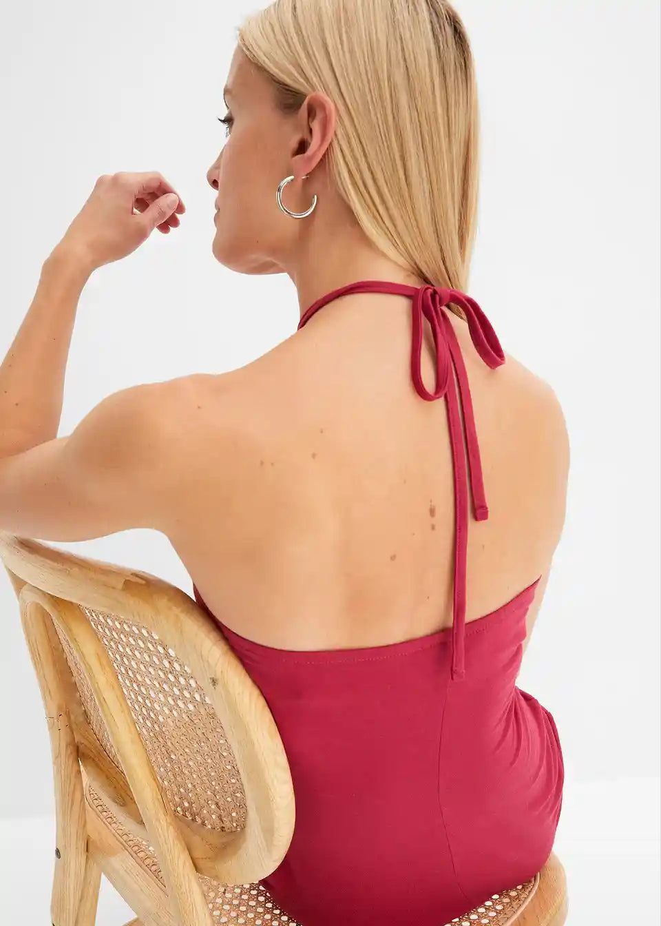 Obleka z naramnicami na zatilju iz jerseyja