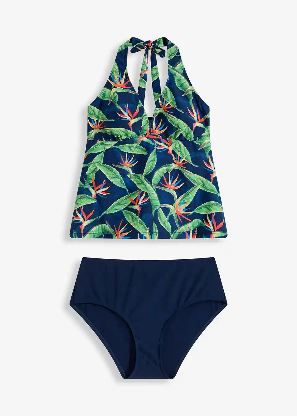 Dvodelne tankini kopalke z naramnicami na zatilju