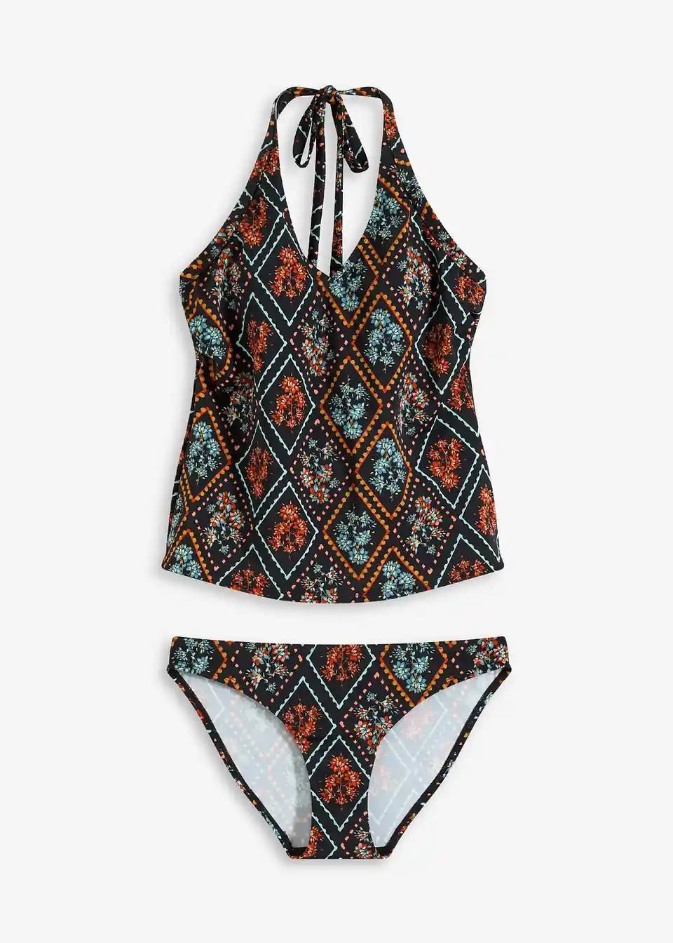 Dvodelne tankini kopalke z V-izrezom in naramnicami na zatilju