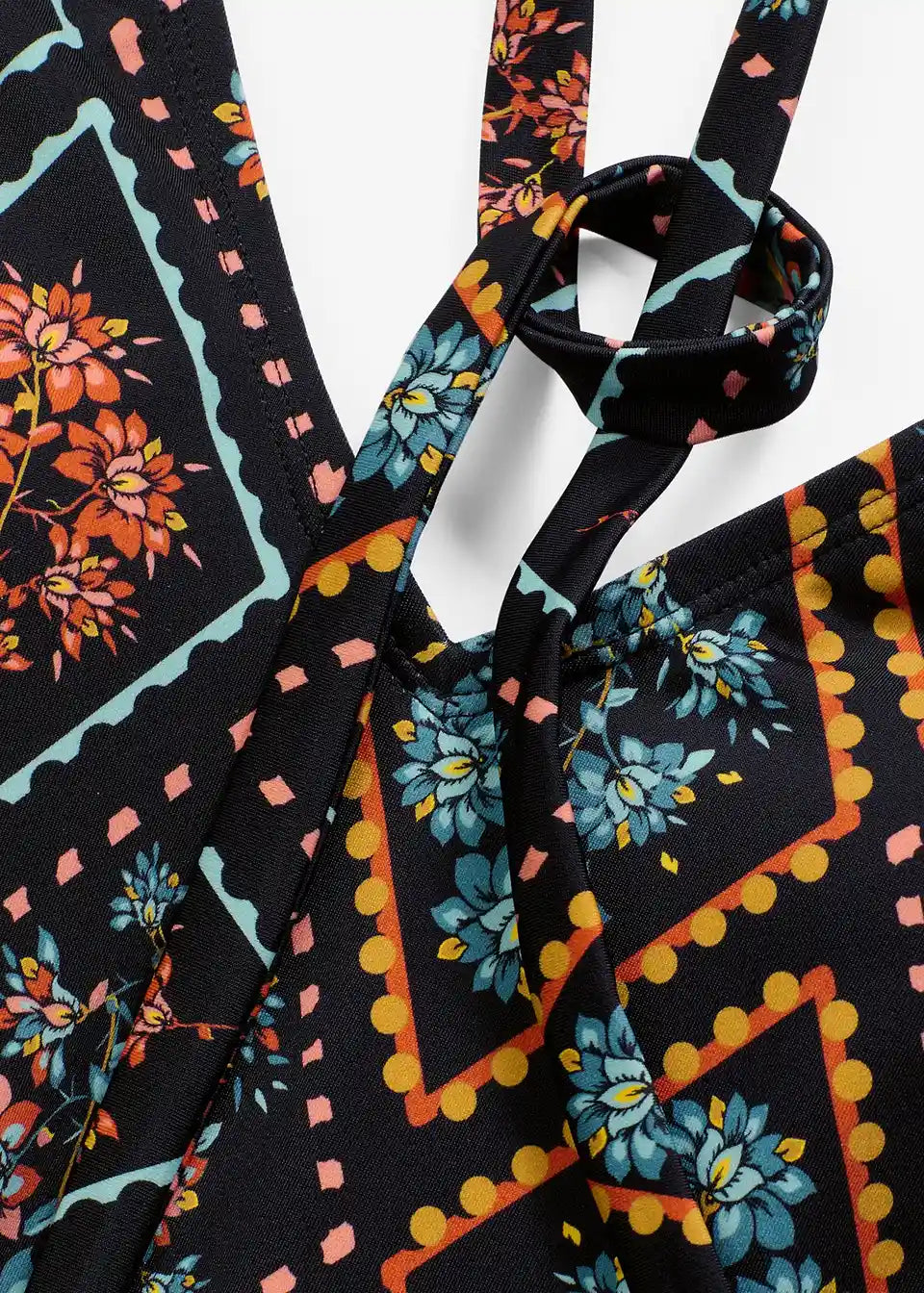 Detajli:s podlogo na prsih, podprsno elastiko, z zavezovanjem na tilniku