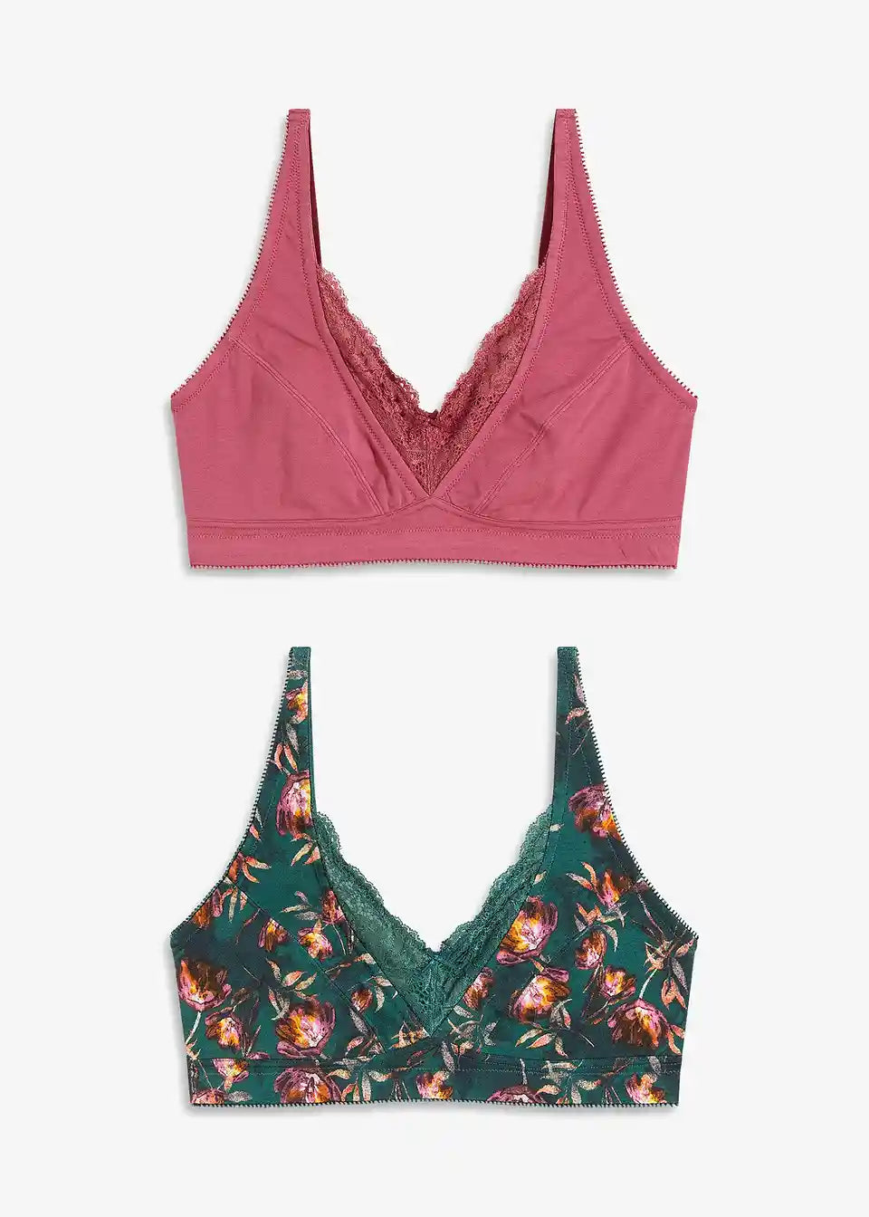 Nedrček brez kosti z mehkim organskega bombaža in sodobno čipko v praktičnem paketu 2 kosov