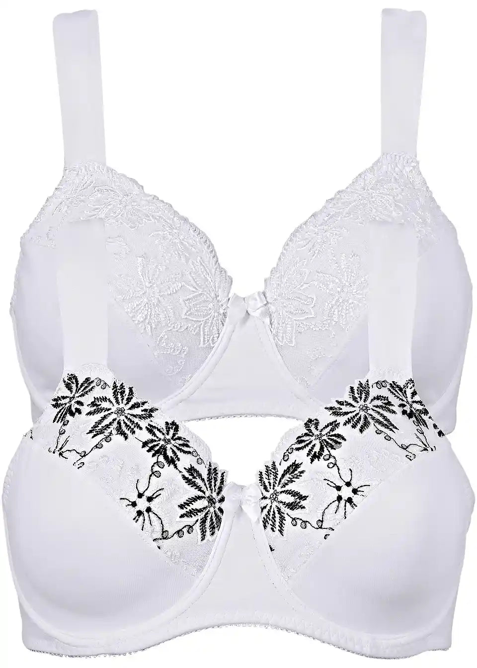 Z atraktivnim vezenjem na zgornjem delu košarice ta nedrček z oporo posebej očarljivo umešča dekolte. Mehko oblazinjene naramnice zagotavljajo prijetno razbremenitev.