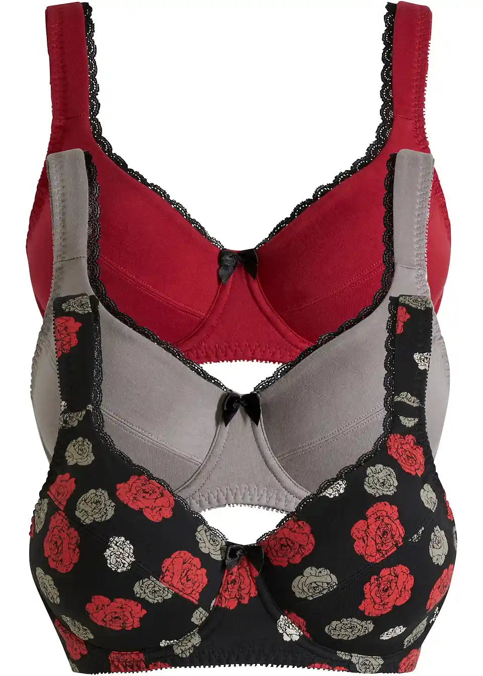 Nedrček z oporo iz mehkega organskega bombaža in širokimi, oblazinjenimi naramnicami v pakiranju 3 kosov