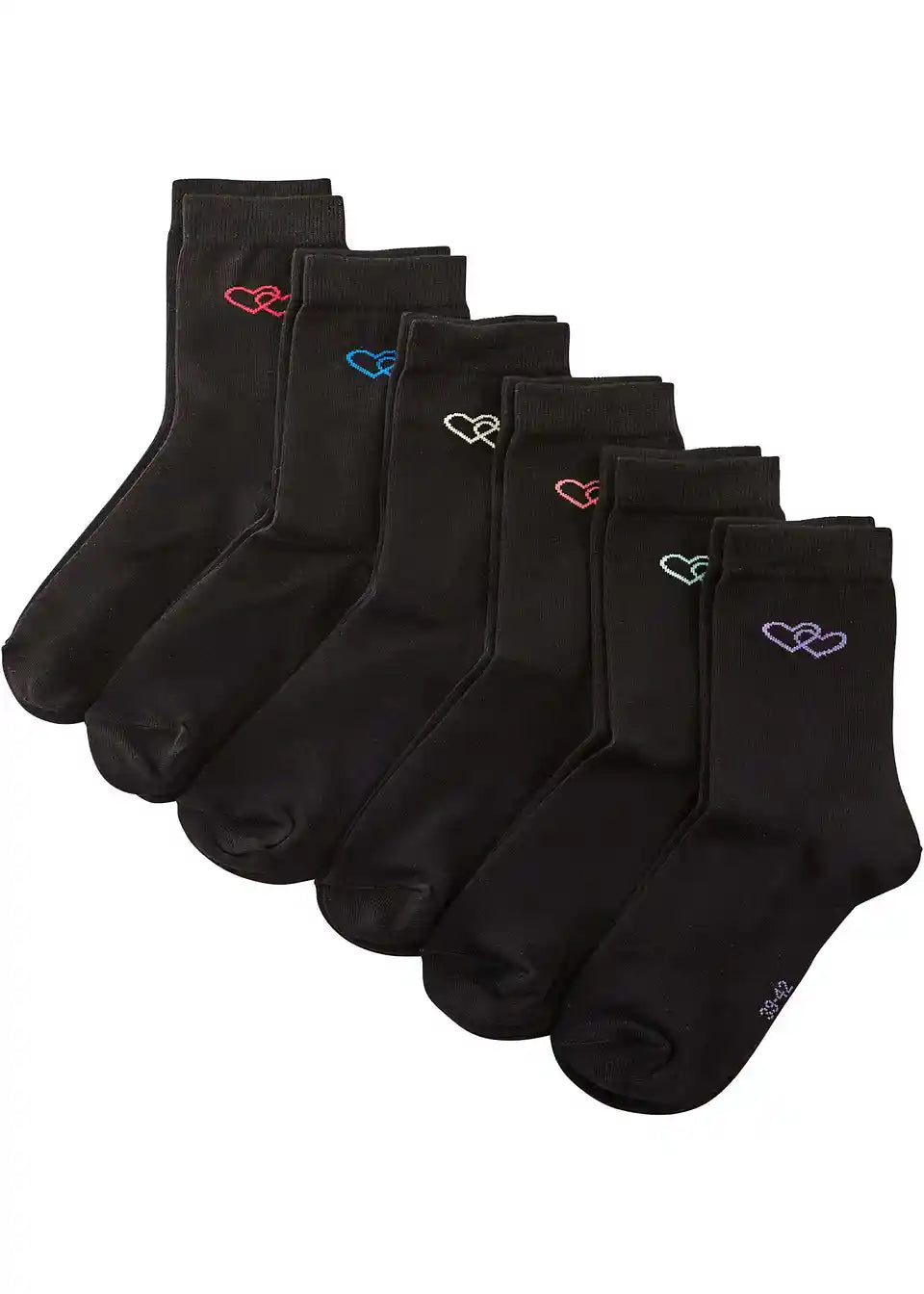 Nogavice z običajno višino zaključka pridejo v praktičnem 6-delnem paketu. Za udobno prileganje poskrbijo mehka kakovost bombaža in prijeten rebrast rob.