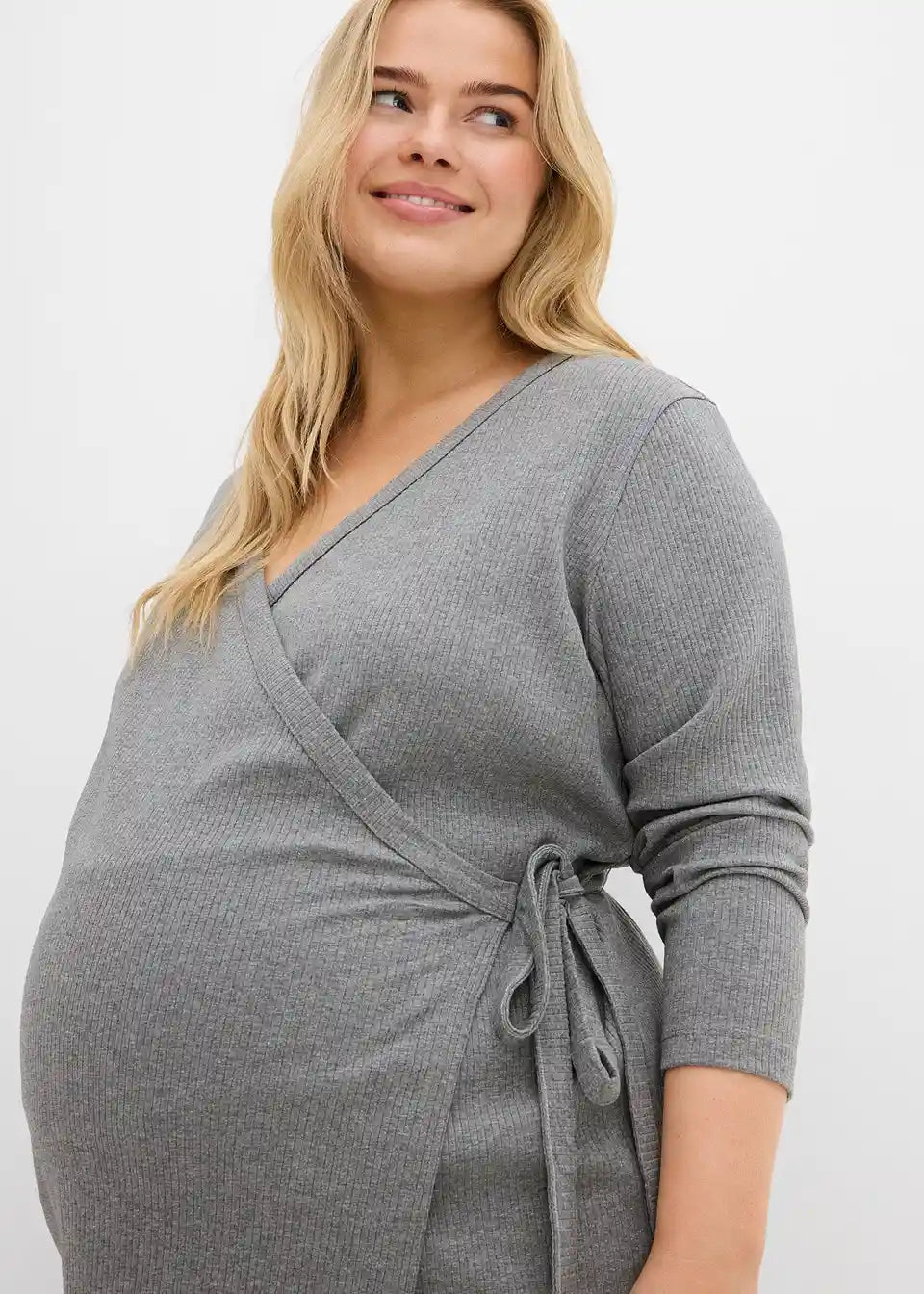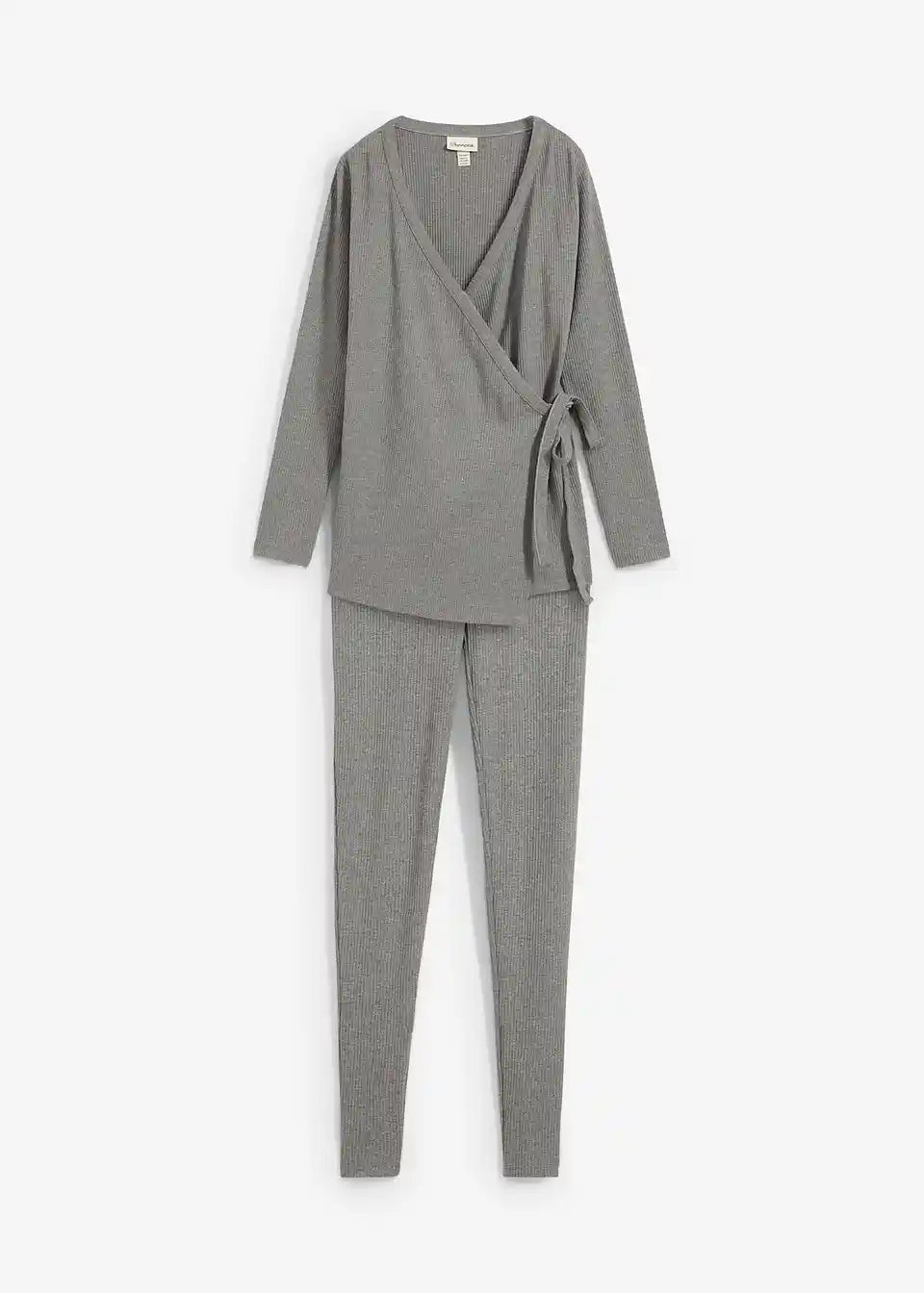 Udoben komplet iz dolgih rokavov s preklopnim zgornjim delom in postavi prijaznimi hlačami iz mehkega jerseya zagotavlja udobje in prilagodljivost v vsakdanjem življenju. Top s preklopnim krojem se lahko prilagodi obsegu trebuha in omogoča enostavno dojenje po nosečnosti.