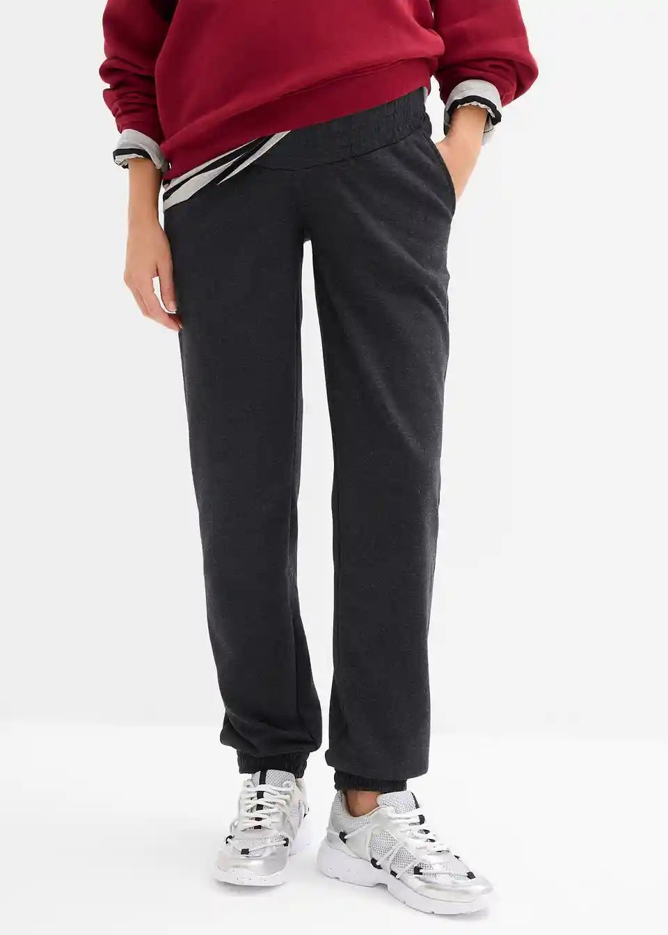 Udobne jogger hlače iz bombažne mešanice s poševnimi stranskimi žepi. Širok, prišit pas iz jerseya iz bombaža z malo elastana zagotavlja optimalno prileganje na trebuhu. Skrite vrvice na notranji strani elastičnega pasu služijo dodatnemu prilagajanju širine. Idealne za prosti čas in šport.