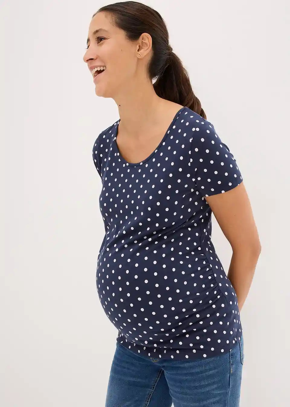 Nosečniška majica v kompletu dvojnega pakiranja je izdelana iz mehkega organskega bombaža in omogoča veliko prostora za nosečniški trebuh. Zahvaljujoč rahlim gubam ob straneh je udobna nosečniška majica primerna za nošenje vse do konca nosečnosti, saj se prilagaja trebuhu.