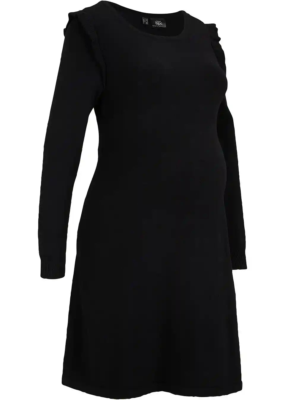 Modna pletena obleka iz mehke pletenine z visokim deležem bombaža. Obleka ima dolge rokave z gubami na ramenih ter mehke rebraste manšete na izrezu, rokavih in robu.