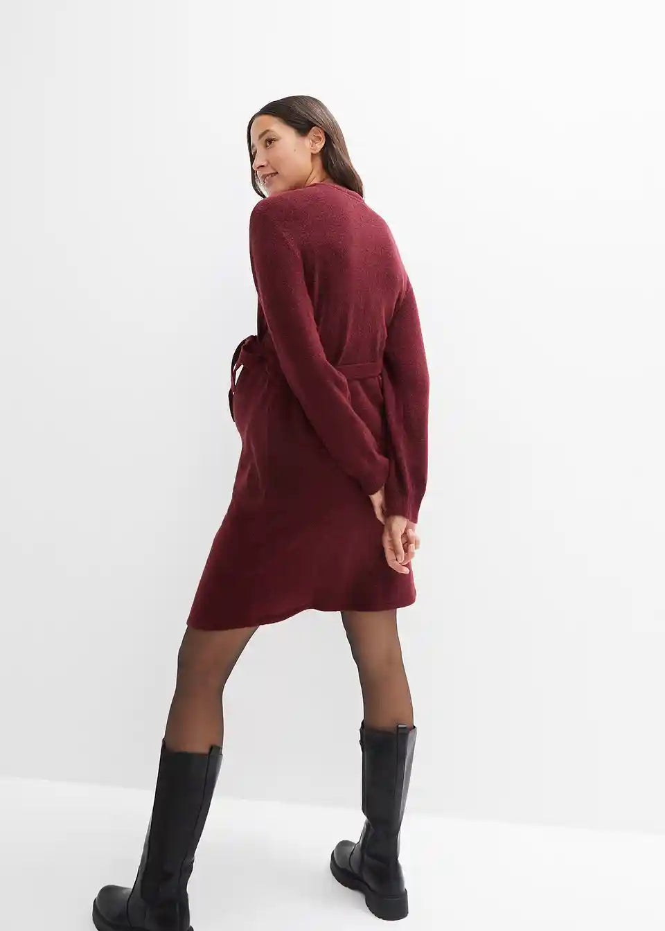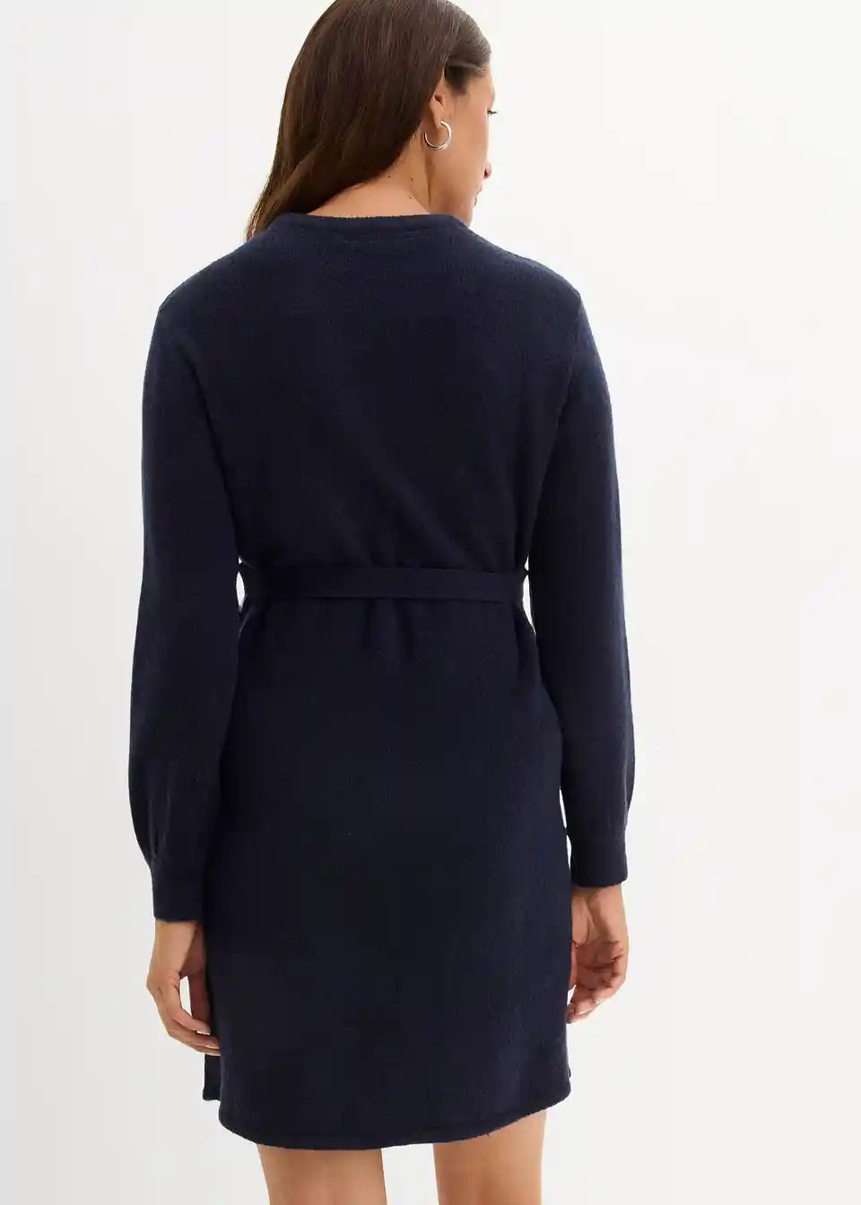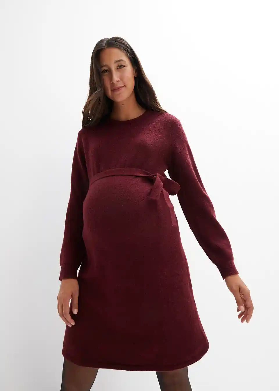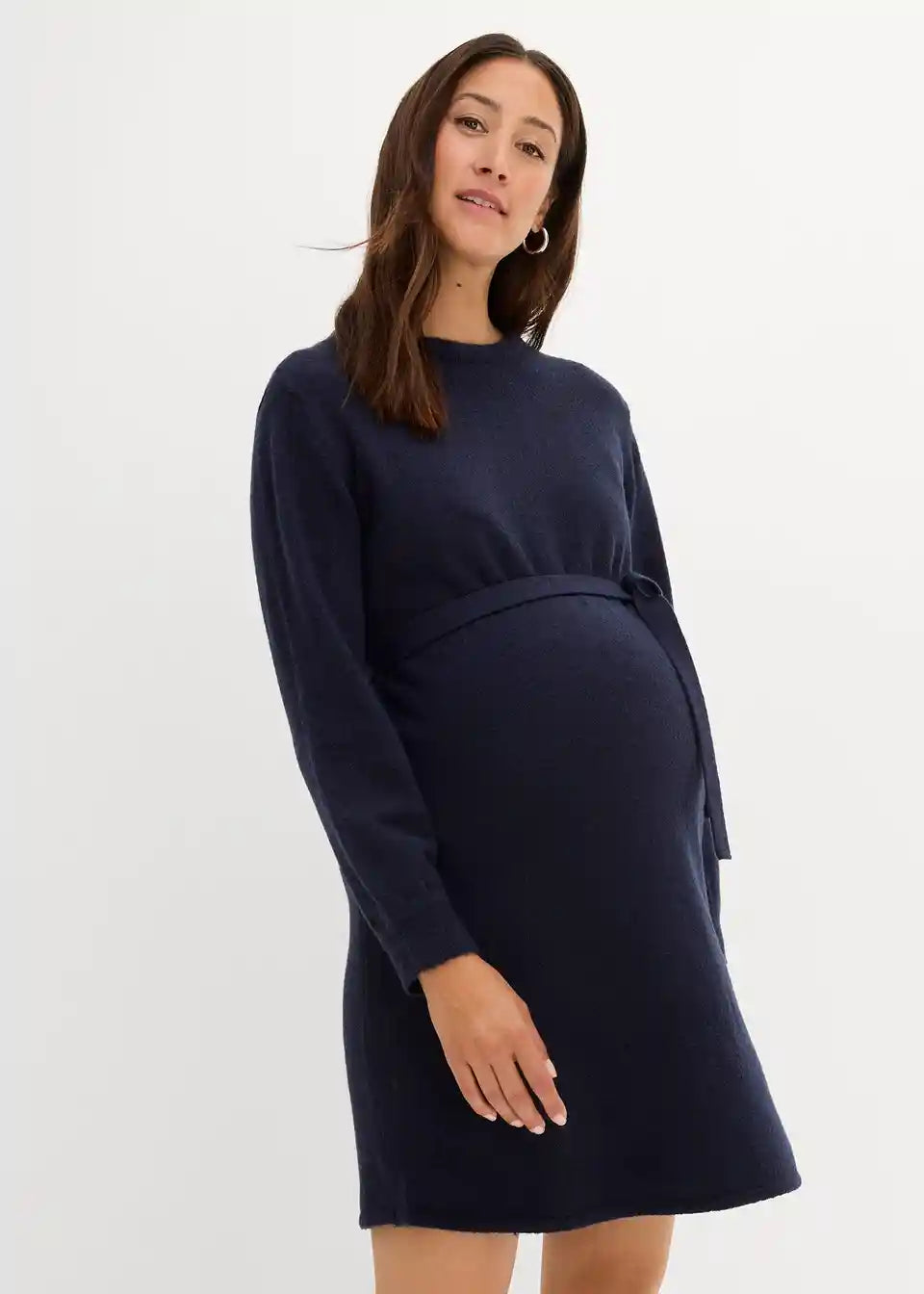 Mehka nosečniška pletena obleka s trakom za zavezovanje