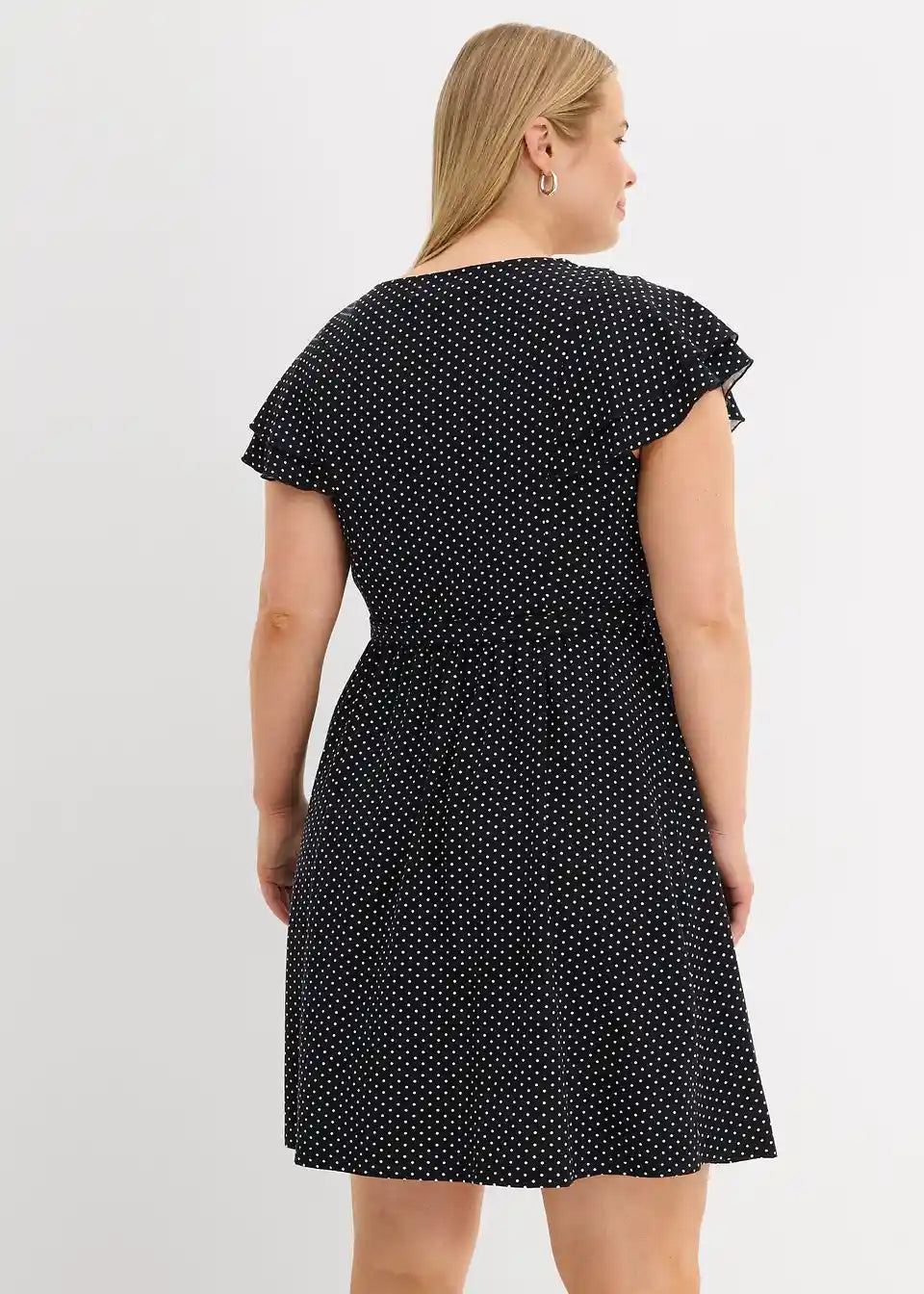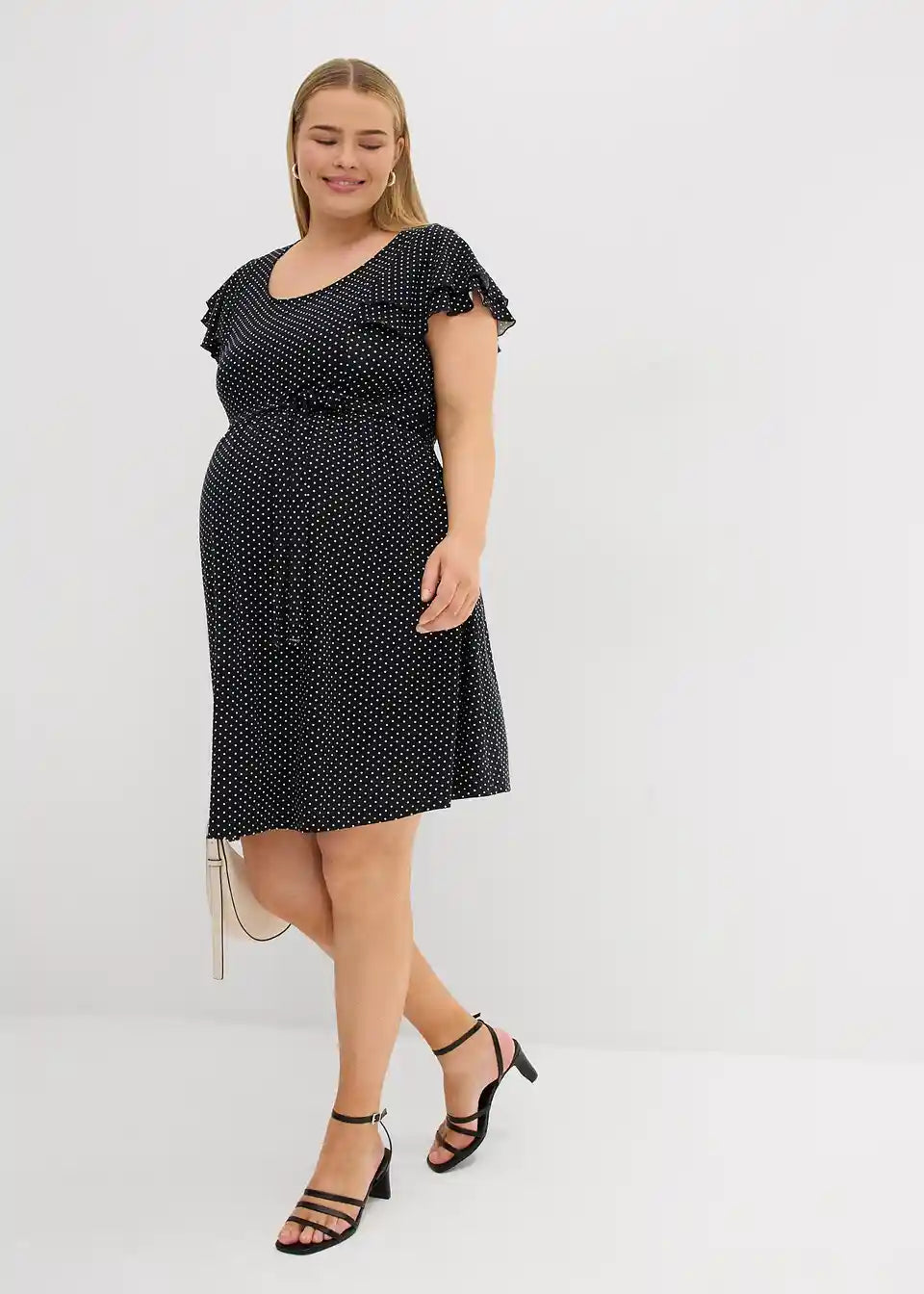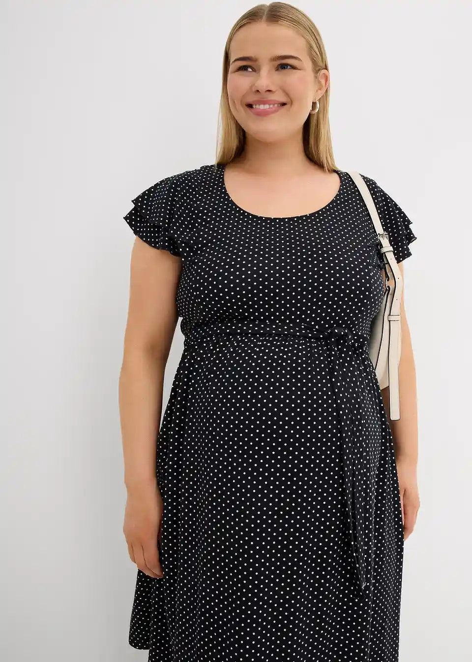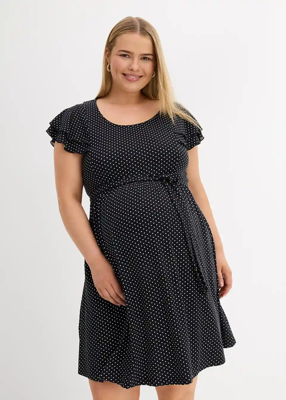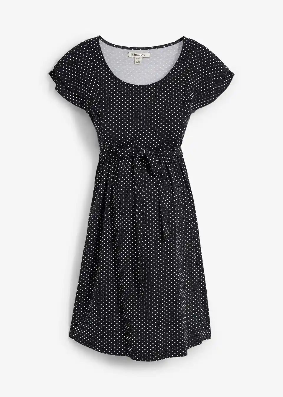 Pikčasta obleka z zavezovalnim trakom za nosečnost