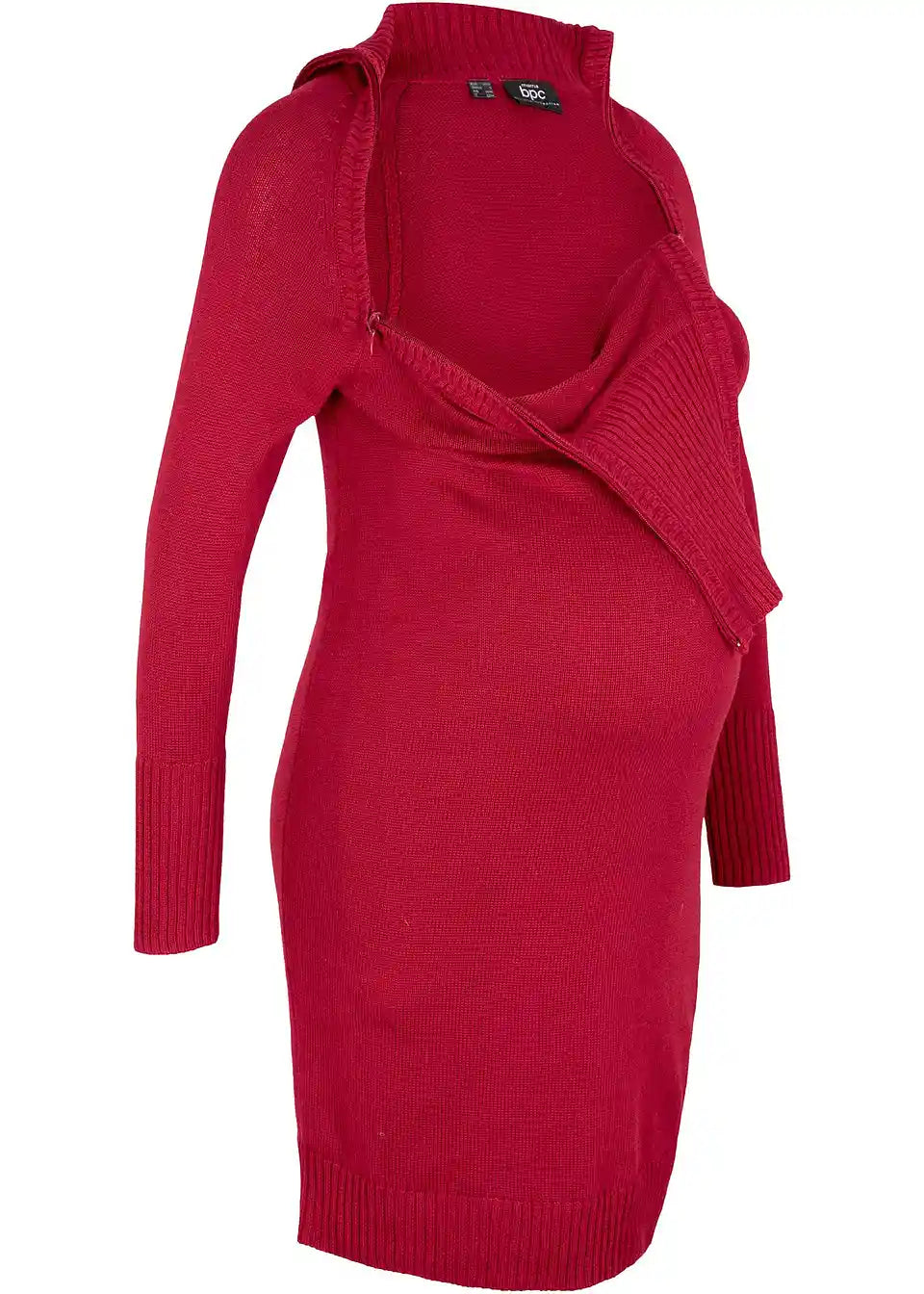 Pletena obleka z zadrgo za nosečnost in dojenje