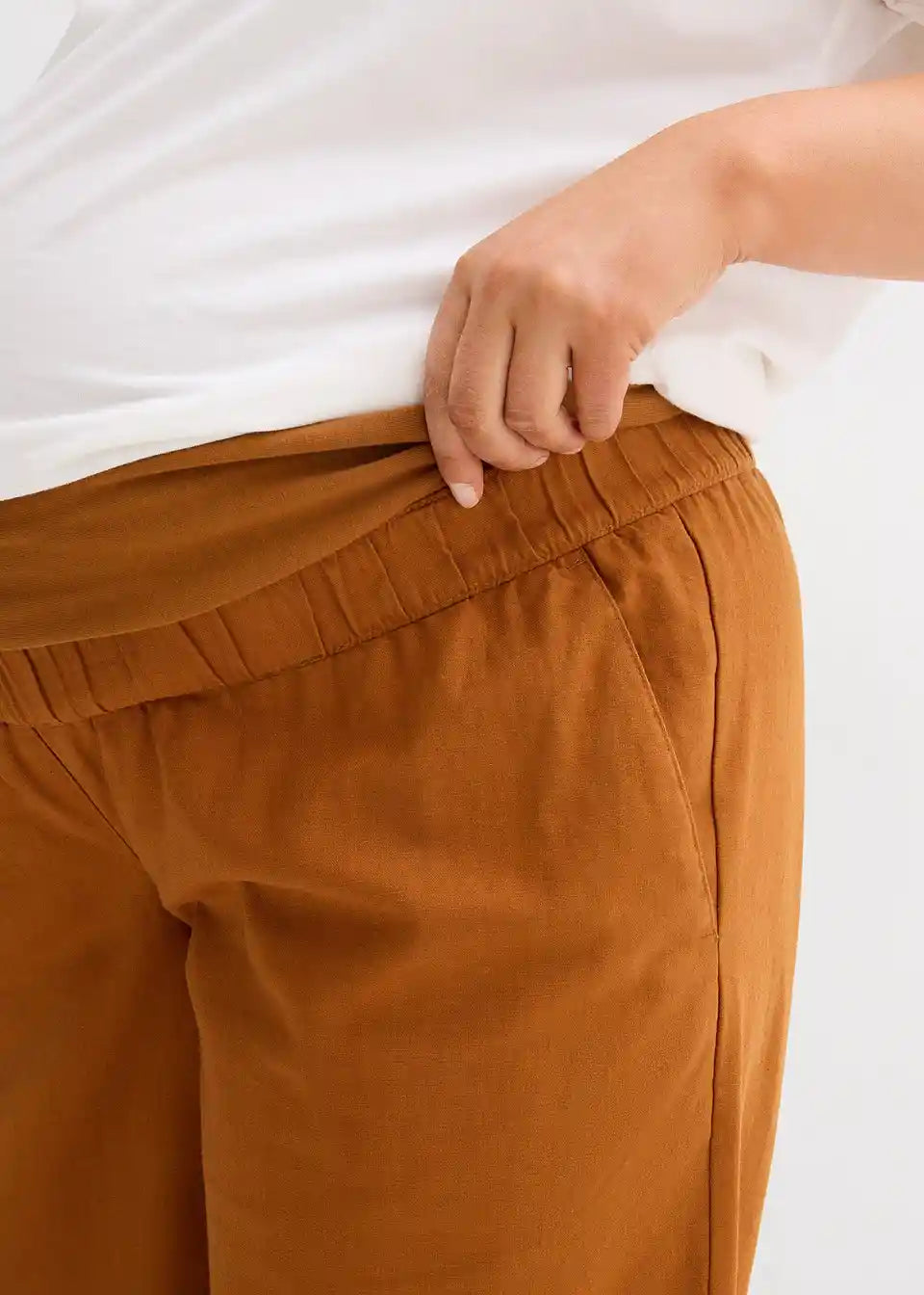 Nosečniške hlače s pasom za trebuh iz lanu in bombaža
