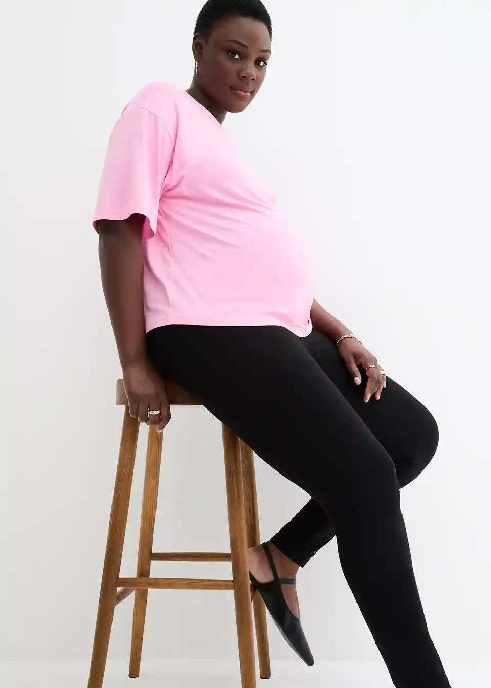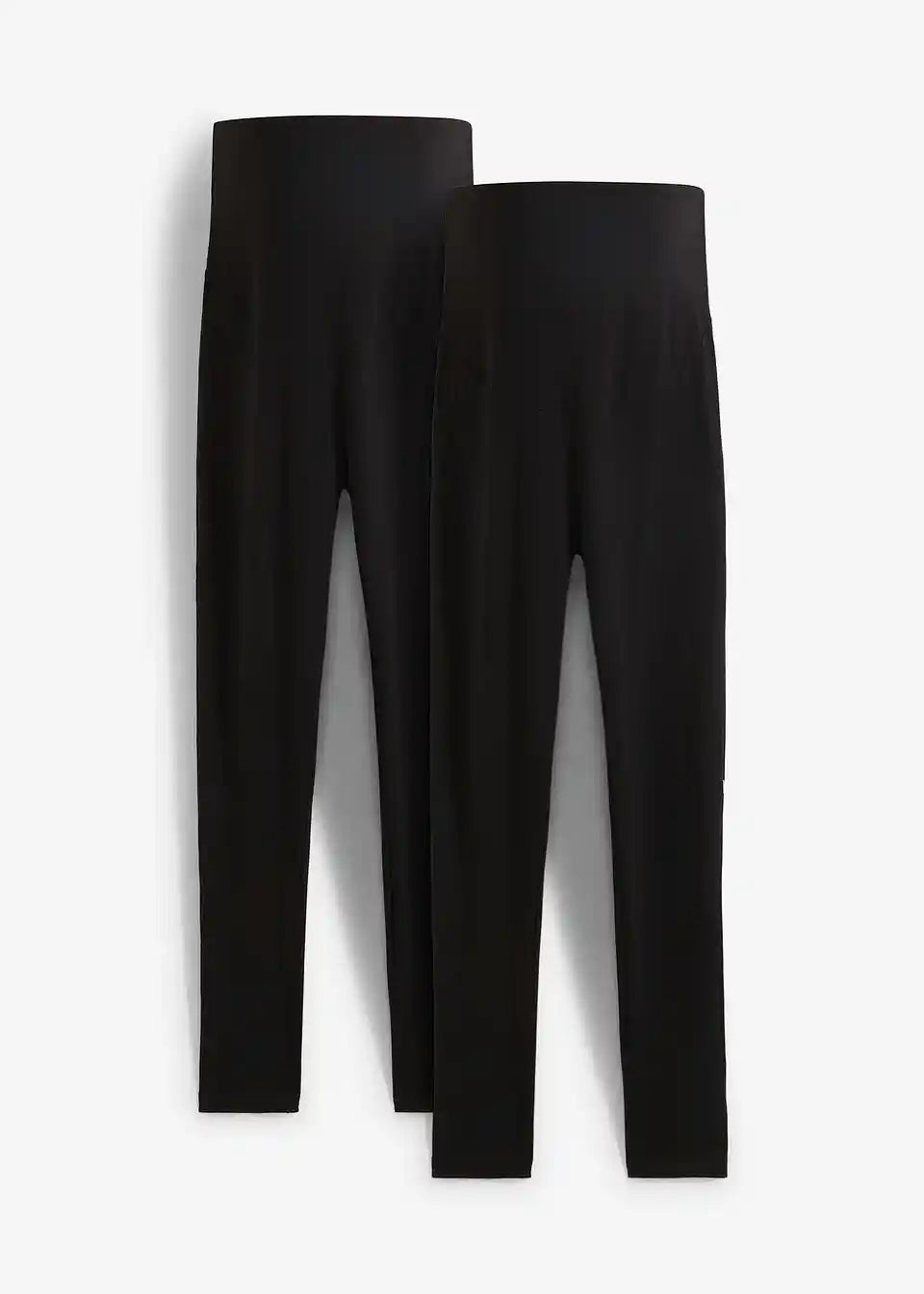 Nosečniške legice iz organskega bombaža z elastanom v praktičnem dvojnem paketu. Širok, prišit jersey pas zagotavlja optimalno prileganje na predelu trebuha.
